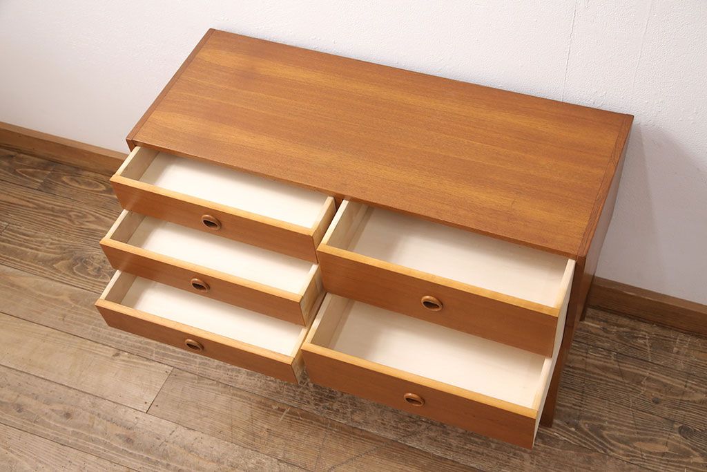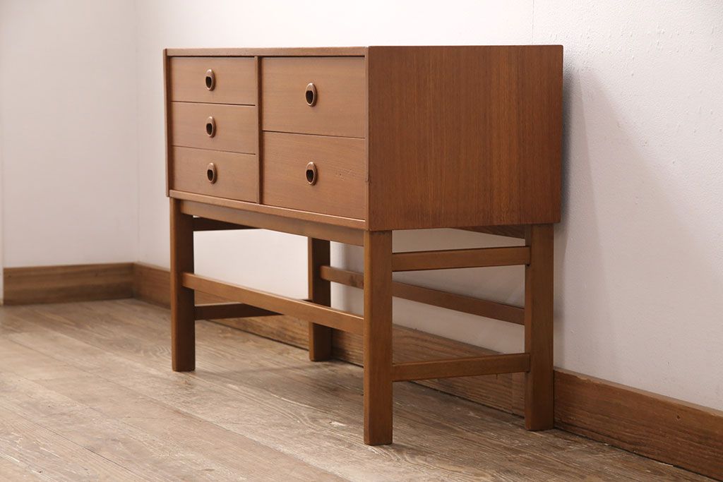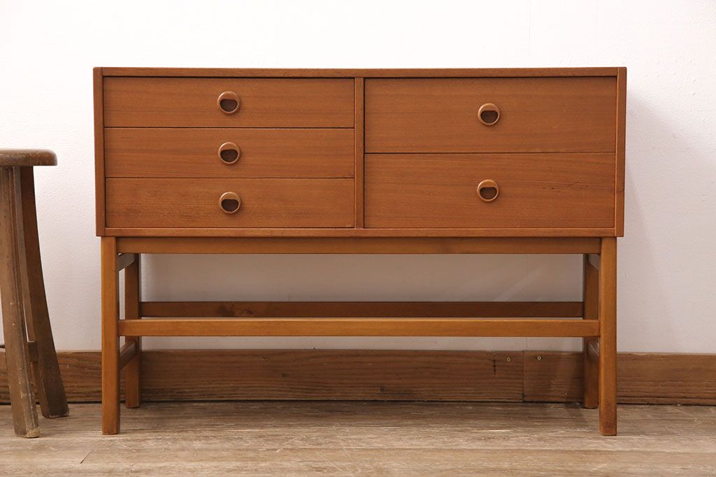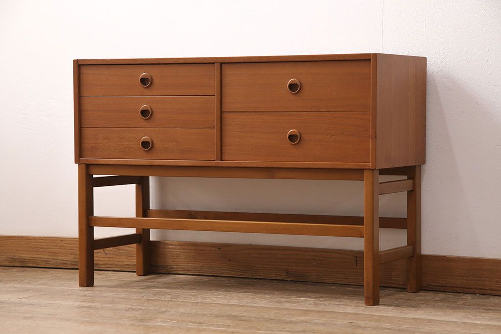 北欧ヴィンテージ デンマーク家具 チーク材 空間に取り入れやすい小ぶりなサイズのサイドチェスト(サイドボード、引き出し)(R-050962)