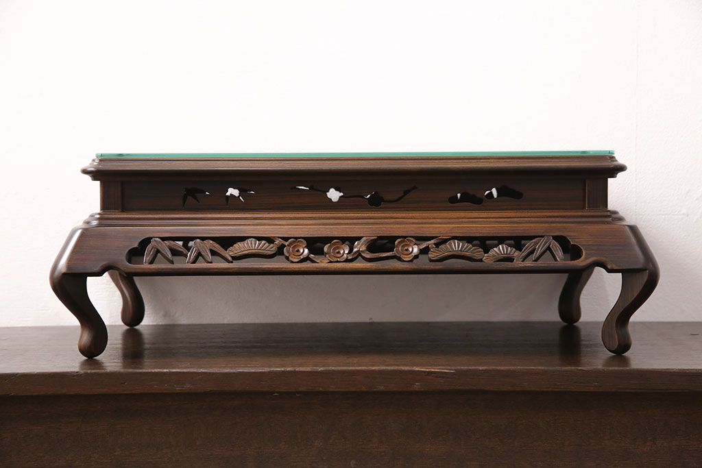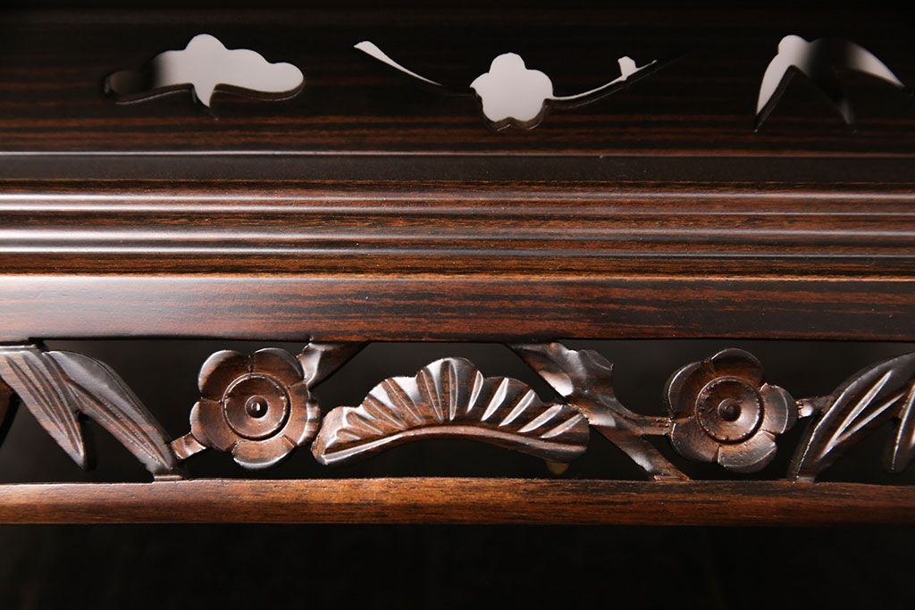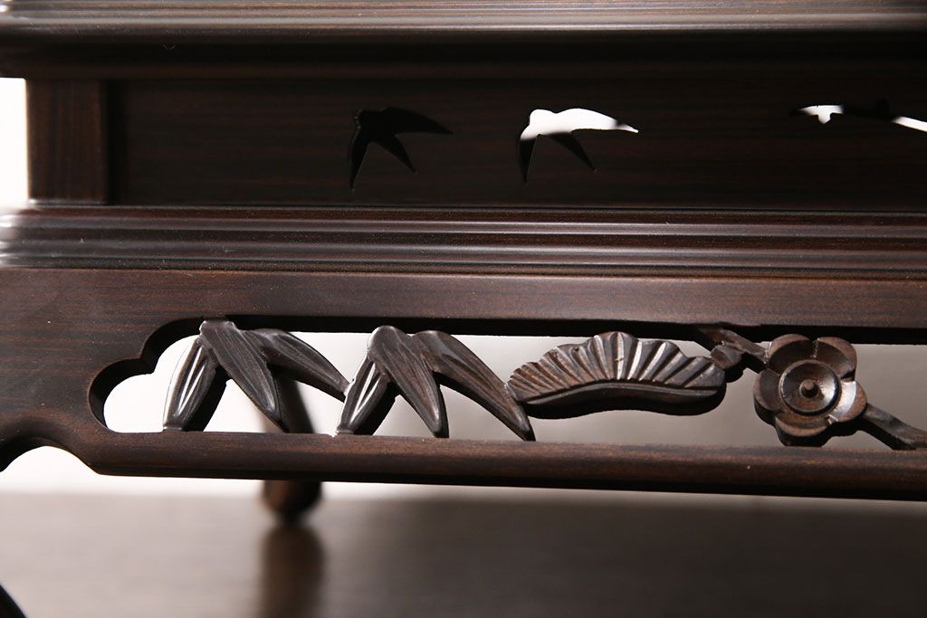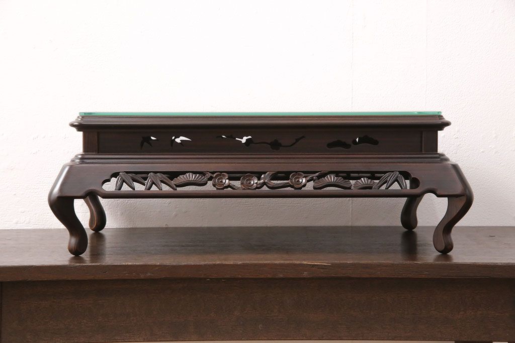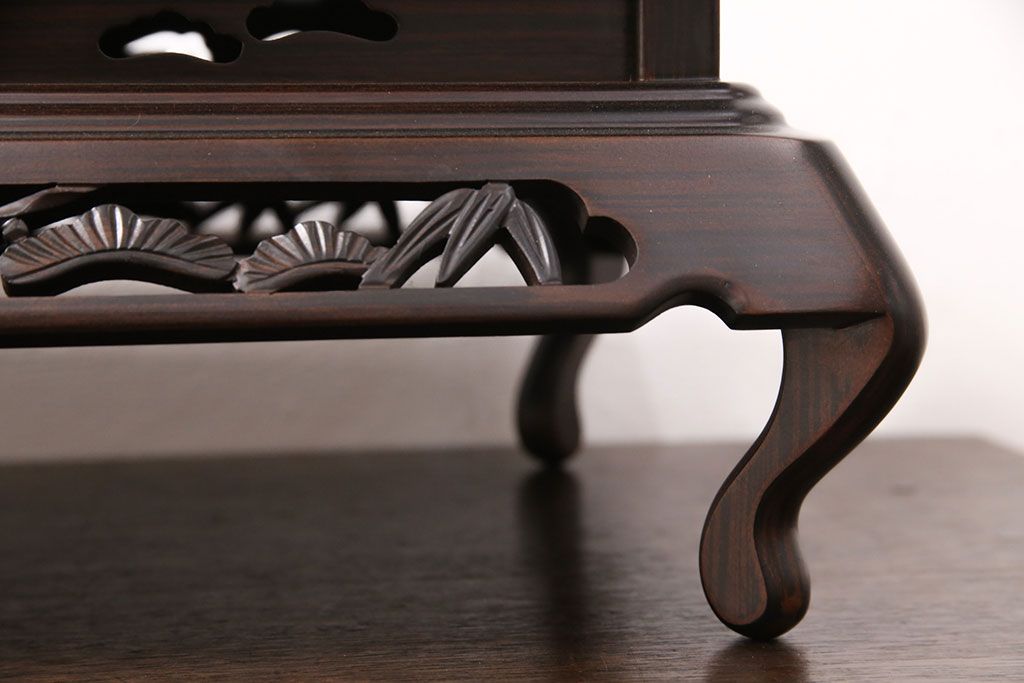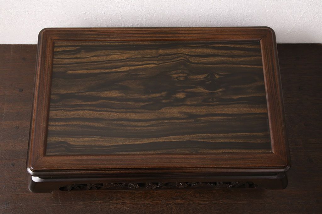 民芸家具 > 中古 美品 唐木 黒檀材 松や梅の彫刻と美しい杢目が上品さを漂わせる花台(飾り台、ディスプレイ台)(R-050958)