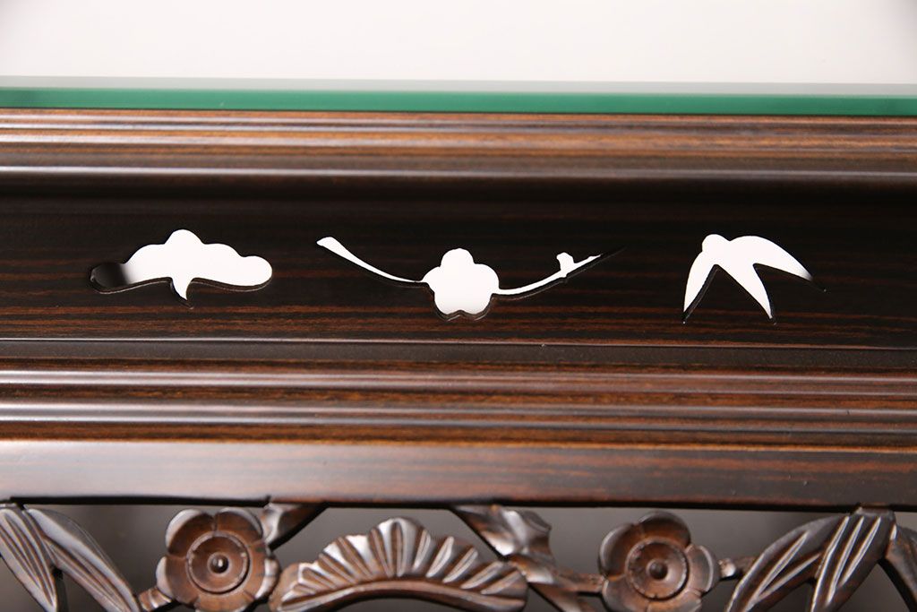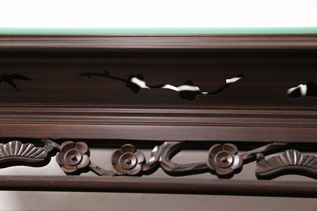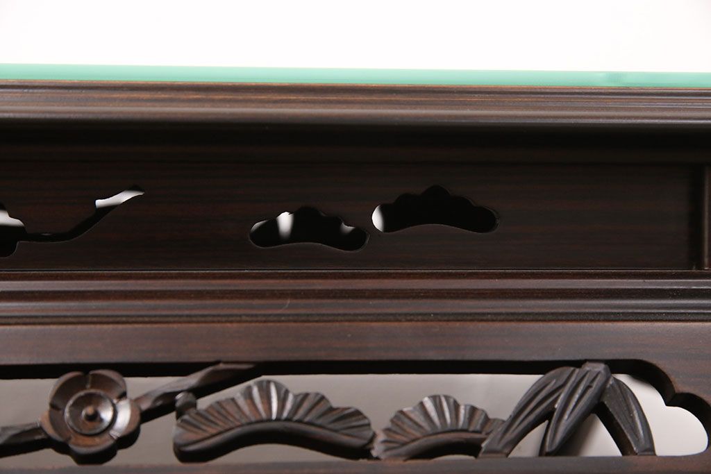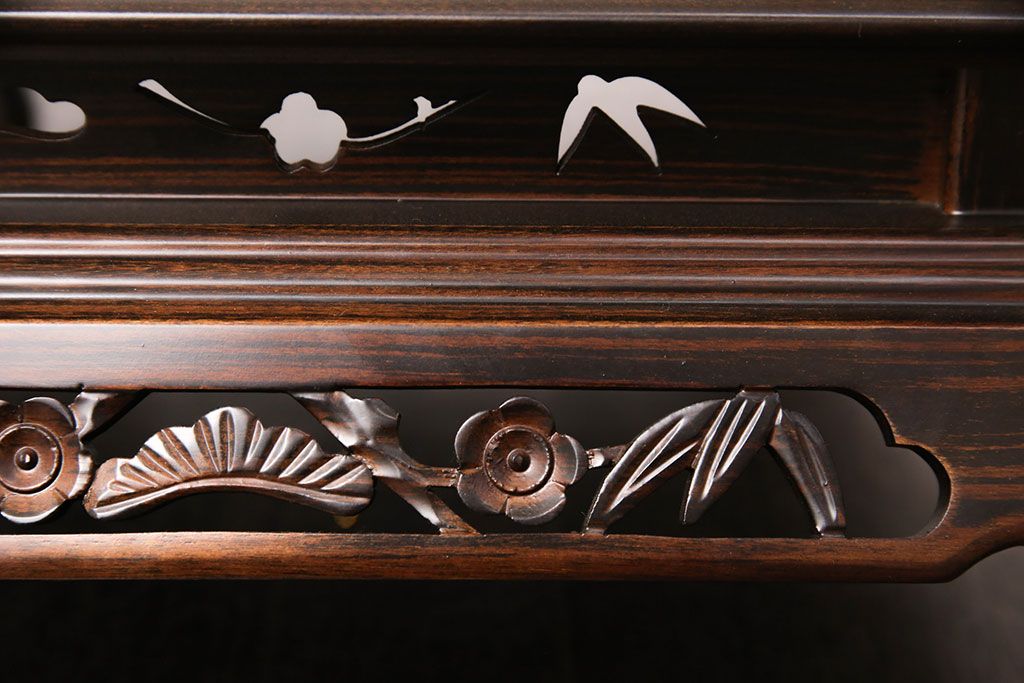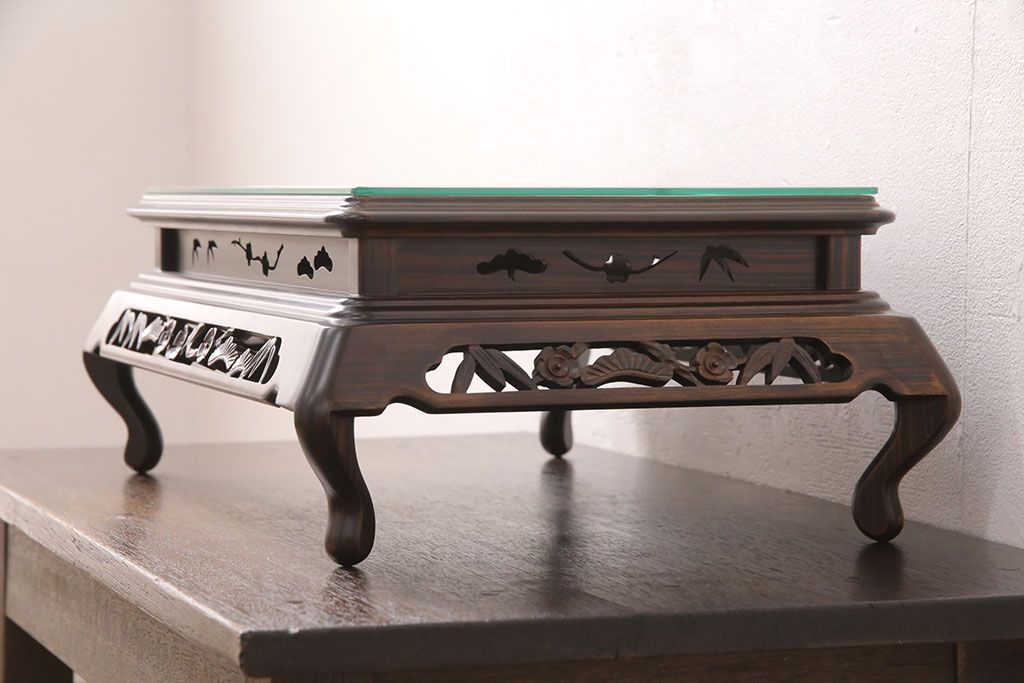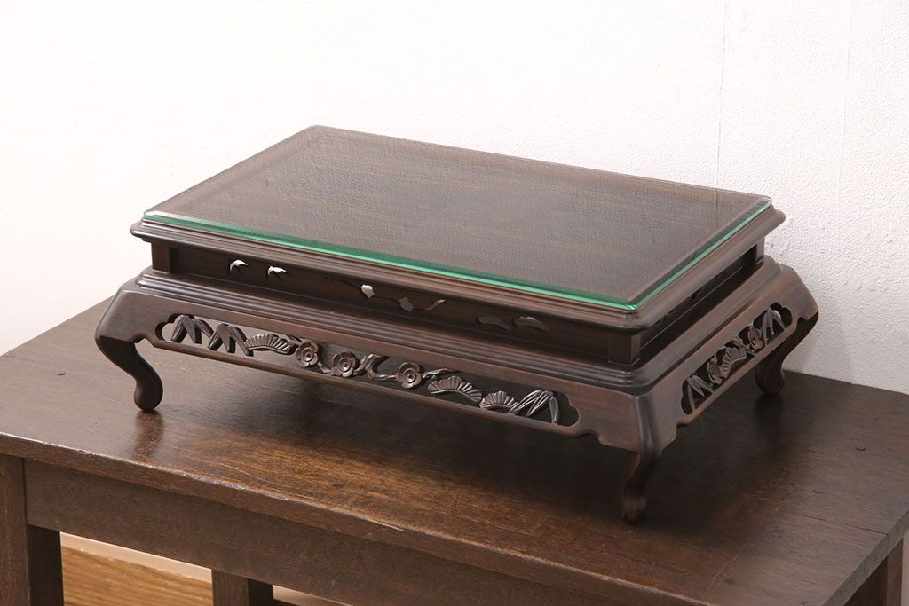 民芸家具 > 中古 美品 唐木 黒檀材 松や梅の彫刻と美しい杢目が上品さを漂わせる花台(飾り台、ディスプレイ台)(R-050958)