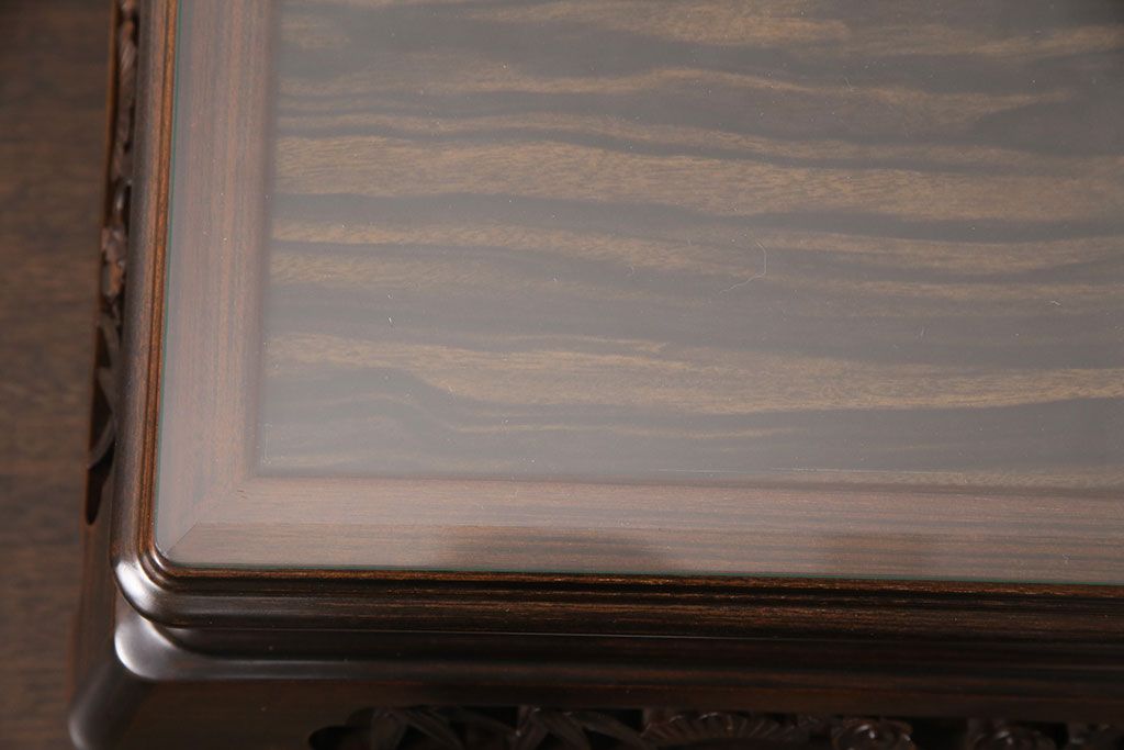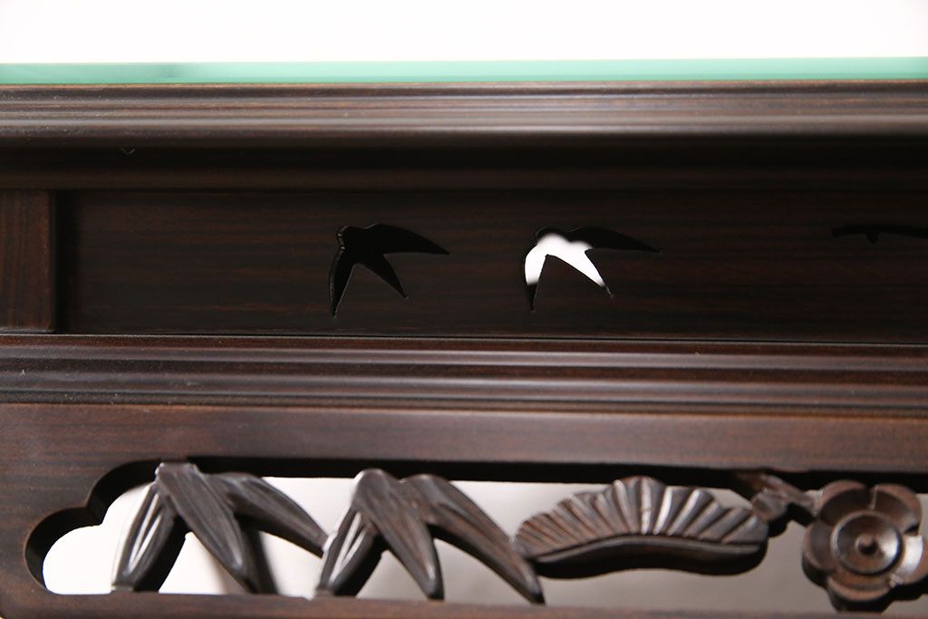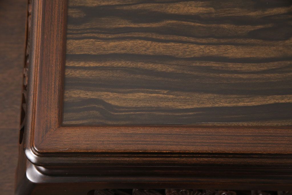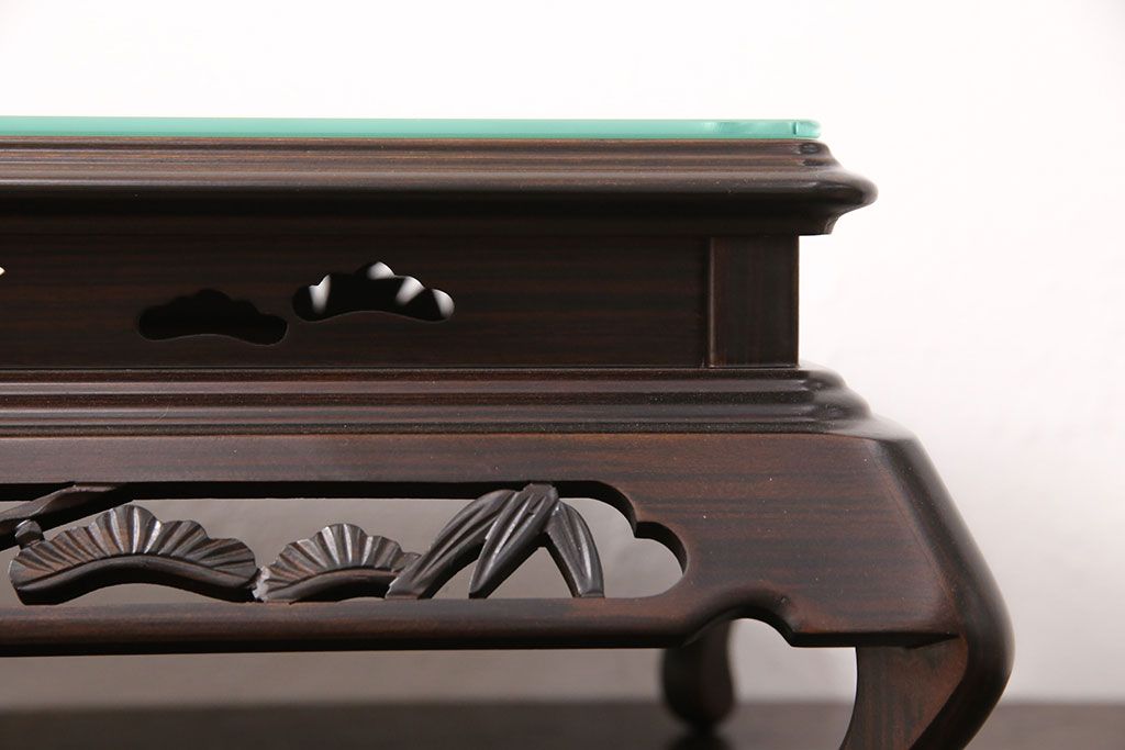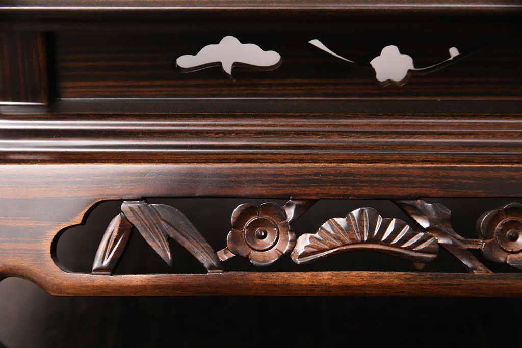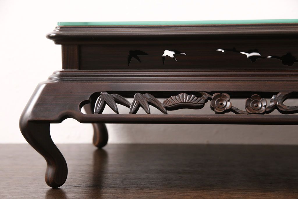 民芸家具 > 中古 美品 唐木 黒檀材 松や梅の彫刻と美しい杢目が上品さを漂わせる花台(飾り台、ディスプレイ台)(R-050958)