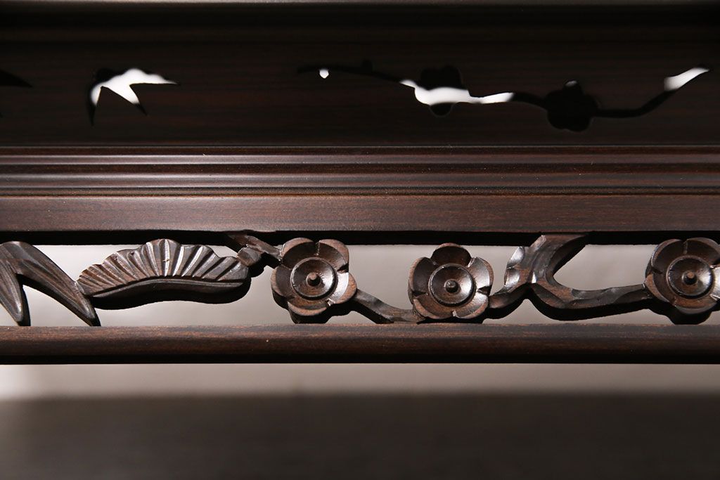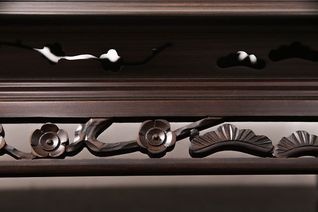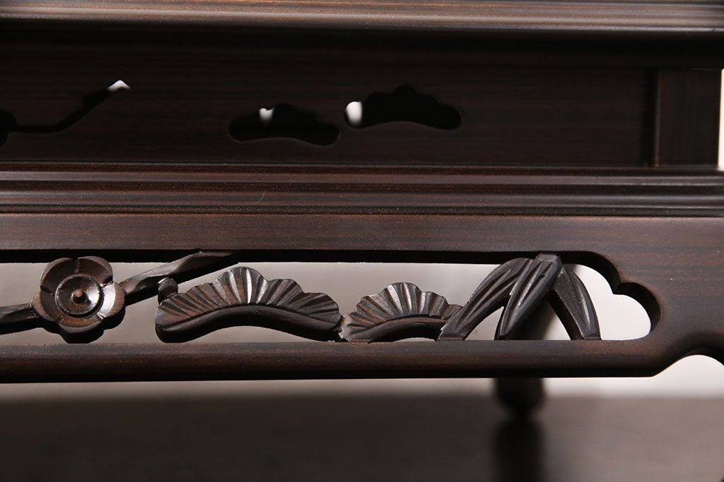 花台・飾り台 > 中古 美品 唐木 黒檀材 松や梅の彫刻と美しい杢目が上品さを漂わせる花台(飾り台、ディスプレイ台)(R-050958)