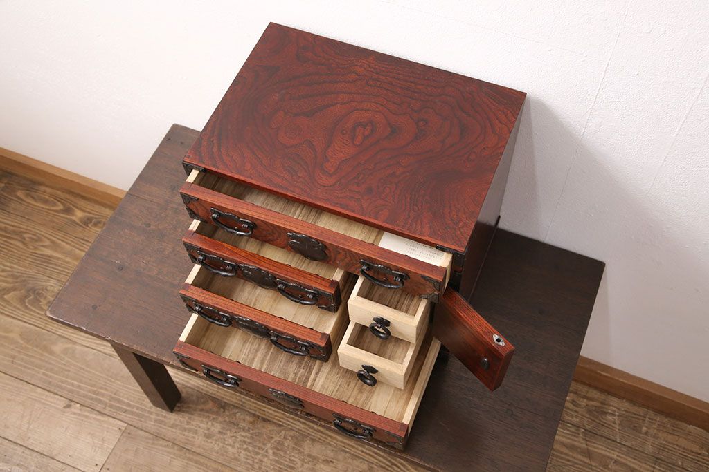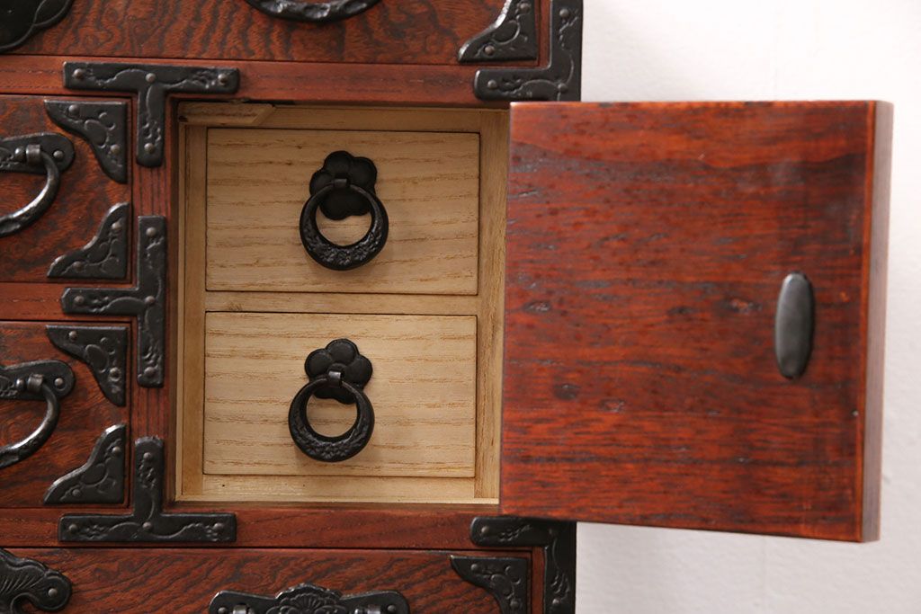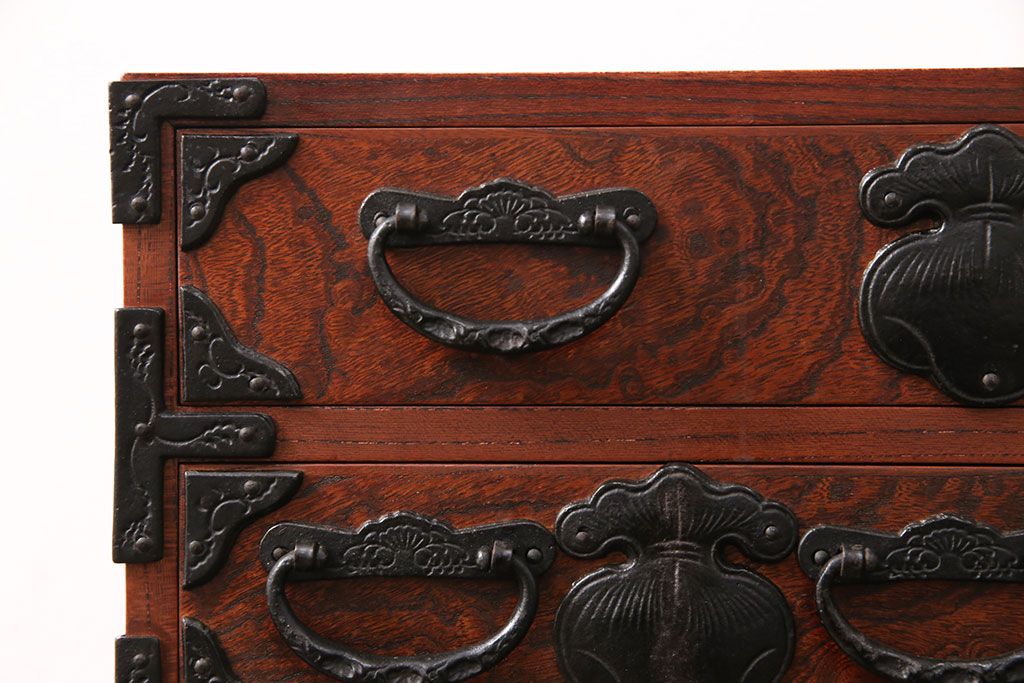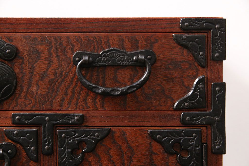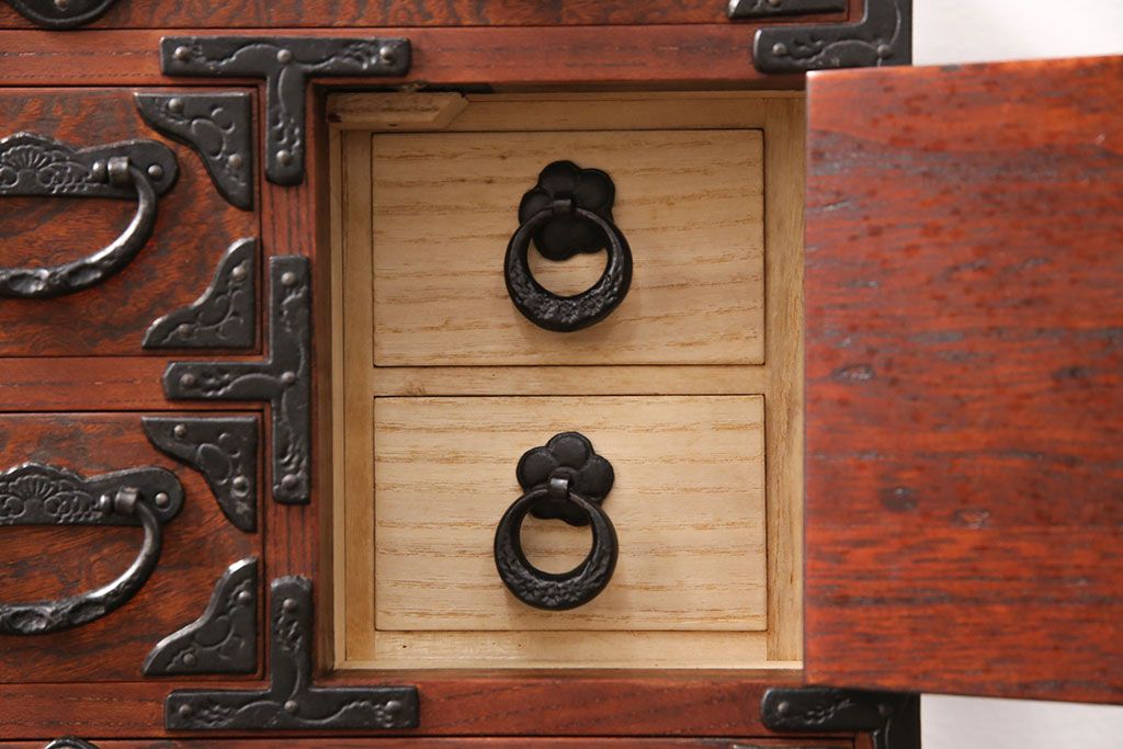 和箪笥 > 中古 岩谷堂箪笥 巾着モチーフの金具が目を引く小引き出し(小箪笥、卓上収納、小抽斗)(R-050974)