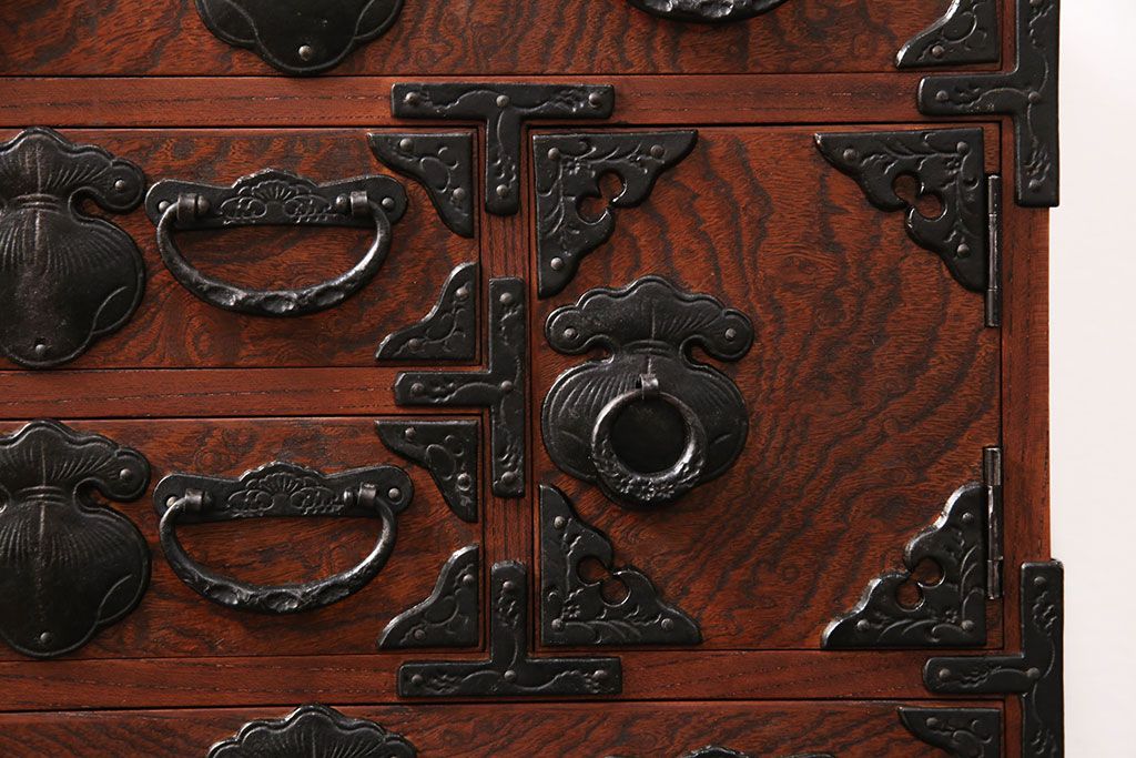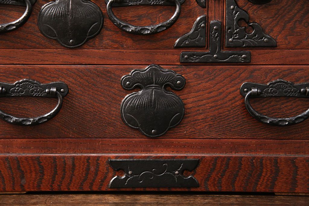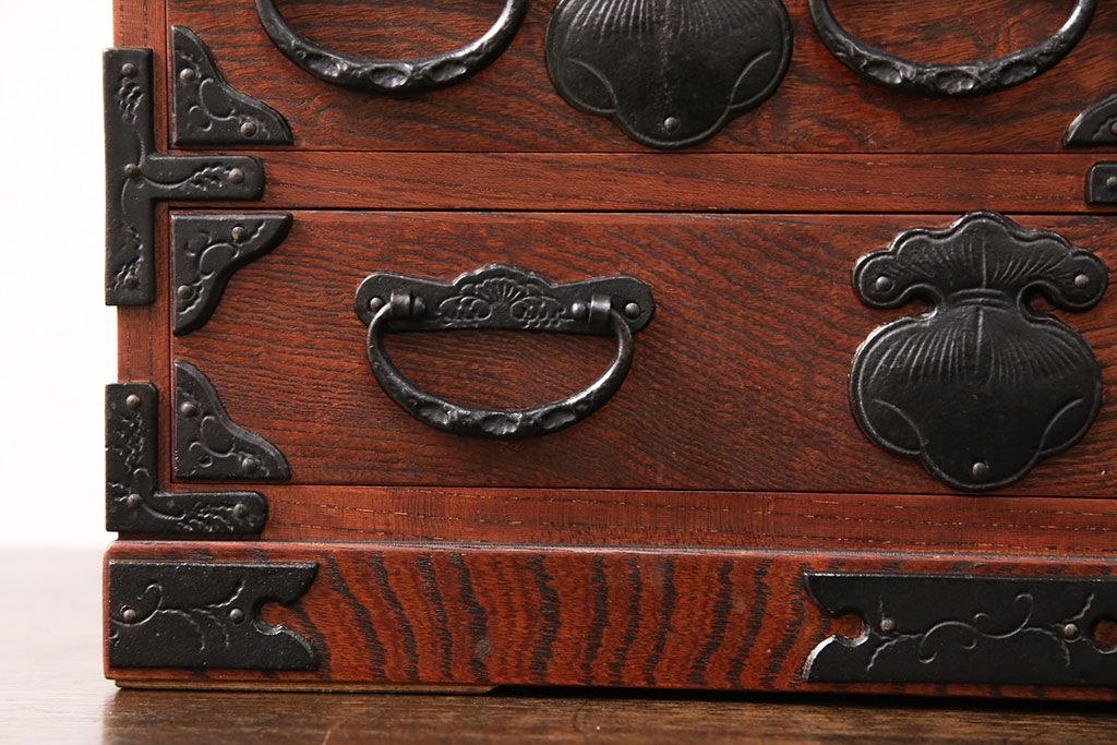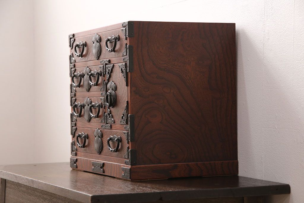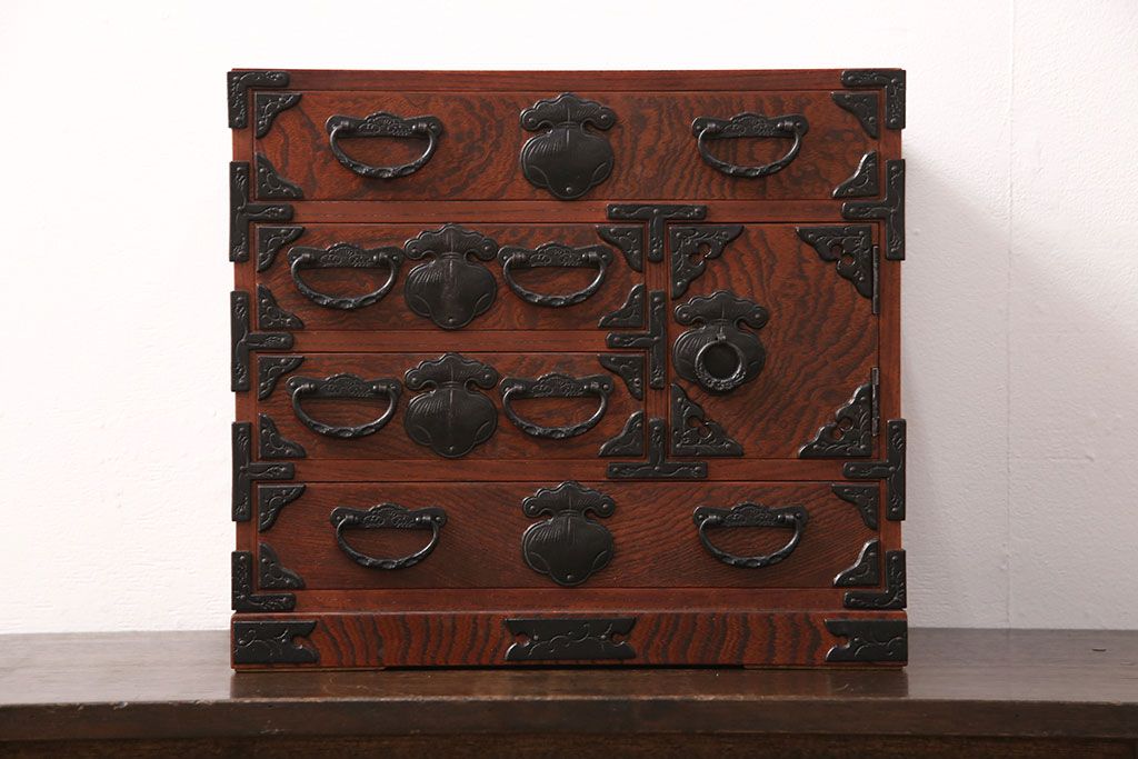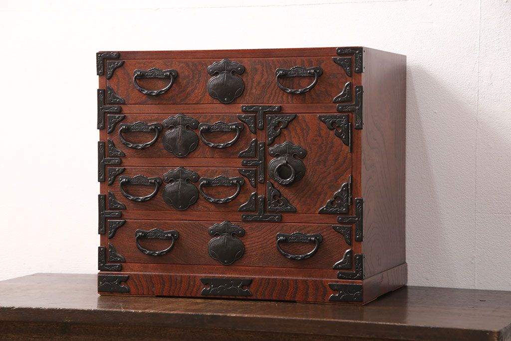 和箪笥 > 中古 岩谷堂箪笥 巾着モチーフの金具が目を引く小引き出し(小箪笥、卓上収納、小抽斗)(R-050974)
