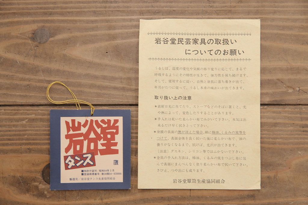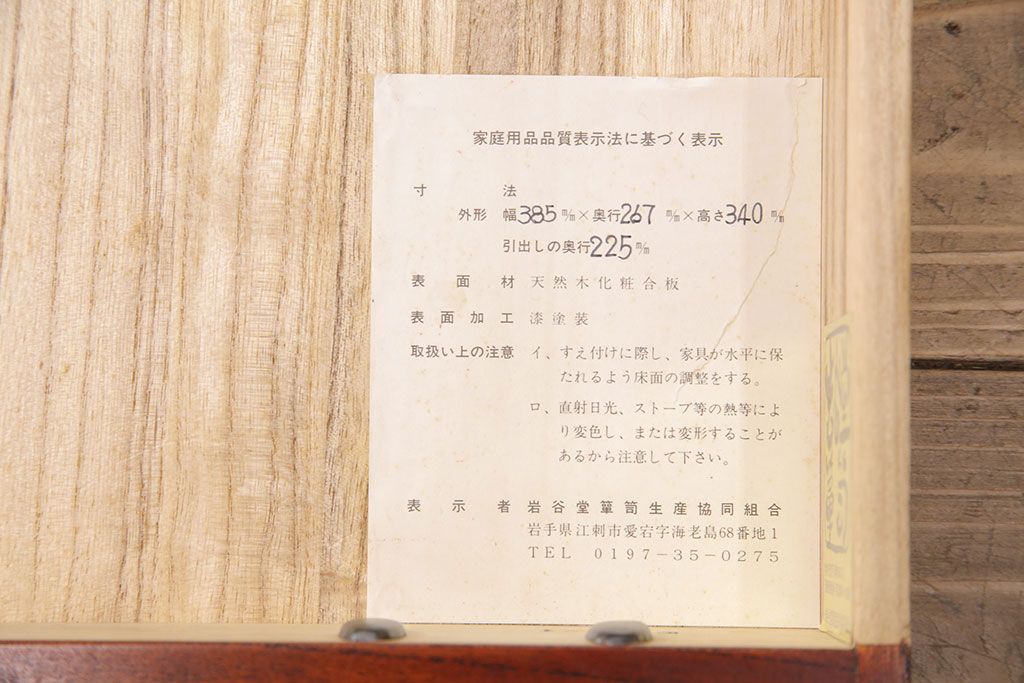 民芸家具 > 中古 岩谷堂箪笥 巾着モチーフの金具が目を引く小引き出し(小箪笥、卓上収納、小抽斗)(R-050974)
