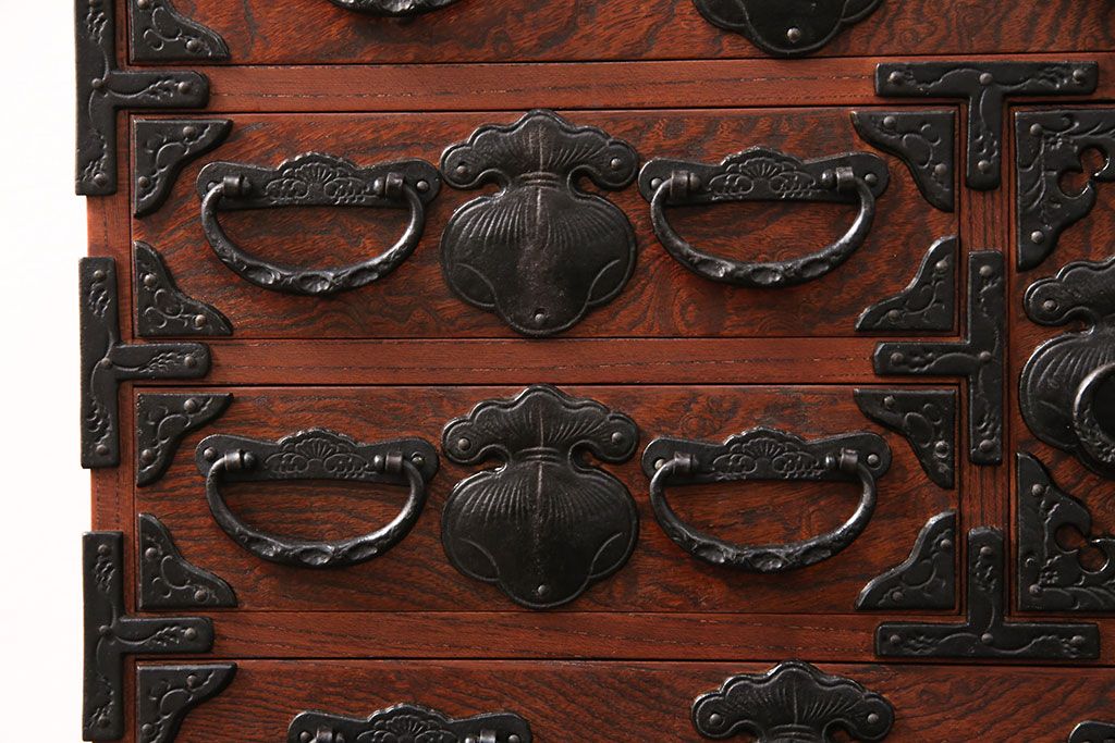 小物収納・トランク> 小引き出し > 中古 岩谷堂箪笥 巾着モチーフの金具が目を引く小引き出し(小箪笥、卓上収納、小抽斗)(R-050974)