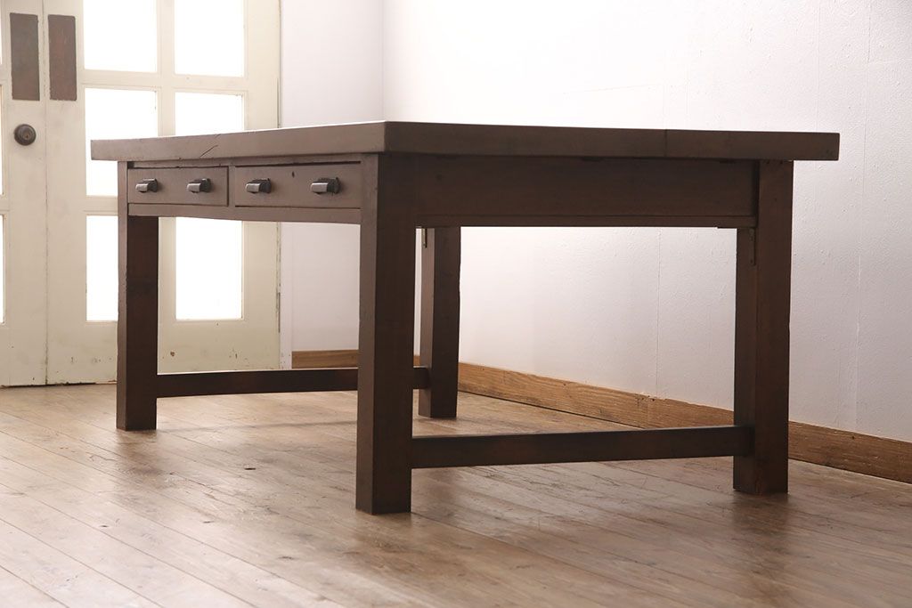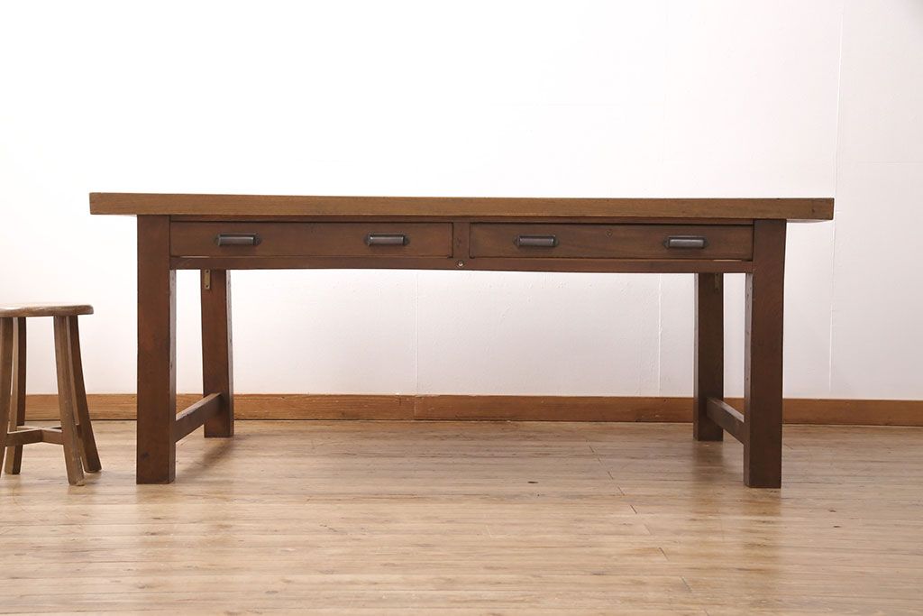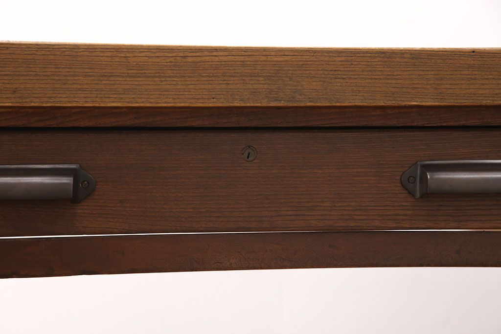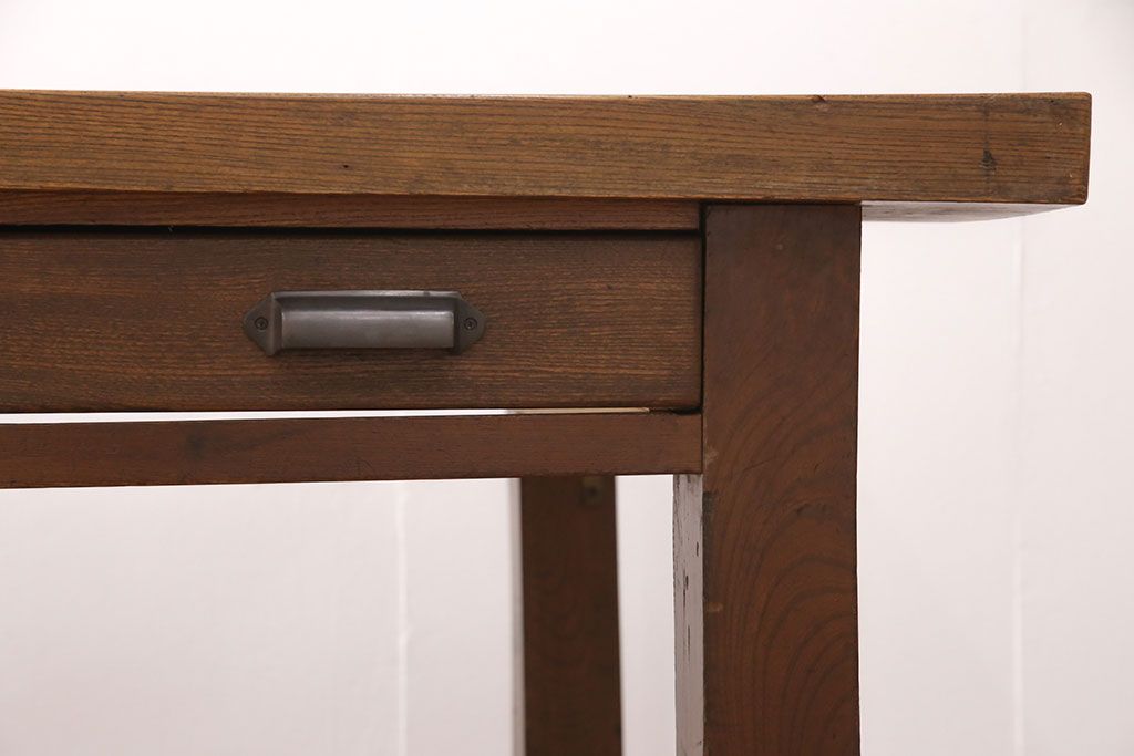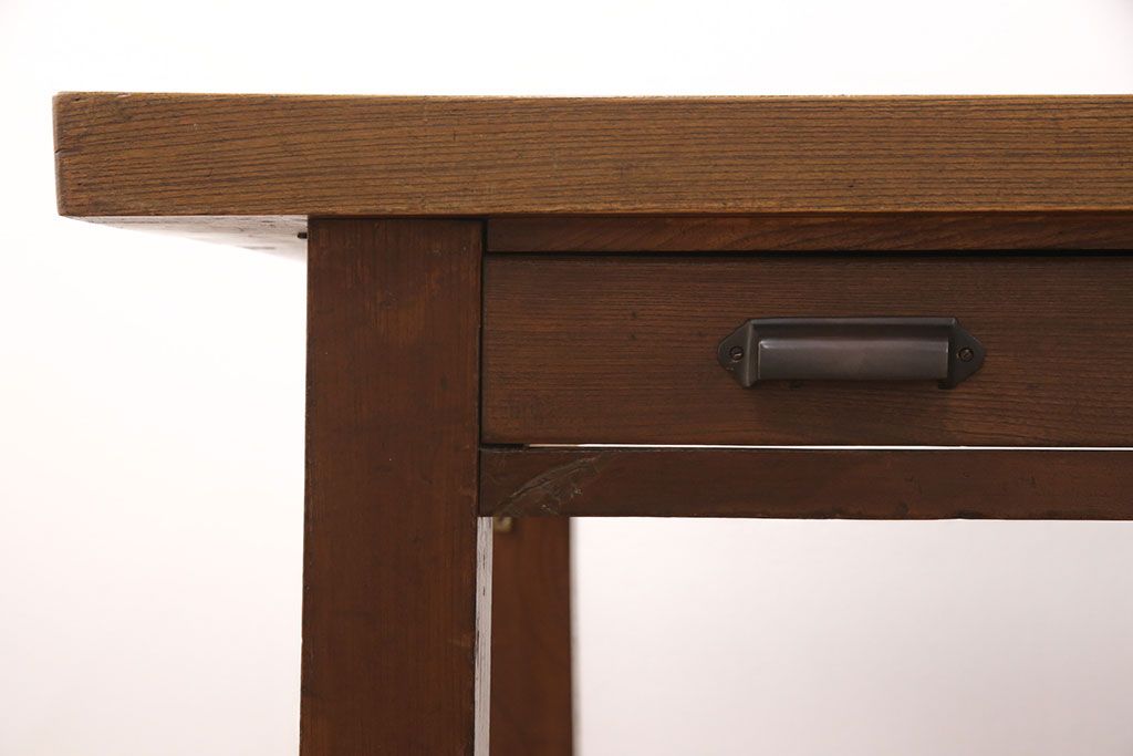 引き出し付きの作業台をリペア&カスタム!脚の貫の取り外し。傷の補修・着色。ワックス仕上げ。(ダイニングテーブル)