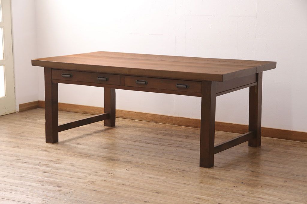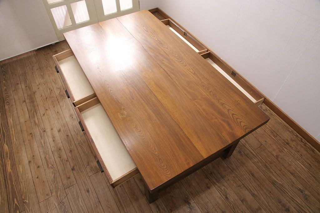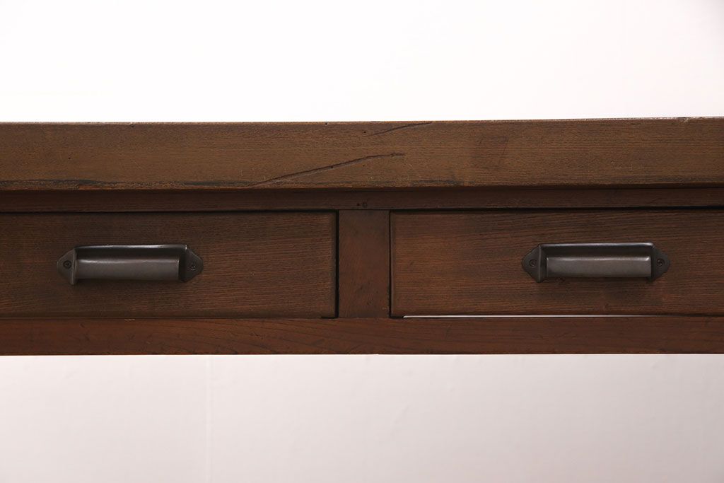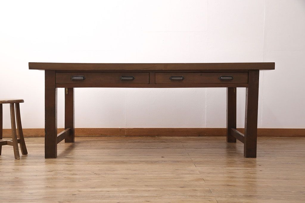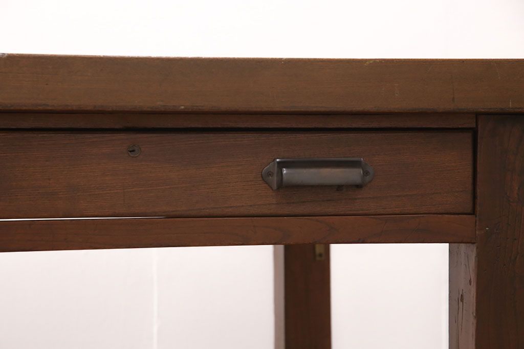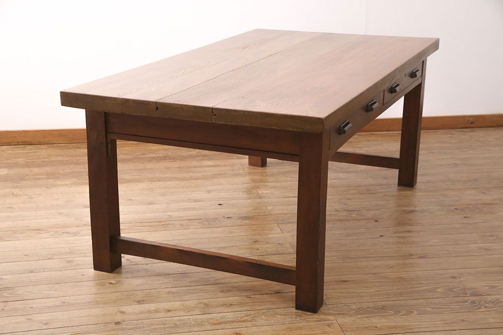 引き出し付きの作業台をリペア&カスタム!脚の貫の取り外し。傷の補修・着色。ワックス仕上げ。(ダイニングテーブル)