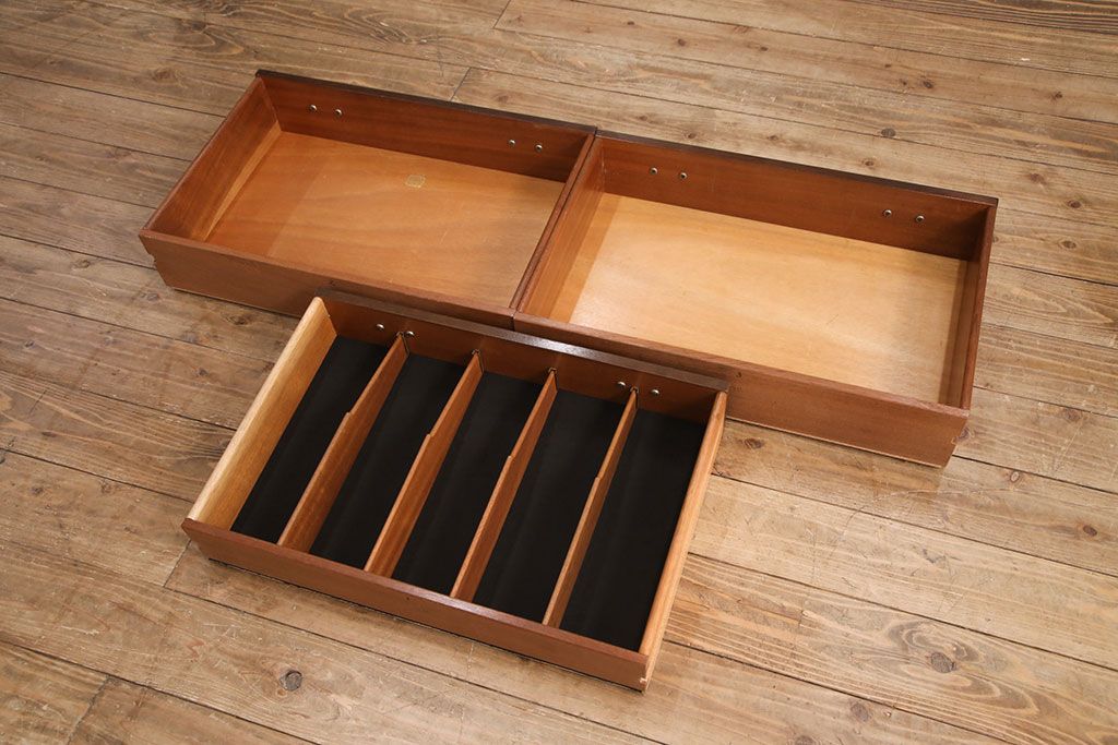 ■引き出しの内寸(仕切り付き) 深さ80mm/幅 左から100・100・100・100・105mm/奥行