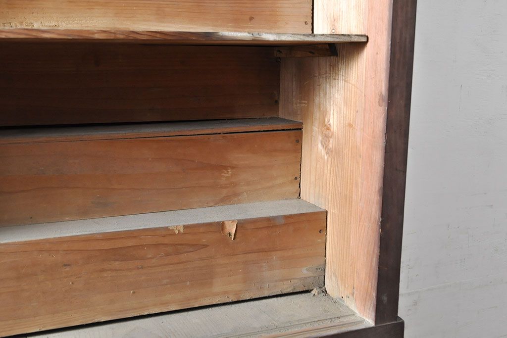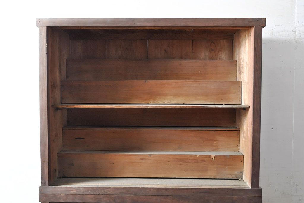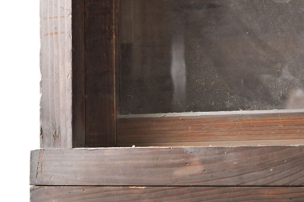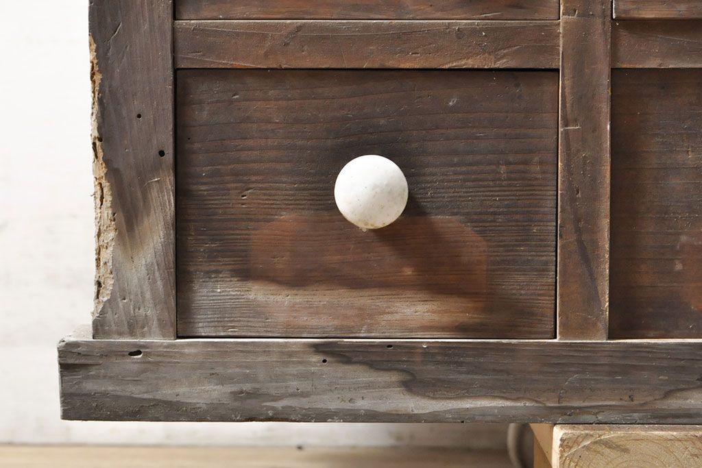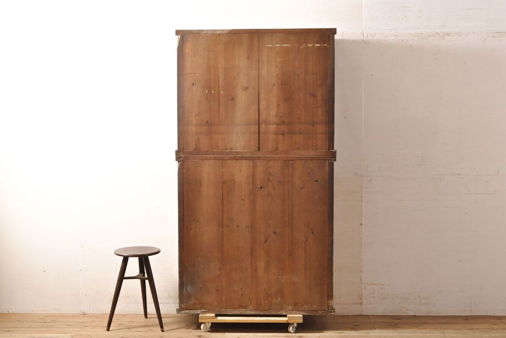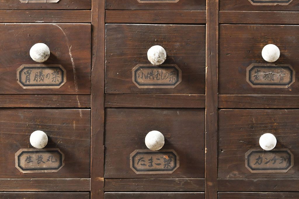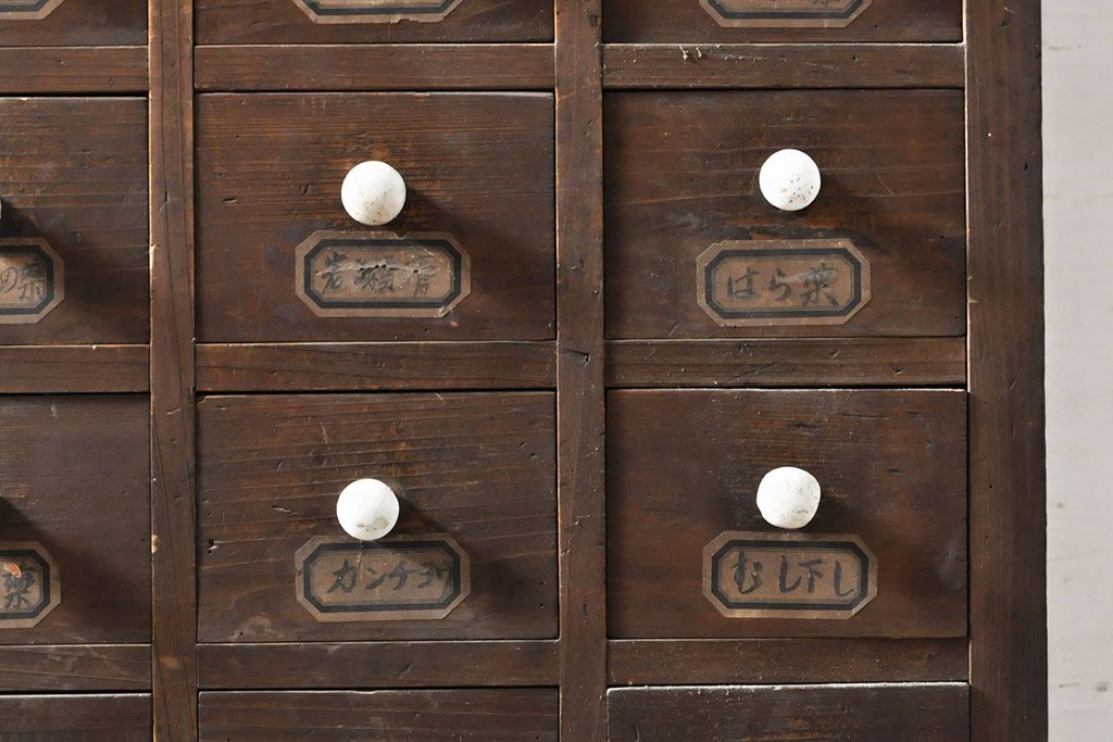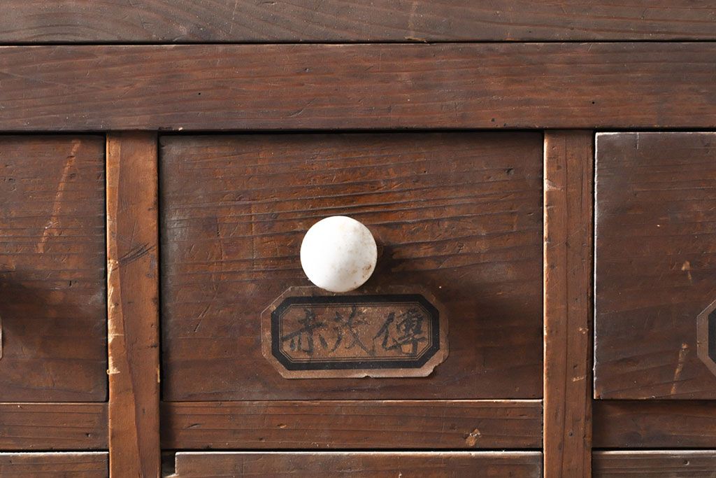 和箪笥> 薬箪笥 > 和製アンティーク 杉材 引き出し35杯 ガラス戸棚付きの薬箪笥(重ね箪笥、引き出し、チェスト、ドロワー、キャビネット)(R-050936)