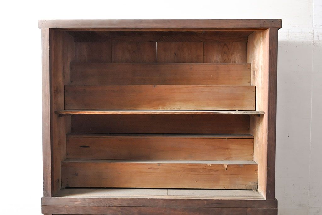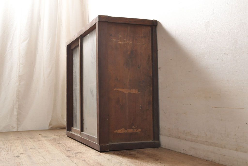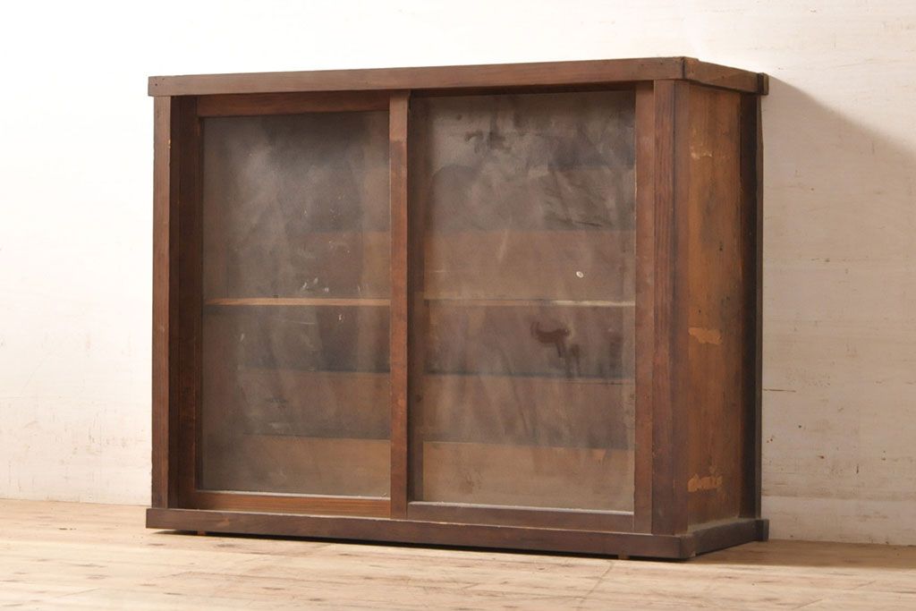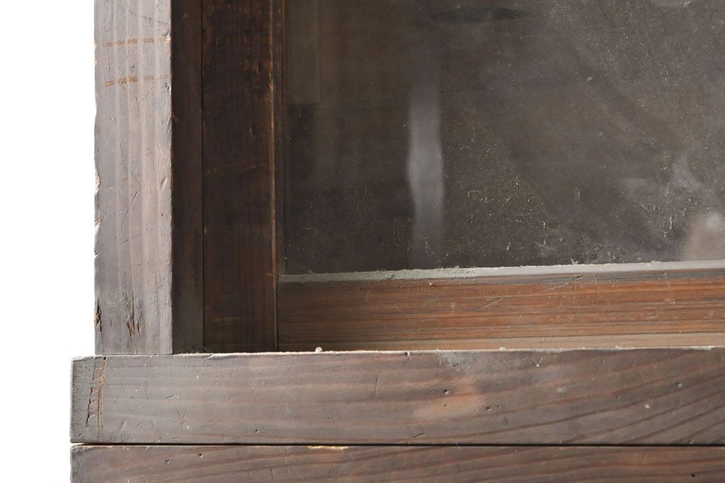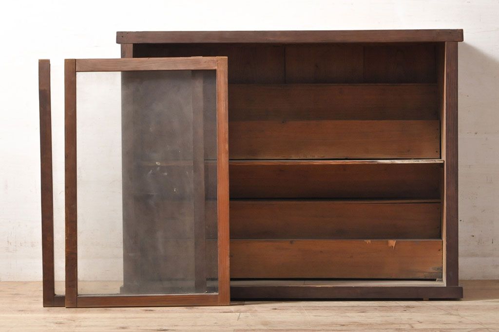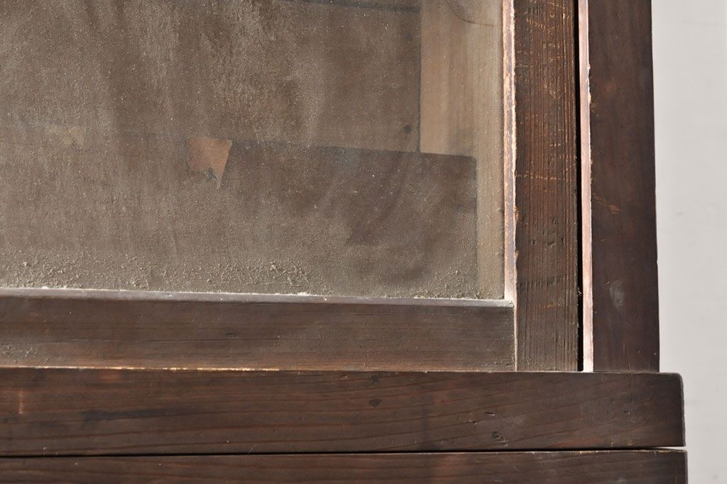 和製アンティーク 杉材 ひな壇付き ディスプレイにもおすすめなガラス戸棚(収納棚、キャビネット、飾り棚、リビングボード)(R-050937)
