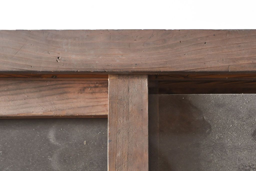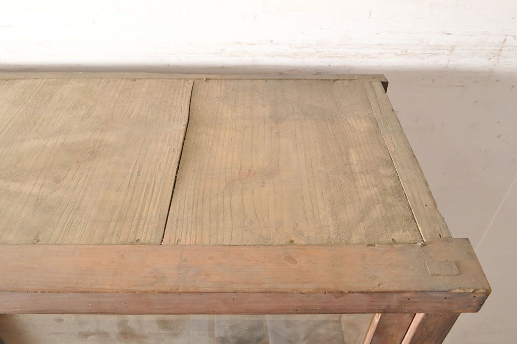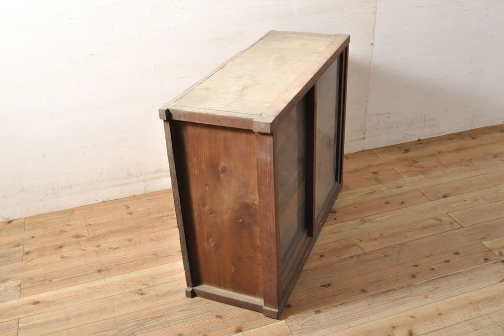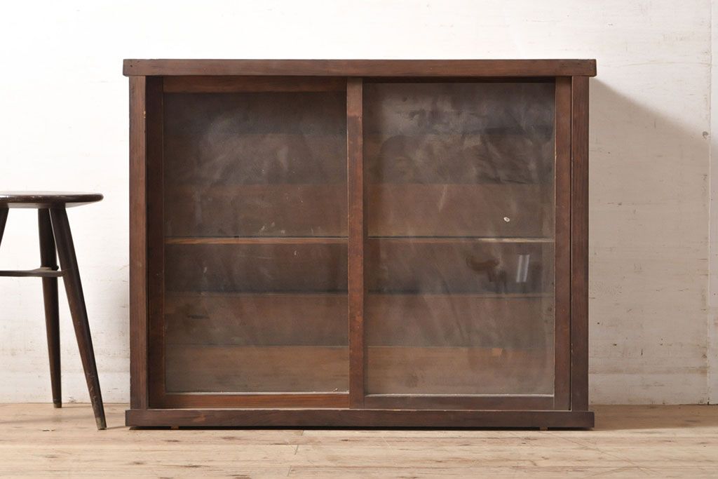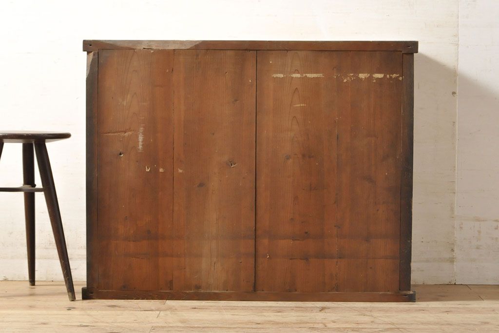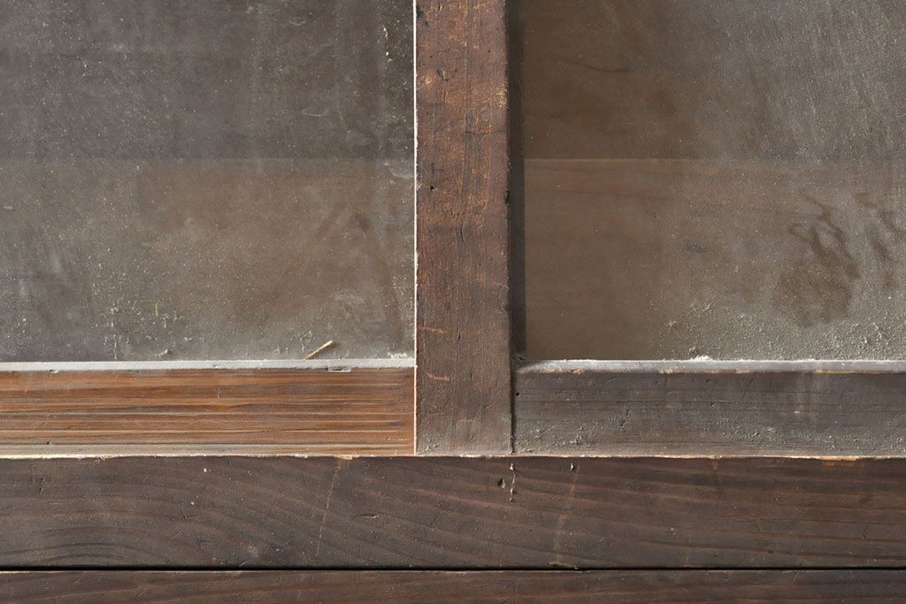 和製アンティーク 杉材 ひな壇付き ディスプレイにもおすすめなガラス戸棚(収納棚、キャビネット、飾り棚、リビングボード)(R-050937)