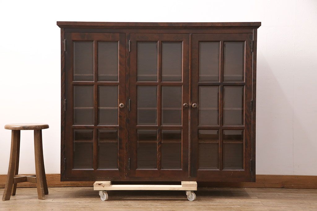 中古 北海道民芸家具 脚または台輪を付けてリメイク!品のある佇まいのキャビネット(食器棚、飾り棚、収納棚)(R-050996)です。