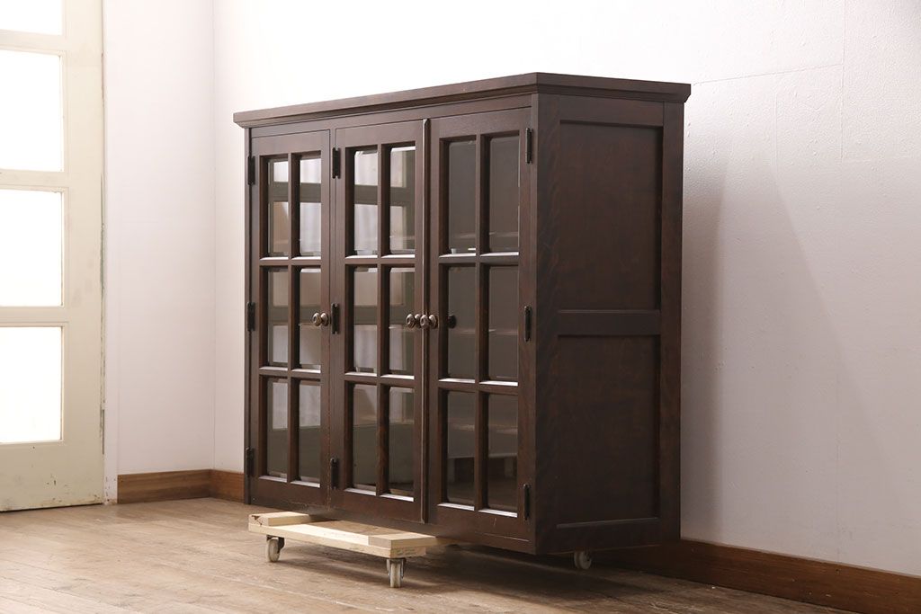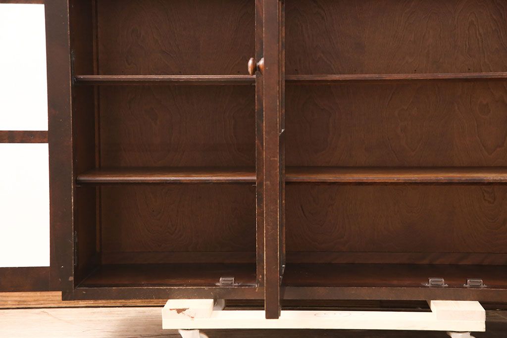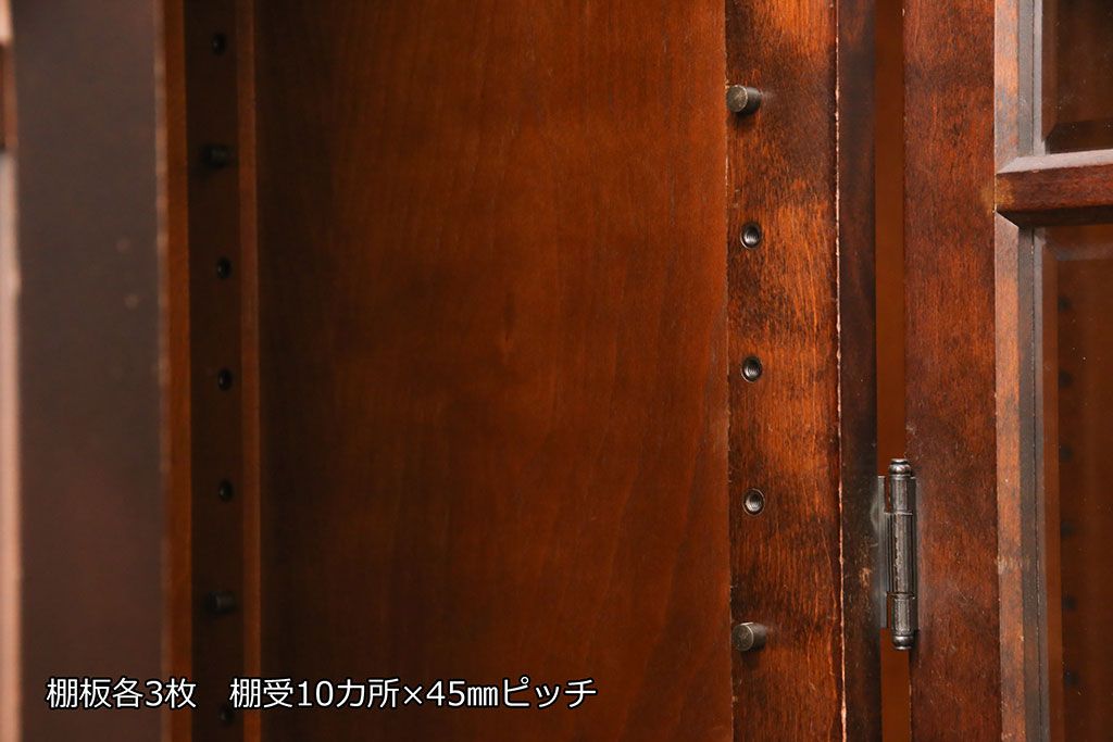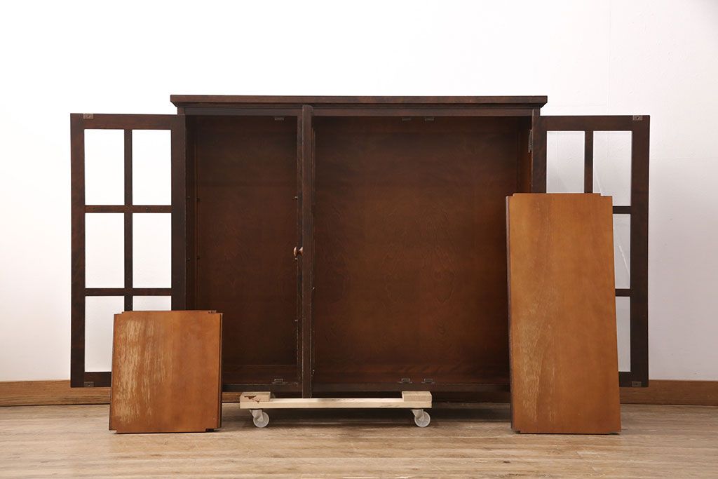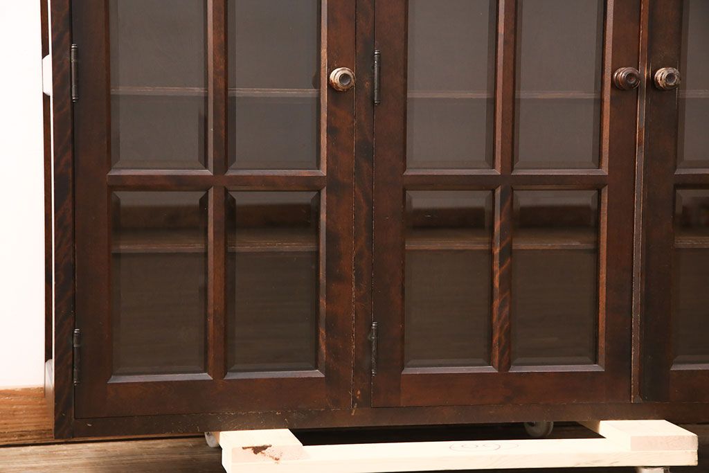 中古 北海道民芸家具 脚または台輪を付けてリメイク!品のある佇まいのキャビネット(食器棚、飾り棚、収納棚)(R-050996)