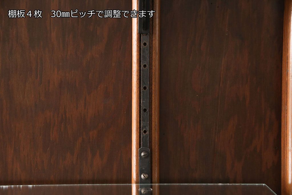 棚板は取り外しできます。棚板は4枚あります。30mmピッチで調整できます。棚幅サイズのものが1枚の作りです。