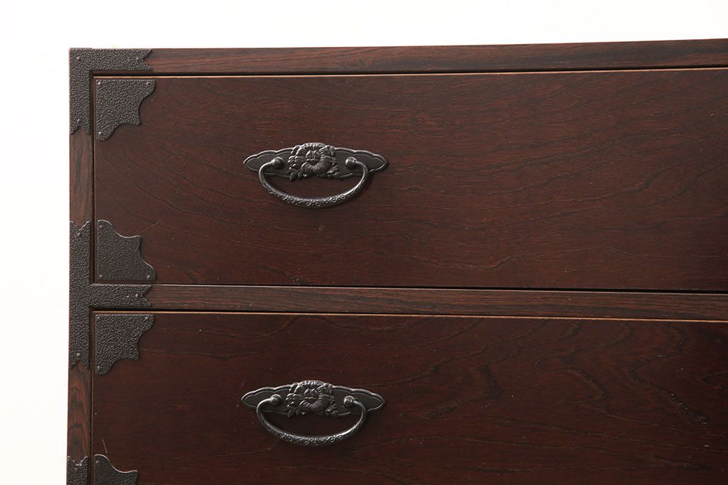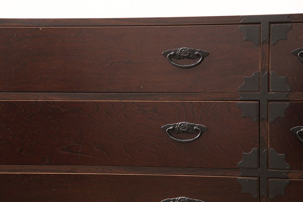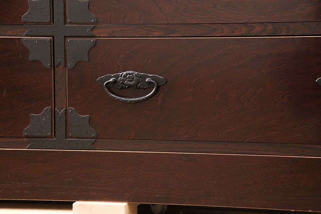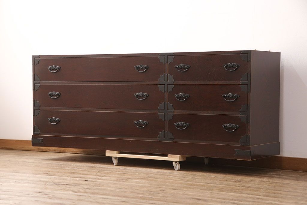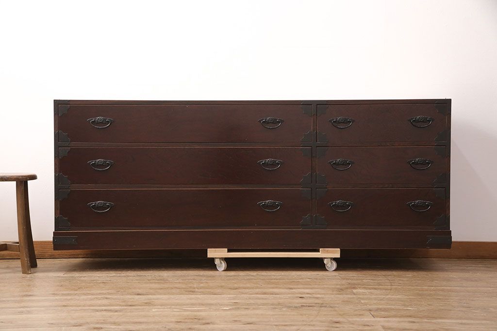 和箪笥 > 中古 美品 天板リメイク 落ち着いた空間づくりにおすすめ!上品な佇まいが魅力の民芸箪笥ローボード(ローチェスト、テレビ台、テレビボード、リビングボード)(R-050980)