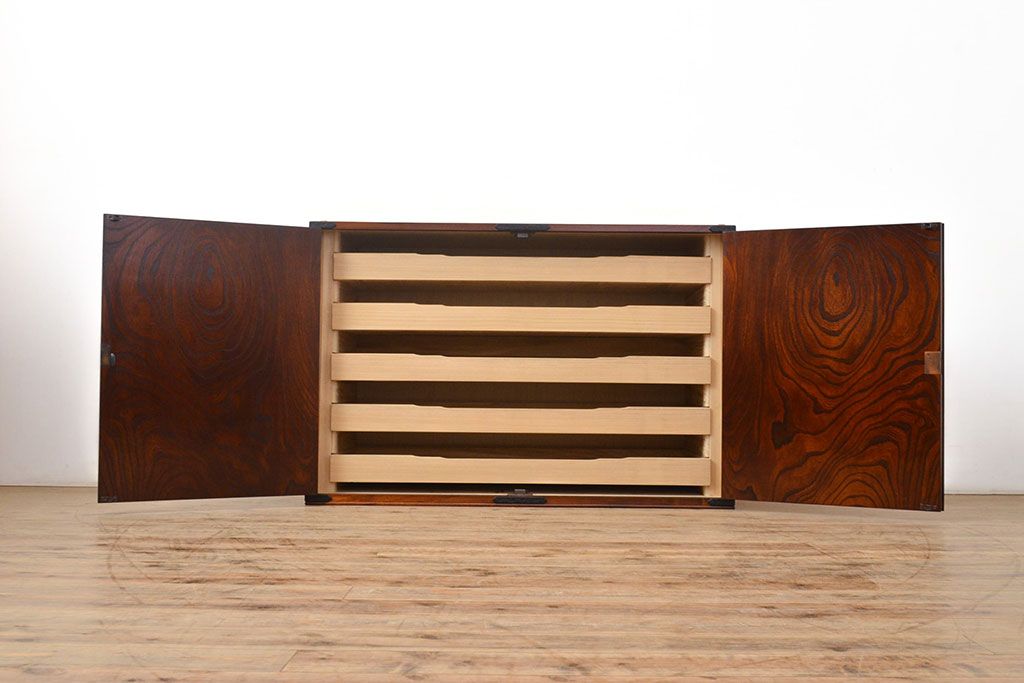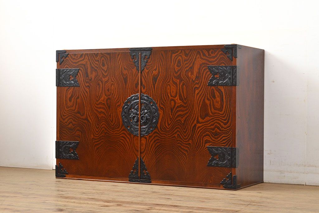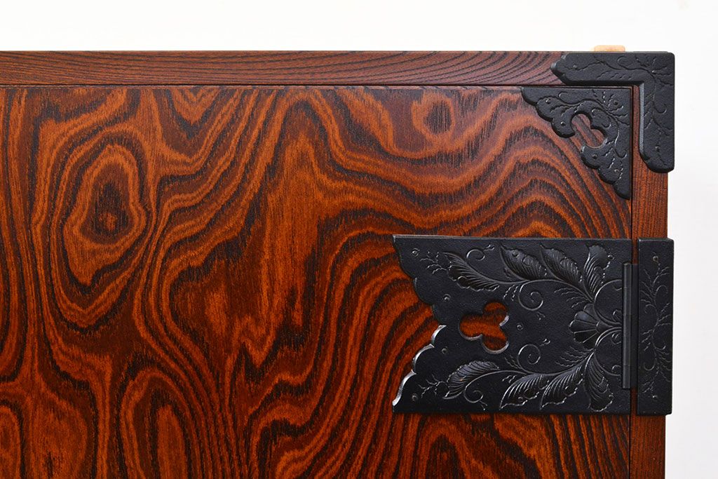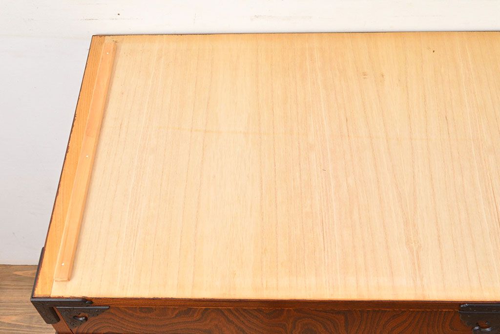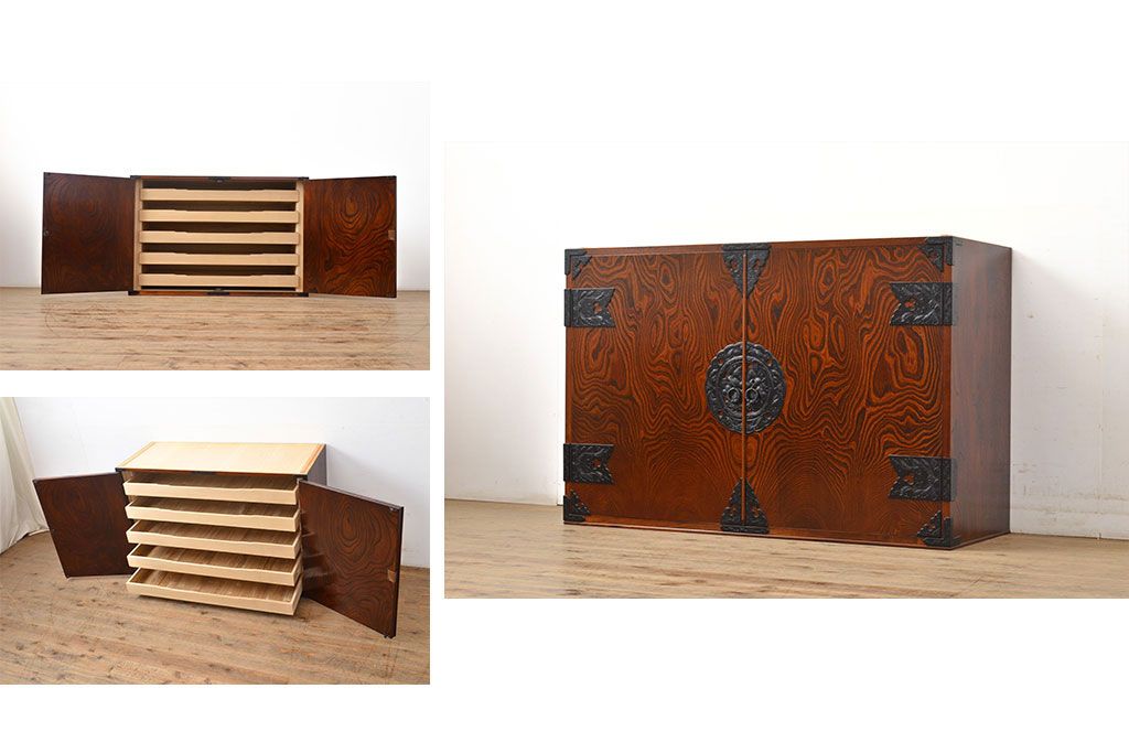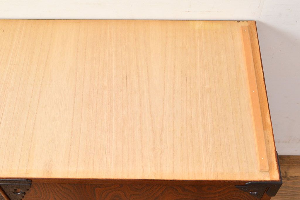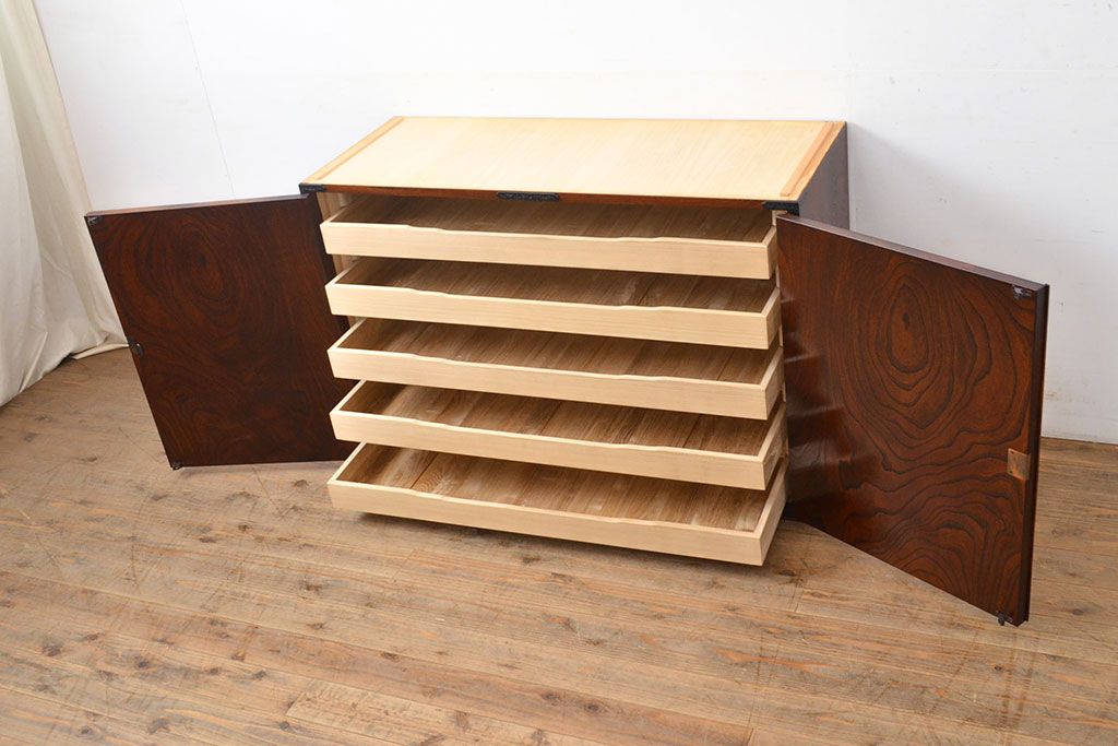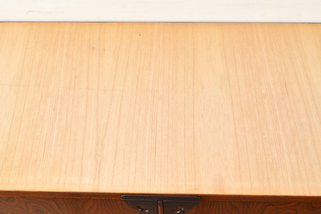 ラフジュ工房> チェスト・引き出し> サイドチェスト > 中古 美品 岩谷堂箪笥 天板・脚(台輪)付きリメイク 左右対称の木目が目を引く衣装盆付きサイドボード(引き出し、着物箪笥、衣装タンス、サイドチェスト、収納棚)(R-050934)