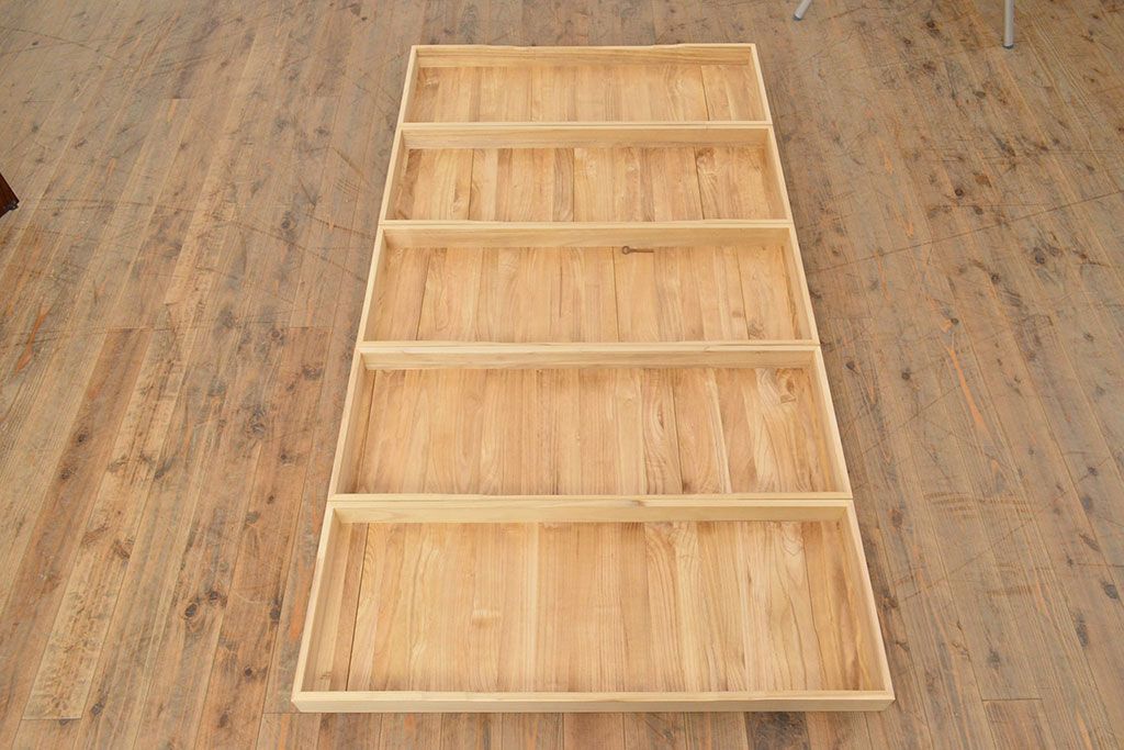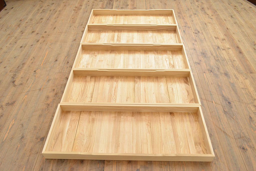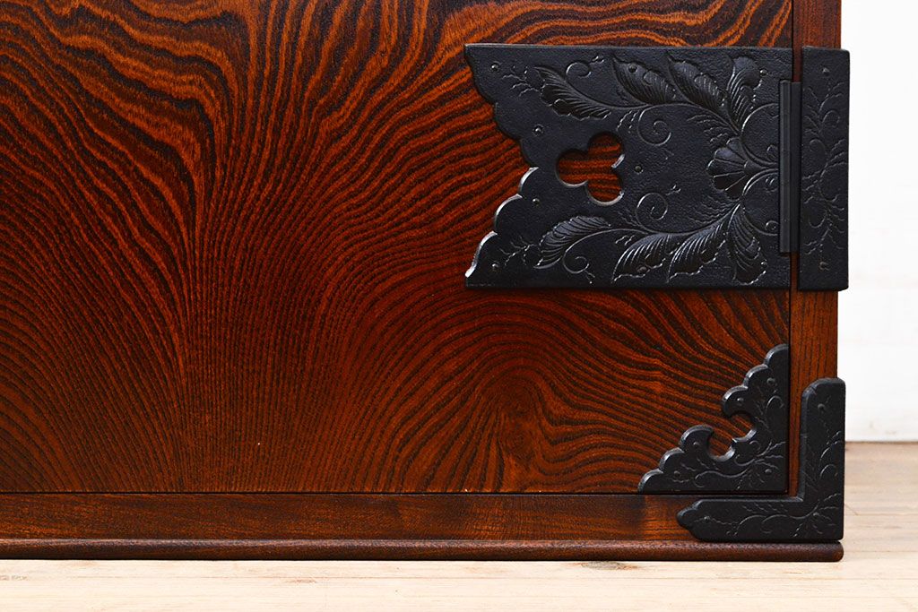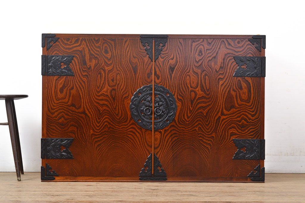 ラフジュ工房> 和箪笥 > 中古 美品 岩谷堂箪笥 天板・脚(台輪)付きリメイク 左右対称の木目が目を引く衣装盆付きサイドボード(引き出し、着物箪笥、衣装タンス、サイドチェスト、収納棚)(R-050934)