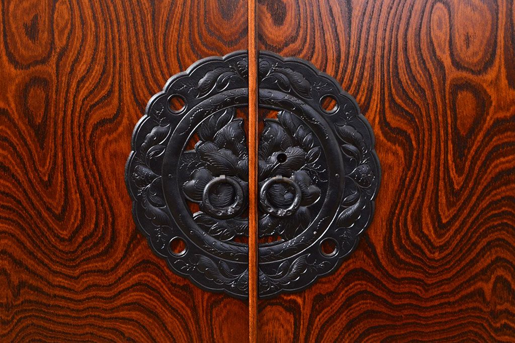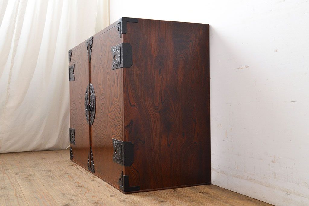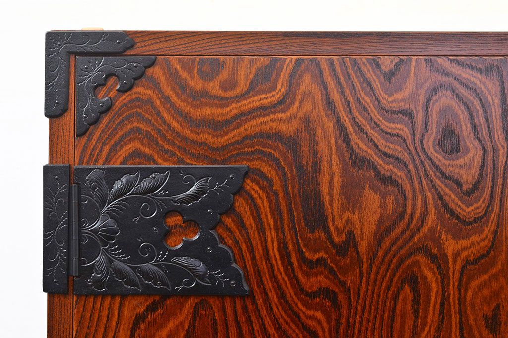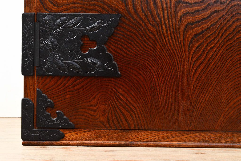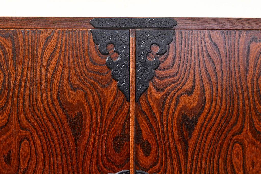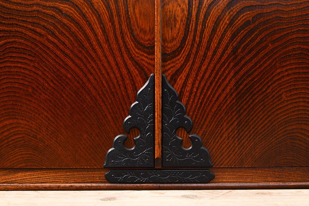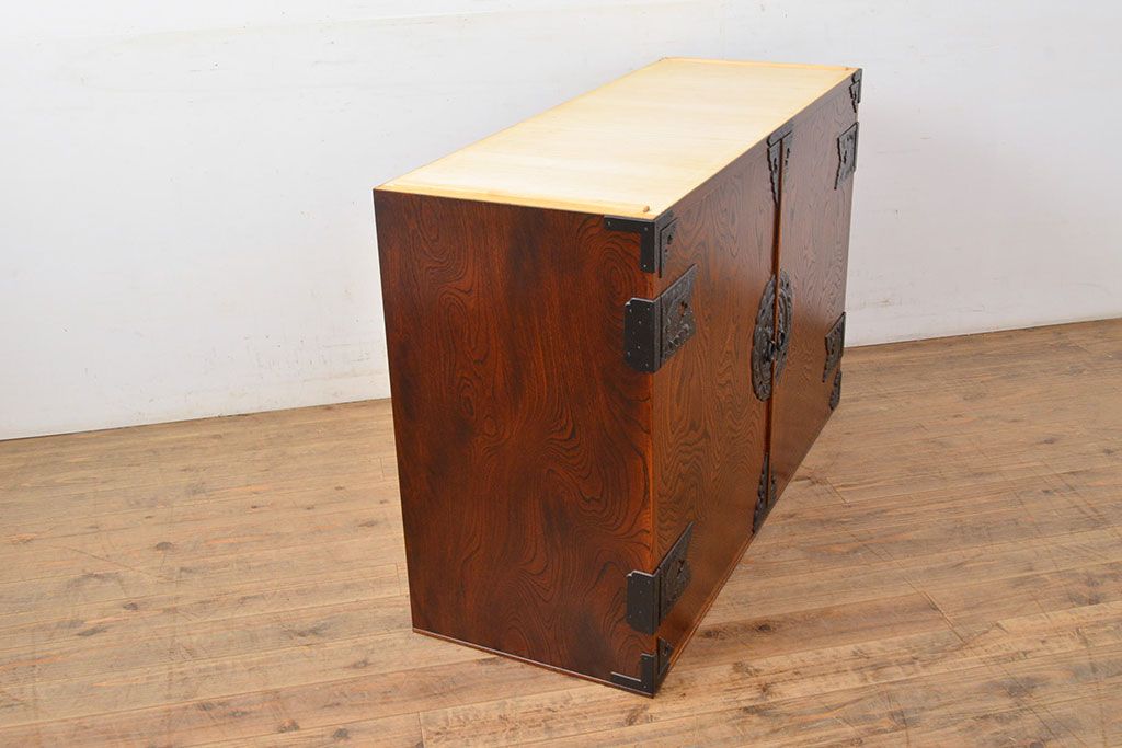 ラフジュ工房> キャビネット・戸棚> サイドボード > 中古 美品 岩谷堂箪笥 天板・脚(台輪)付きリメイク 左右対称の木目が目を引く衣装盆付きサイドボード(引き出し、着物箪笥、衣装タンス、サイドチェスト、収納棚)(R-050934)