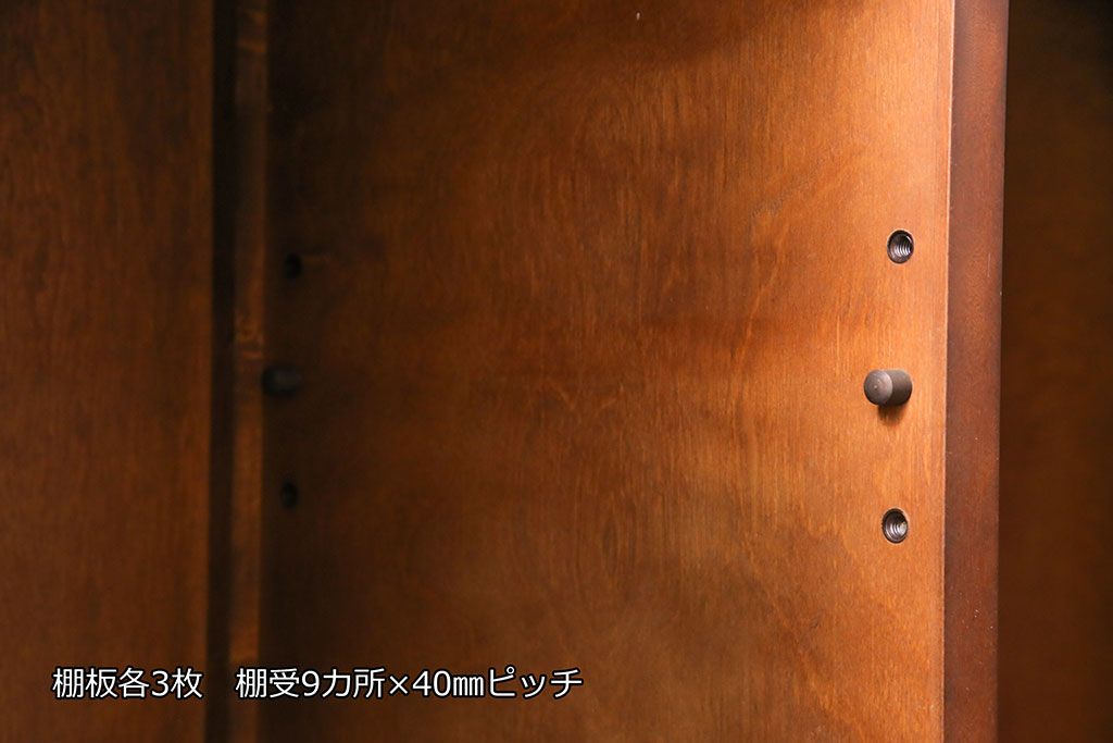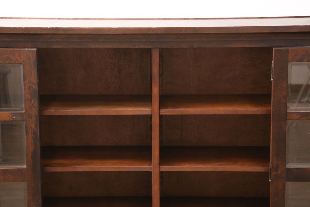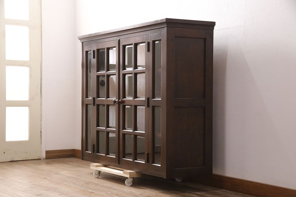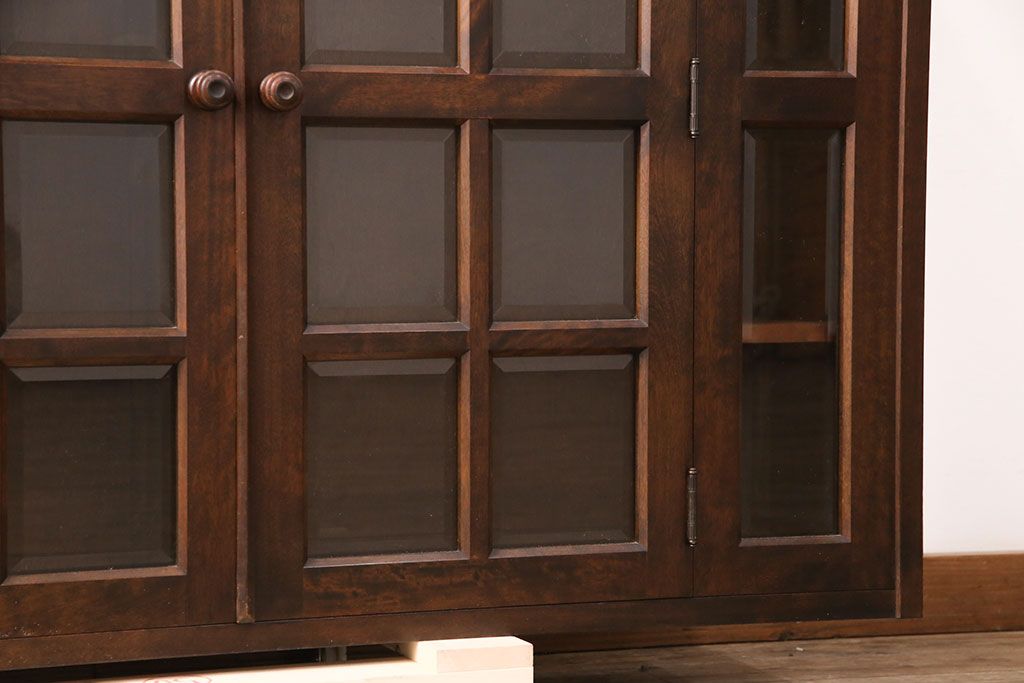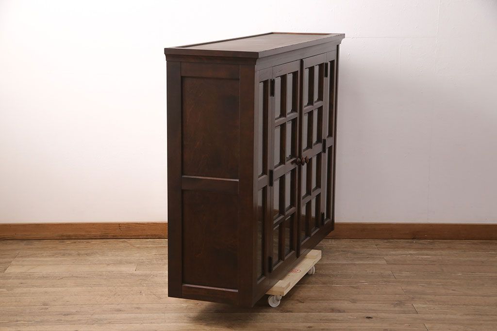 民芸家具 > 中古 北海道民芸家具 脚(台輪)付きリメイク 落ち着きのある色合いとクラシカルな佇まいが魅力のサイドキャビネット(収納棚、飾り棚、本箱、ブックケース)(R-051020)