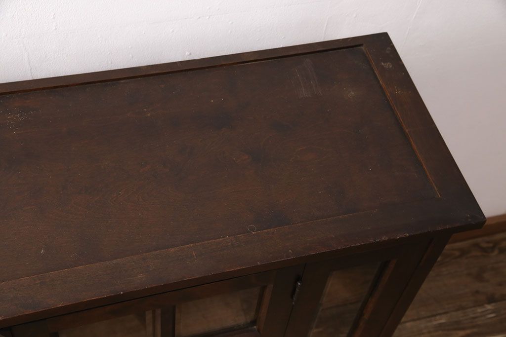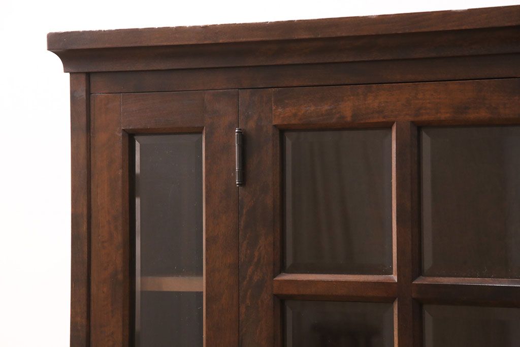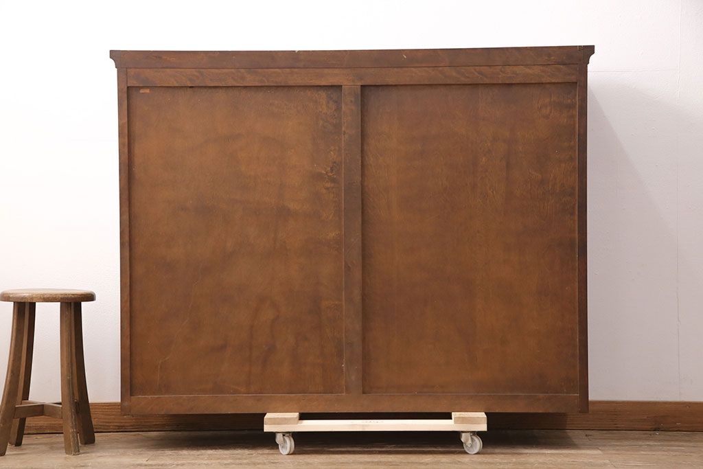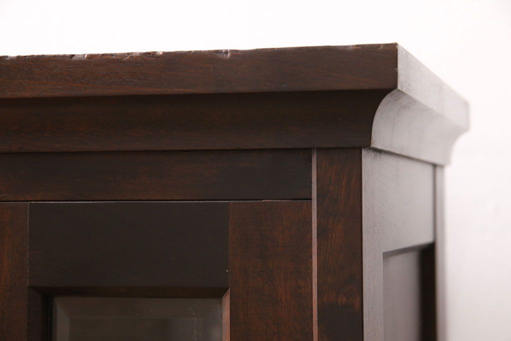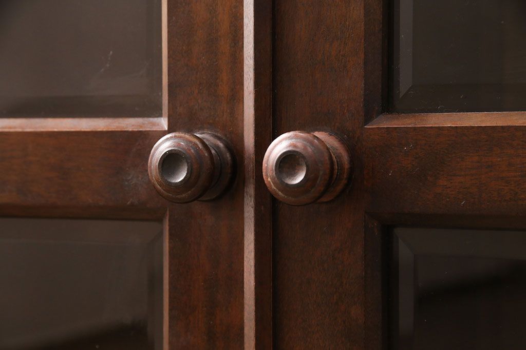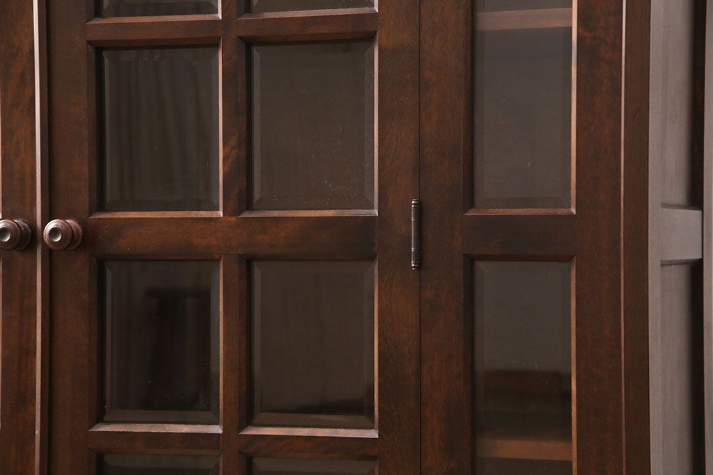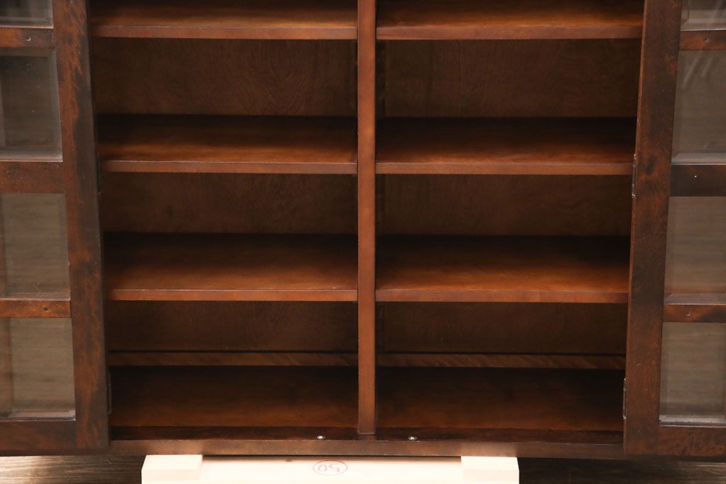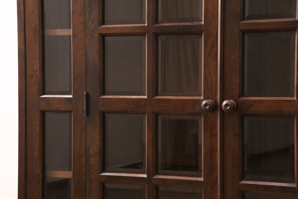 キャビネット・戸棚> サイドキャビネット > 中古 北海道民芸家具 脚(台輪)付きリメイク 落ち着きのある色合いとクラシカルな佇まいが魅力のサイドキャビネット(収納棚、飾り棚、本箱、ブックケース)(R-051020)