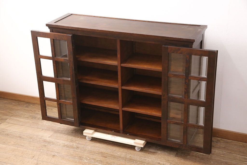 中古 北海道民芸家具 脚(台輪)付きリメイク 落ち着きのある色合いとクラシカルな佇まいが魅力のサイドキャビネット(収納棚、飾り棚、本箱、ブックケース)(R-051020)