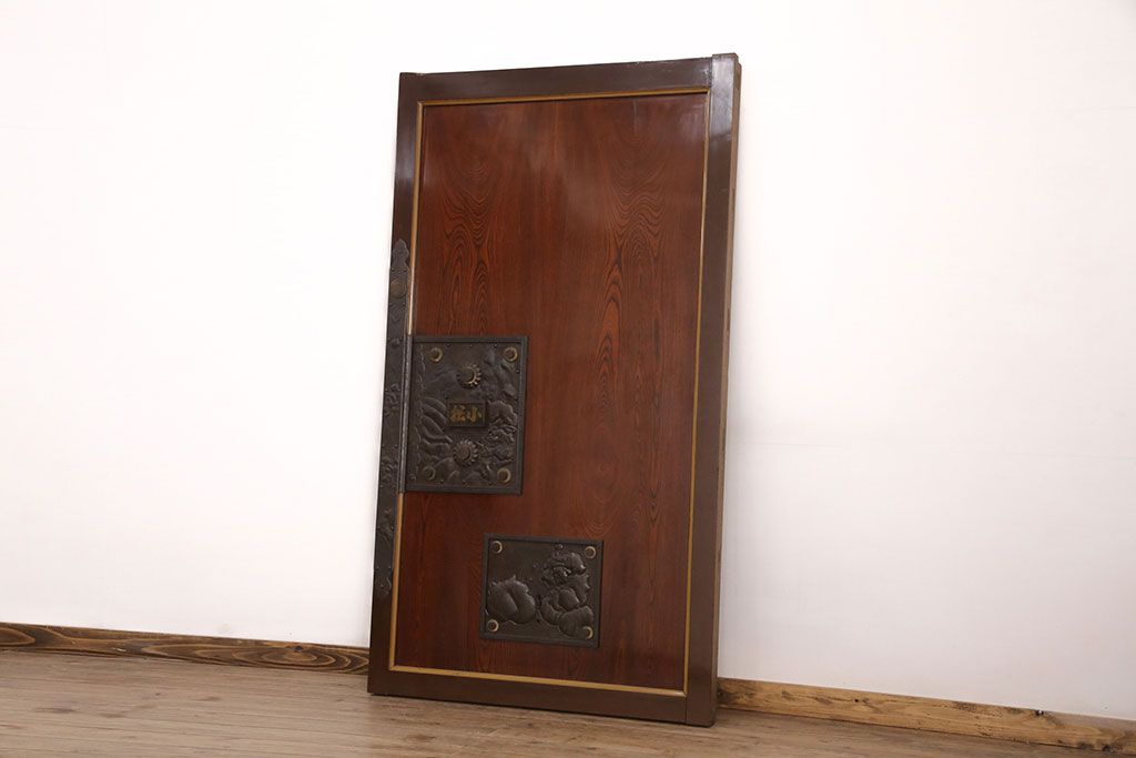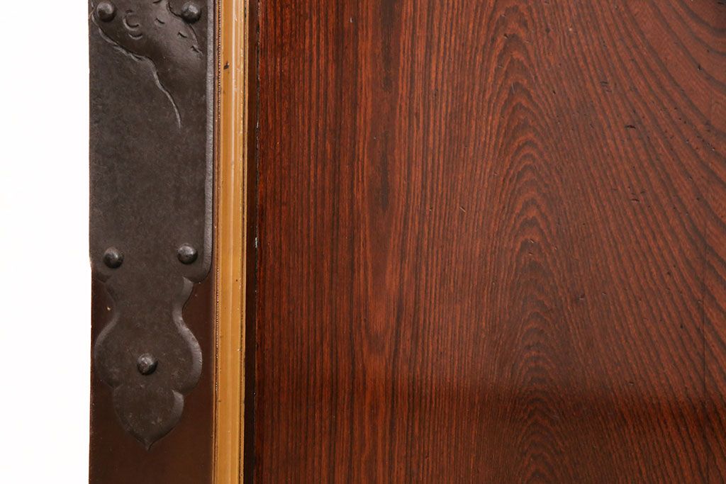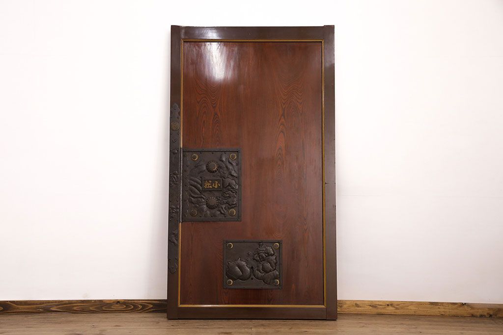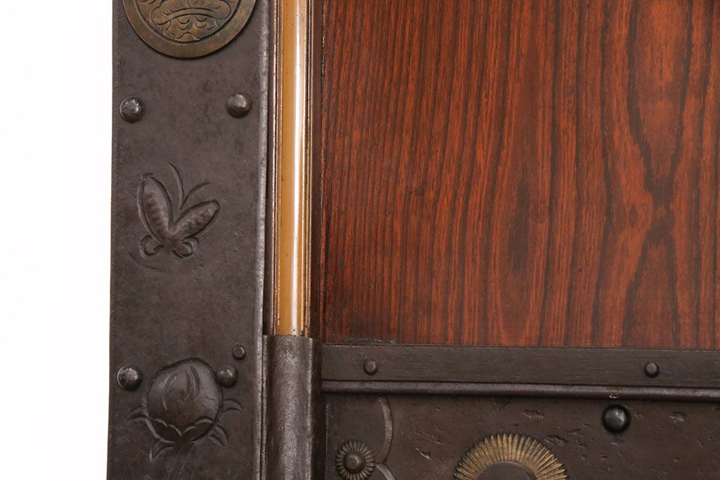 ドア・建具> 玄関ドア・玄関戸 > 美品 明治大正期 酒田産 庄内 ケヤキ材 極上品!重厚感のある立派な金具と美しい漆が魅力の蔵戸(玄関戸、引き戸、建具)(R-050870)
