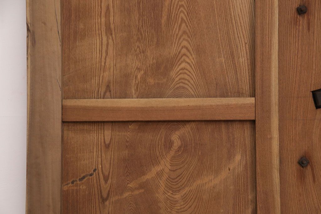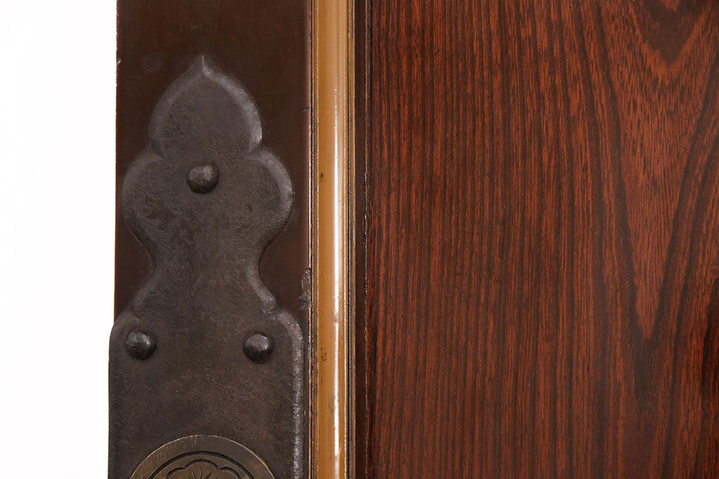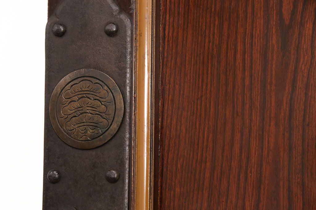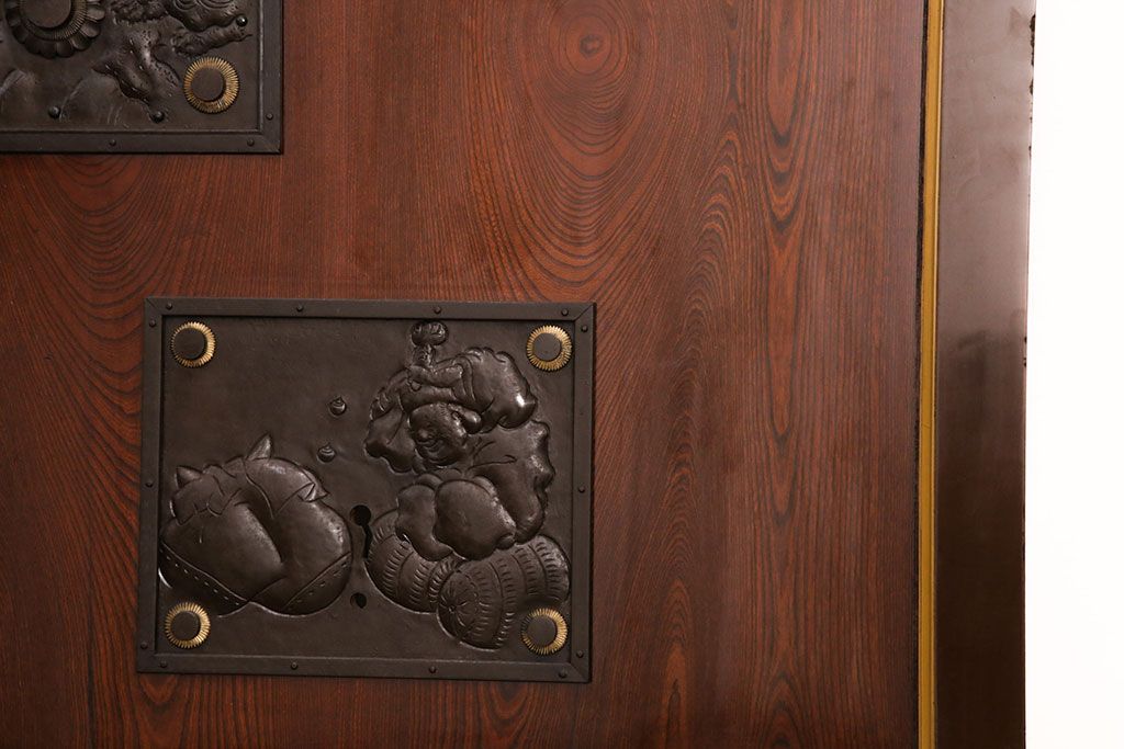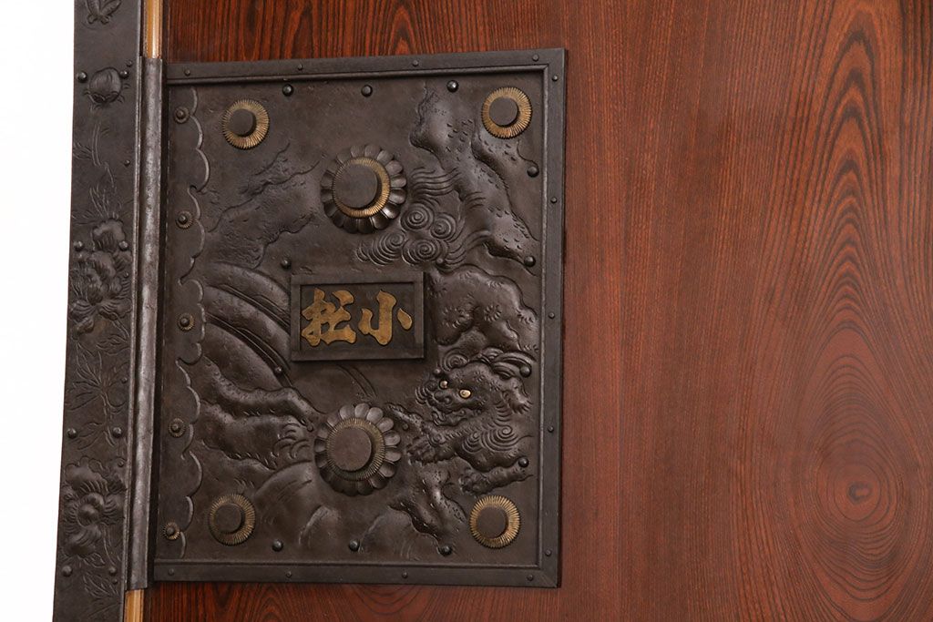ドア・建具> 玄関ドア・玄関戸 > 美品 明治大正期 酒田産 庄内 ケヤキ材 極上品!重厚感のある立派な金具と美しい漆が魅力の蔵戸(玄関戸、引き戸、建具)(R-050870)