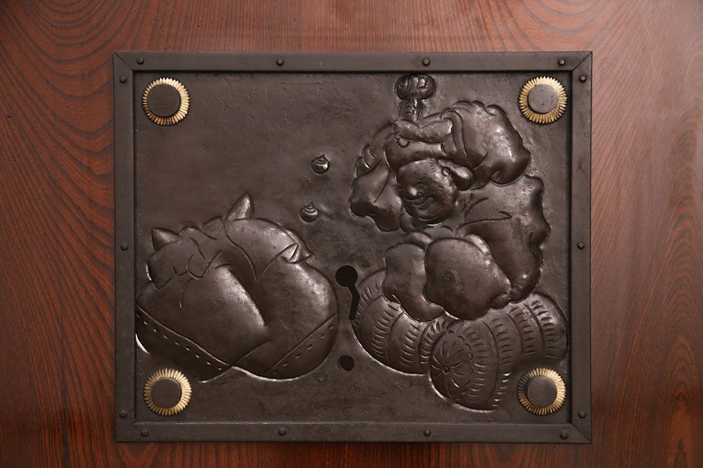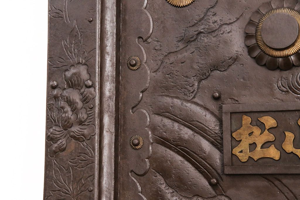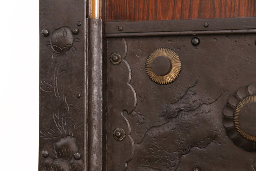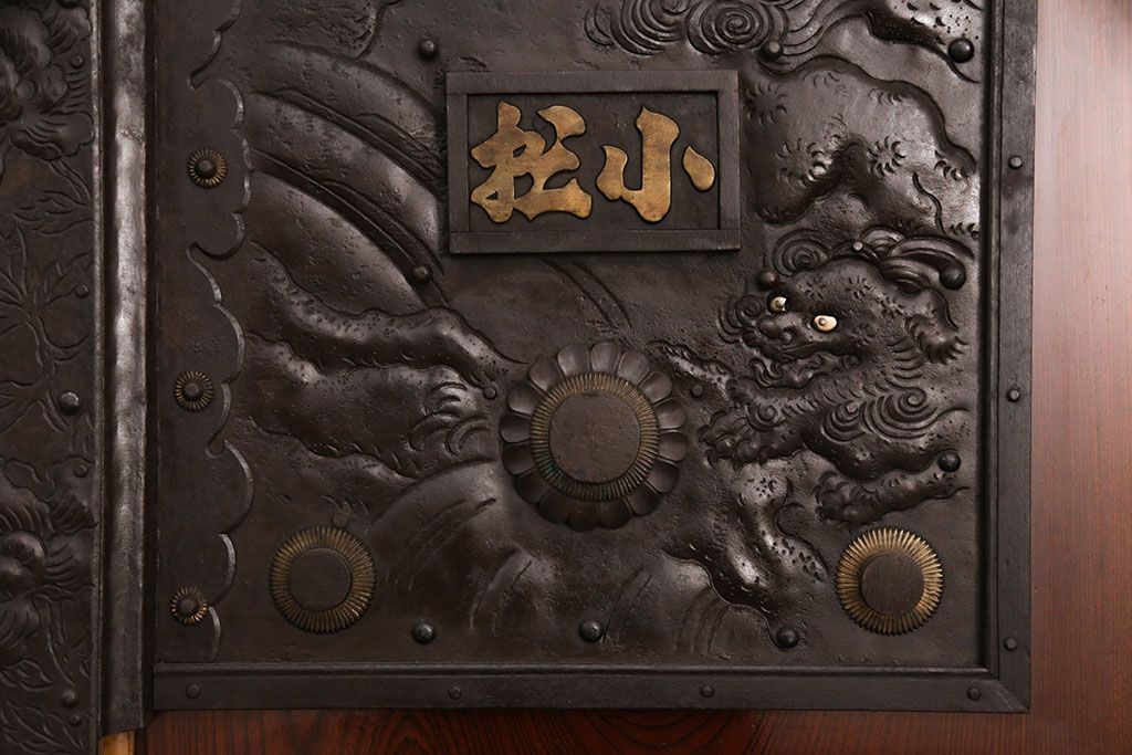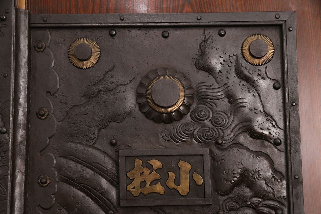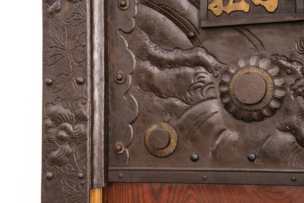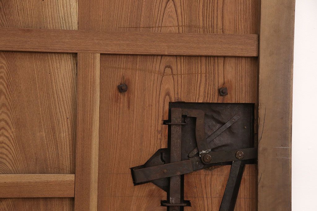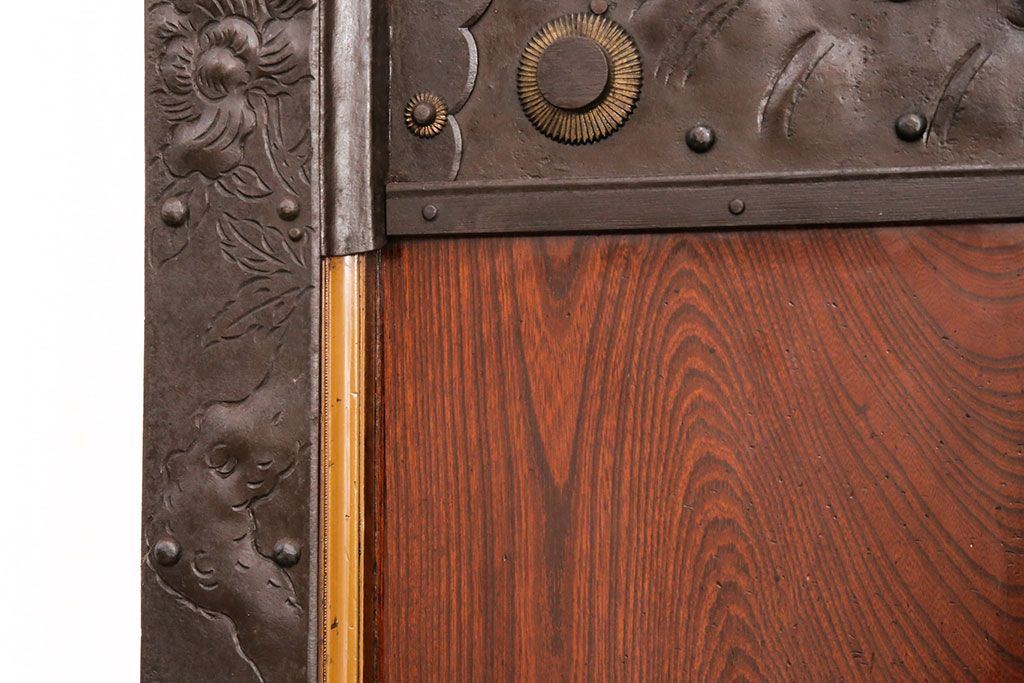 ドア・建具> 蔵戸 > 美品 明治大正期 酒田産 庄内 ケヤキ材 極上品!重厚感のある立派な金具と美しい漆が魅力の蔵戸(玄関戸、引き戸、建具)(R-050870)