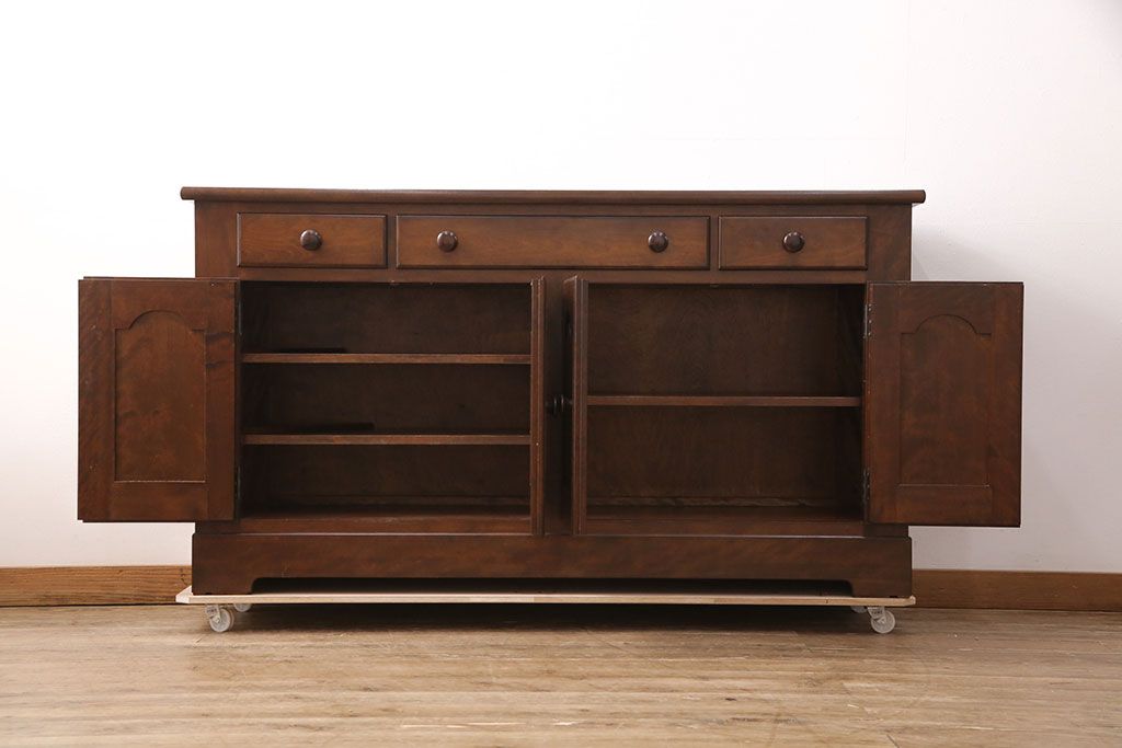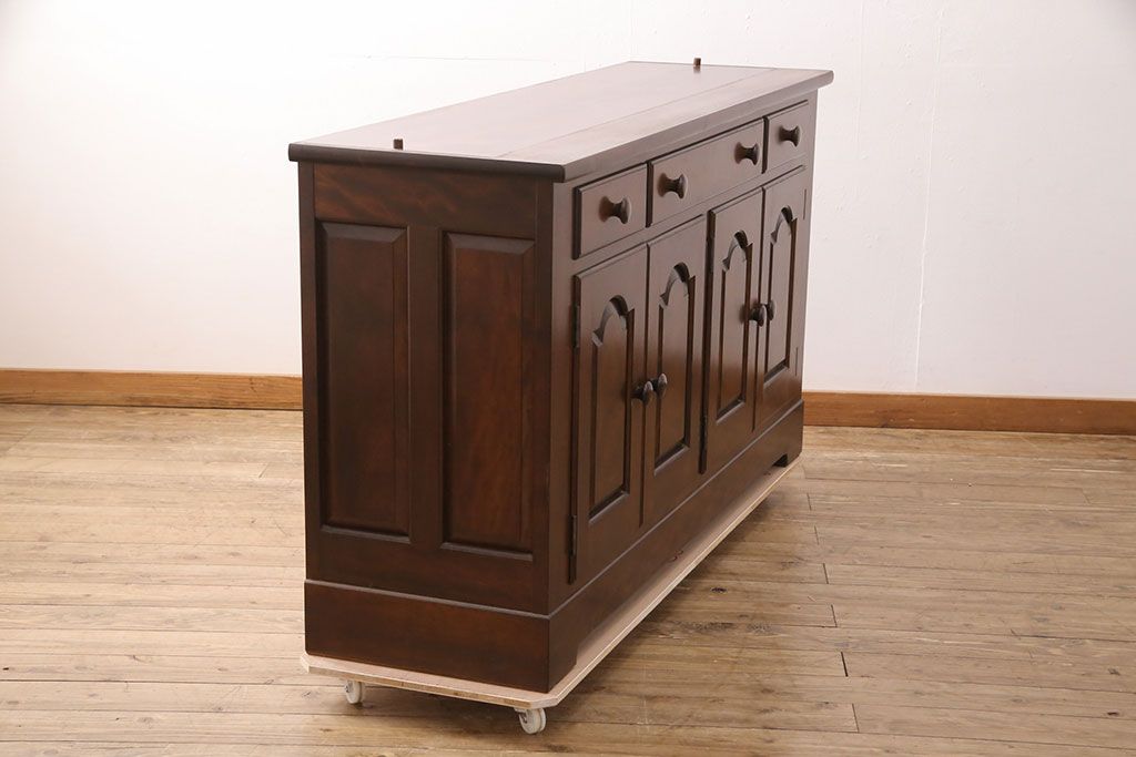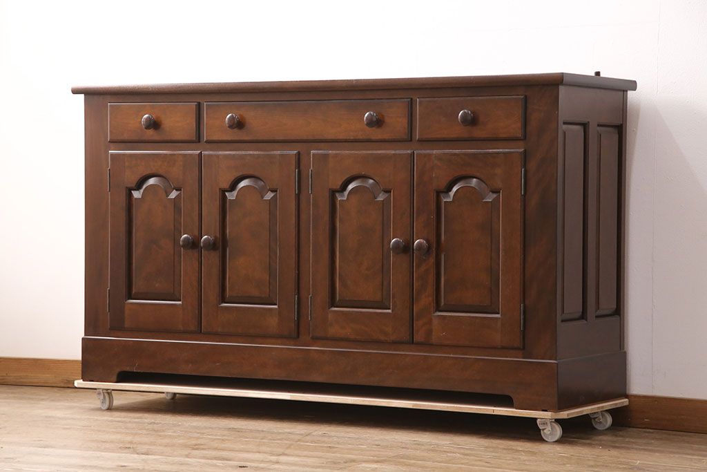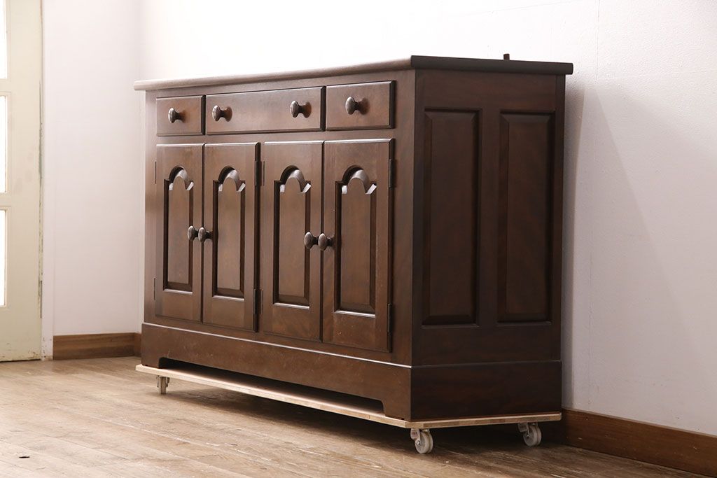 民芸家具 > 中古 美品 松本民芸家具 和・洋どちらの空間にも合わせやすいシックなサイドボード(収納棚、戸棚、カウンターテーブル、キャビネット)(R-050977)