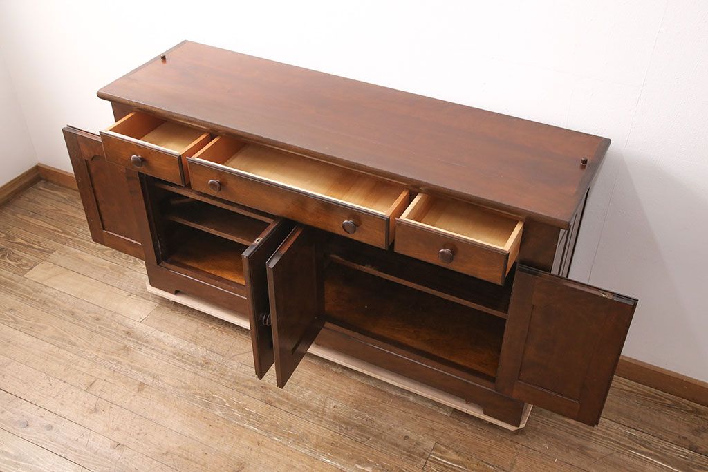 キャビネット・戸棚> サイドキャビネット > 中古 美品 松本民芸家具 和・洋どちらの空間にも合わせやすいシックなサイドボード(収納棚、戸棚、カウンターテーブル、キャビネット)(R-050977)