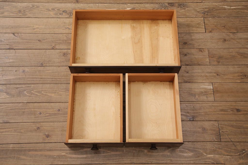 ■引き出しの内寸 深さ 各90mm/幅 中央605mm・左右各265/奥行 各355mm