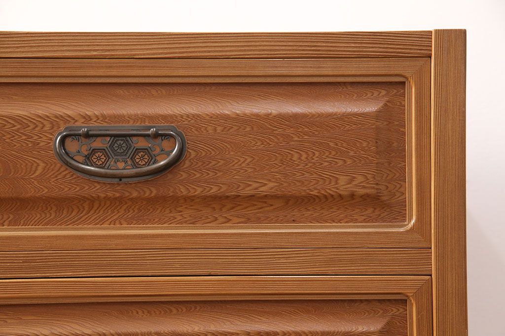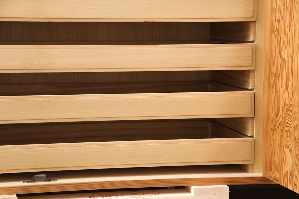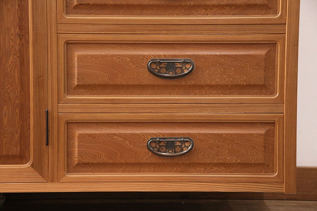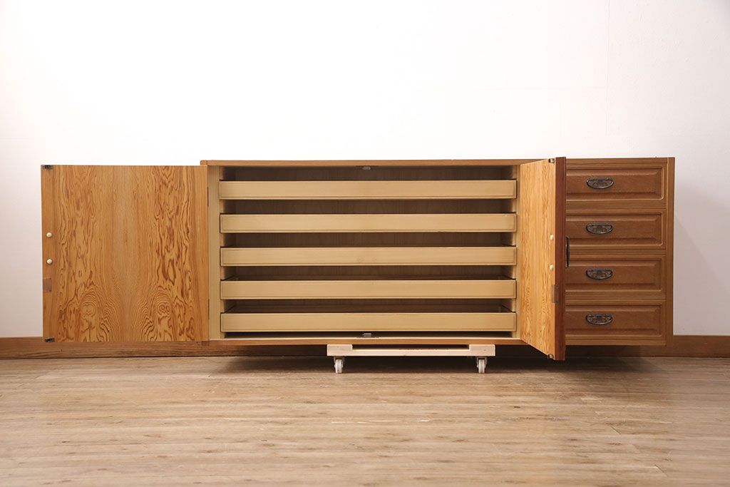 中古 国産高級家具 屋久杉・中桐材 上品な屋久杉の杢目が上質な空間づくりに活躍するローチェスト(サイドボード、テレビ台、引き出し)(R-051023)