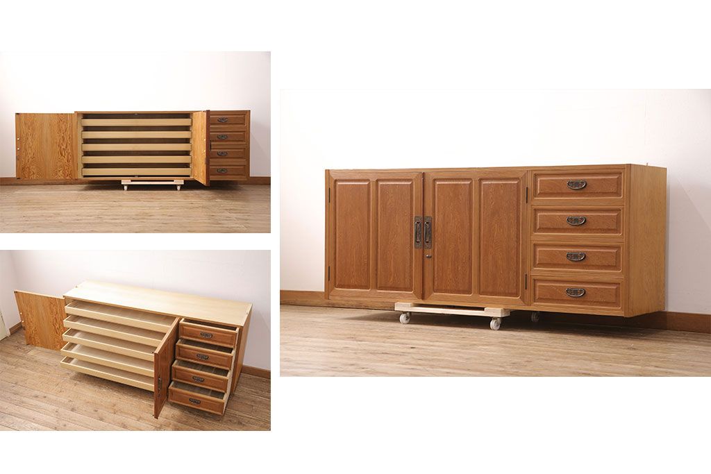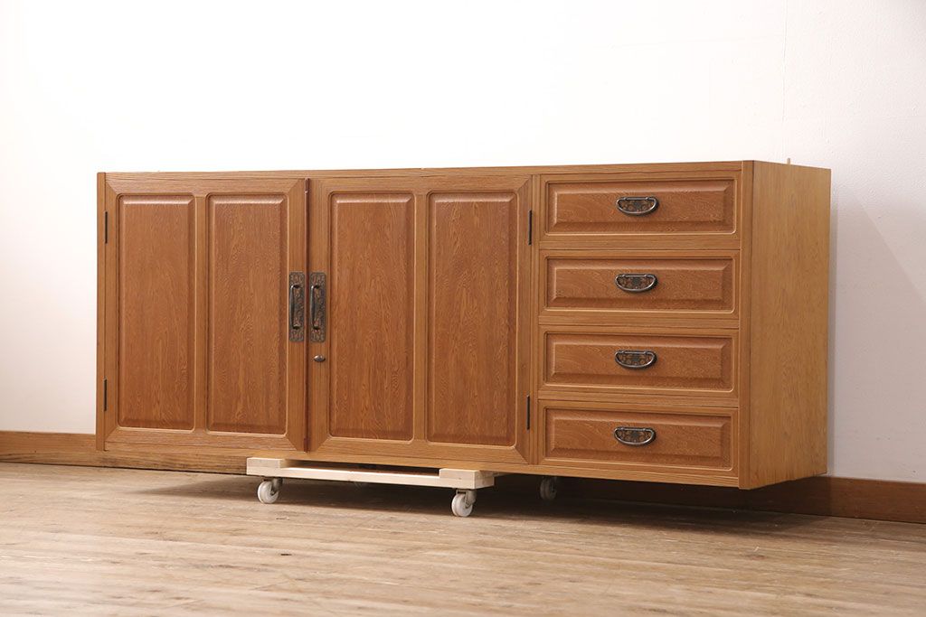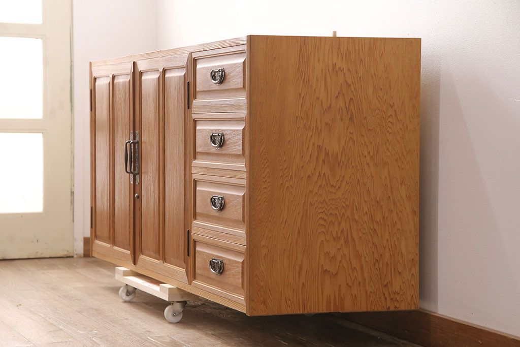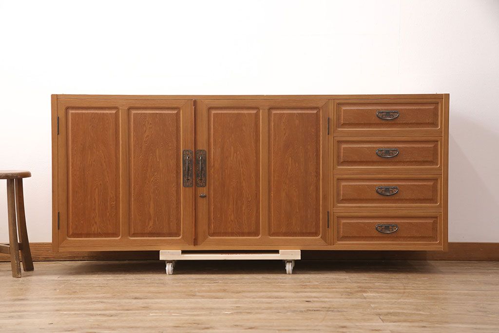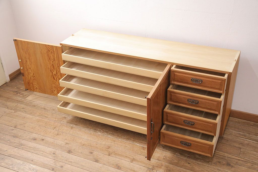 中古 国産高級家具 屋久杉・中桐材 上品な屋久杉の杢目が上質な空間づくりに活躍するローチェスト(サイドボード、テレビ台、引き出し)(R-051023)