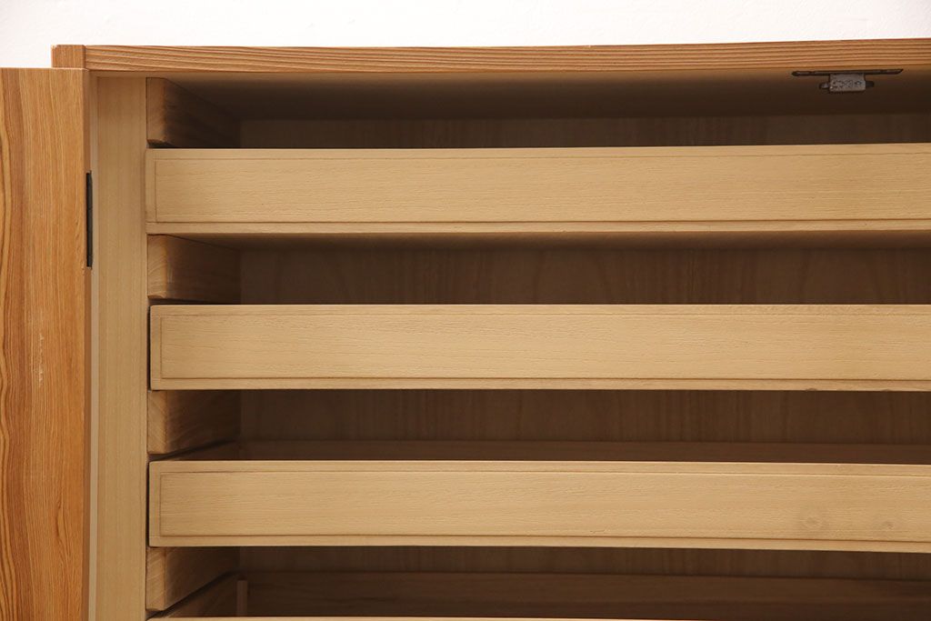 中古 国産高級家具 屋久杉・中桐材 上品な屋久杉の杢目が上質な空間づくりに活躍するローチェスト(サイドボード、テレビ台、引き出し)(R-051023)です。
