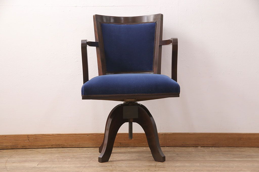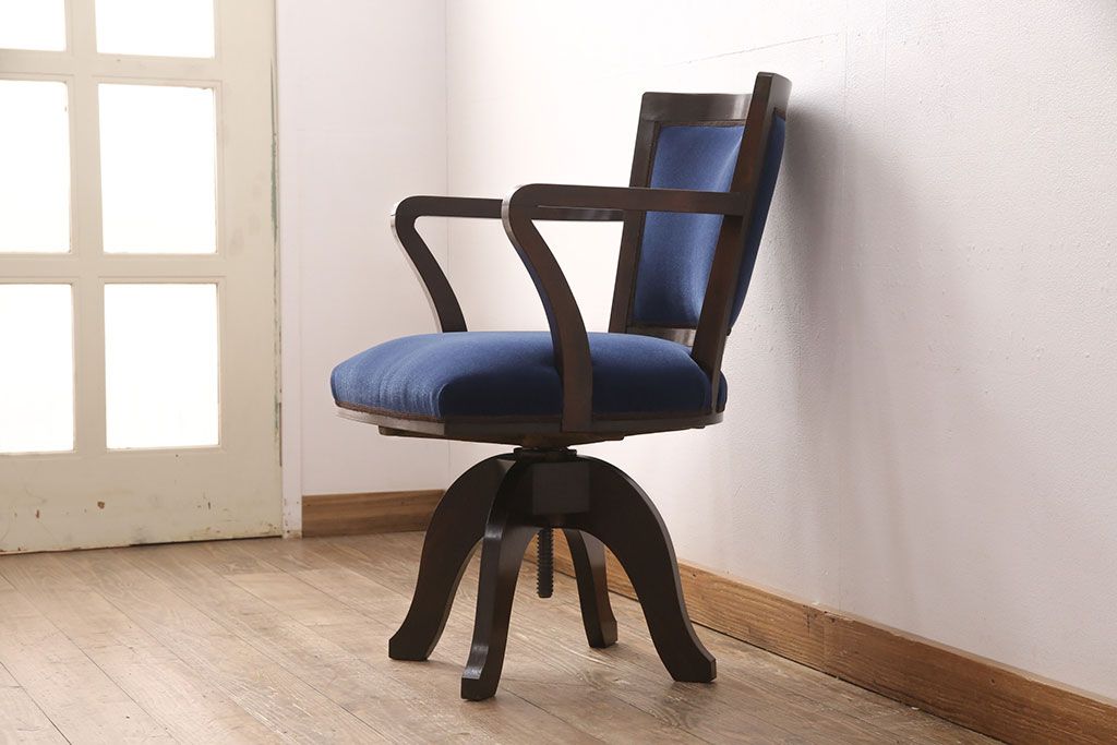 椅子・ベンチ> 回転椅子 > ドクターチェアをリペア&カスタム!座面・背もたれの生地を張り替え。フレーム部分は1トーン落ち着いた色味に着色し仕上げ。(アームチェア、椅子)