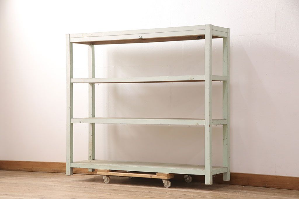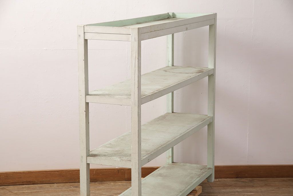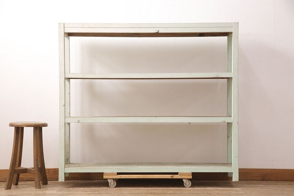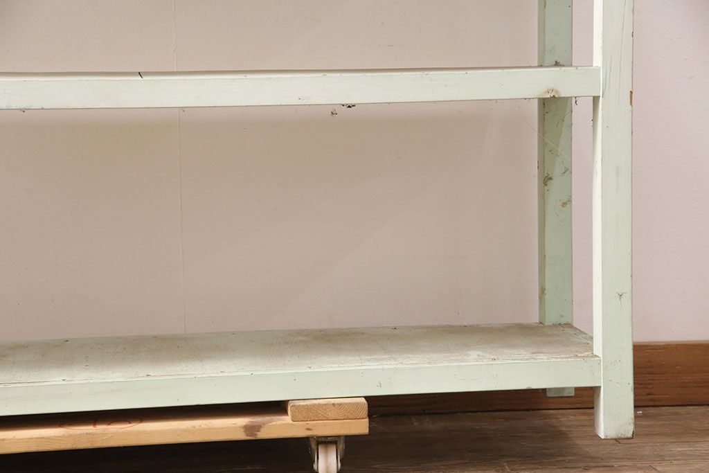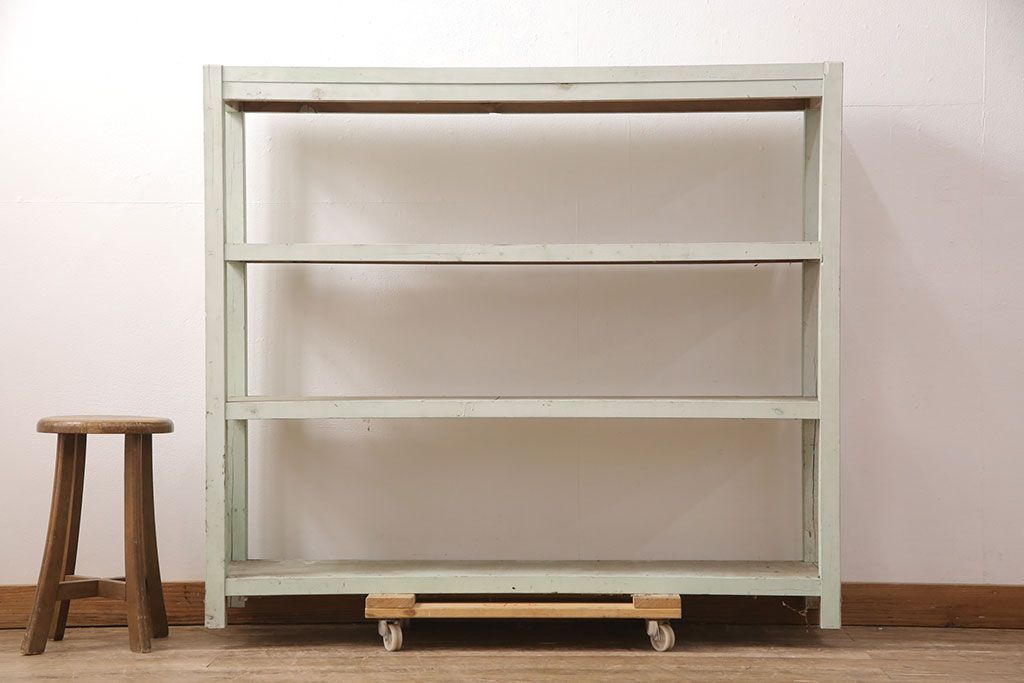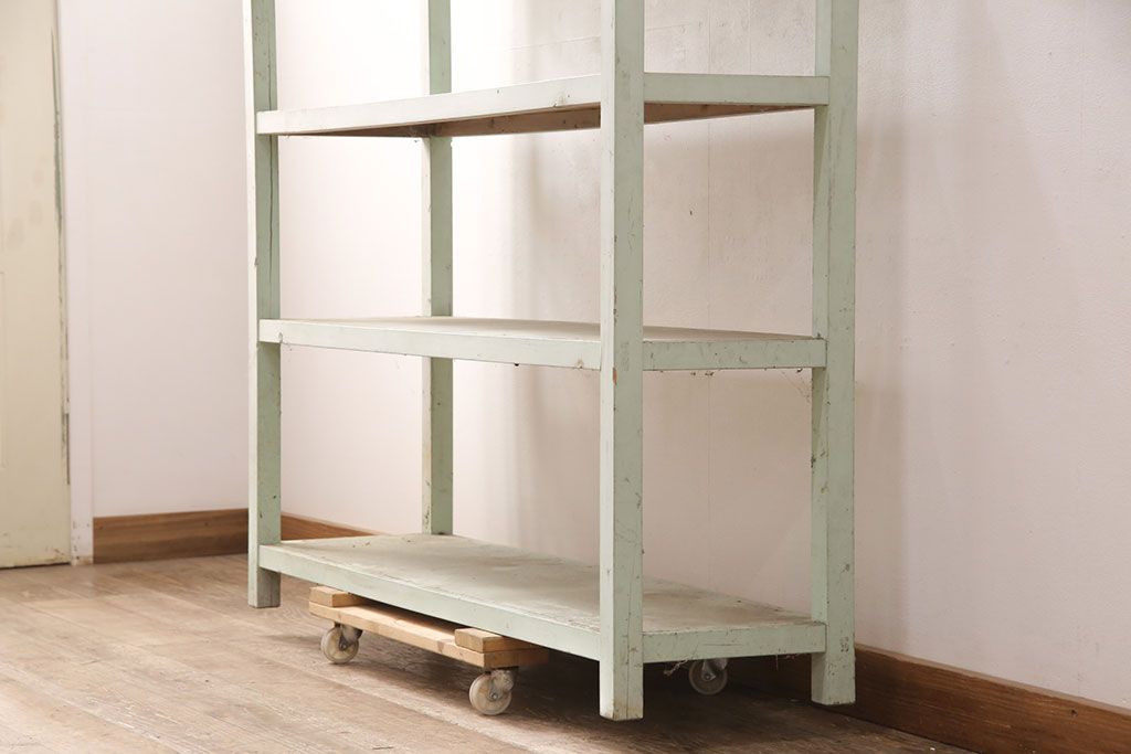 ラフジュ工房> 店舗什器 > アンティーク家具 昭和初期 爽やかなミントカラーが魅力のオープンラック(飾り棚、陳列棚、飾り台、店舗什器、本棚)(R-051010)