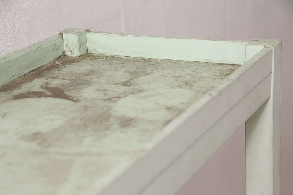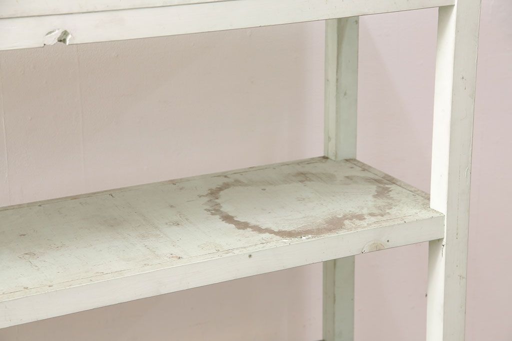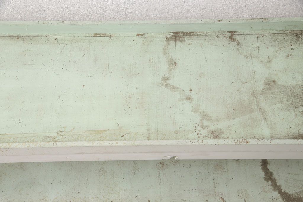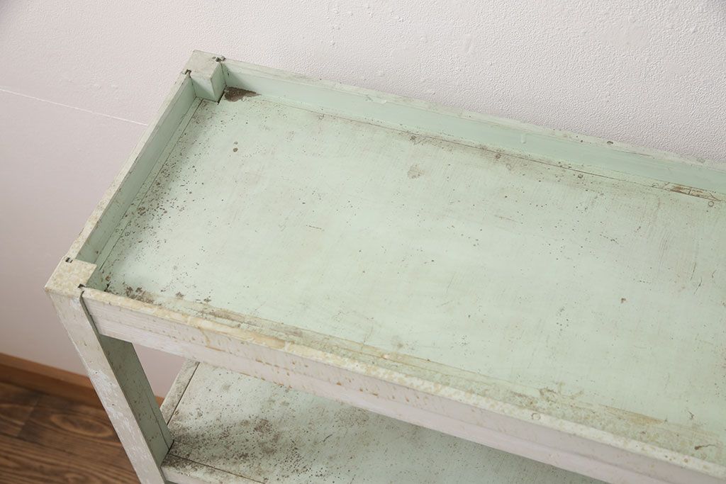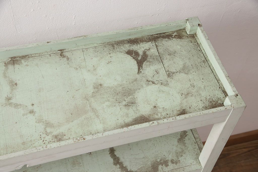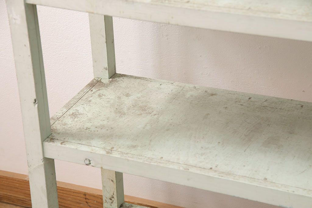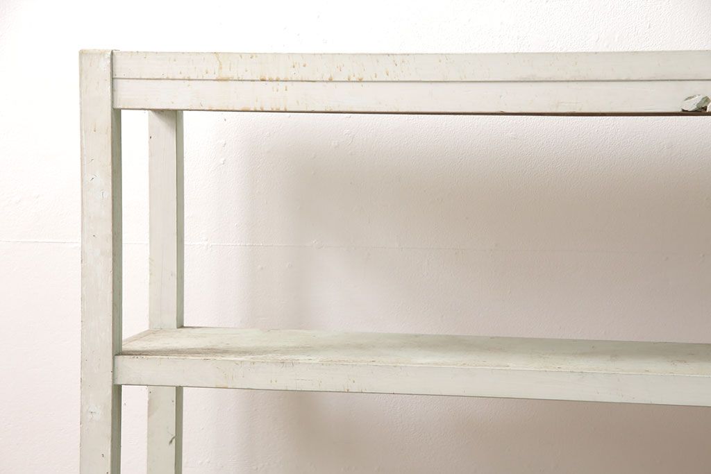 ラフジュ工房> 店舗什器 > アンティーク家具 昭和初期 爽やかなミントカラーが魅力のオープンラック(飾り棚、陳列棚、飾り台、店舗什器、本棚)(R-051010)