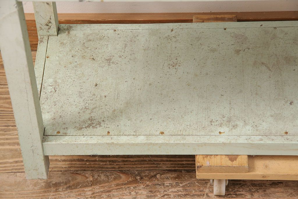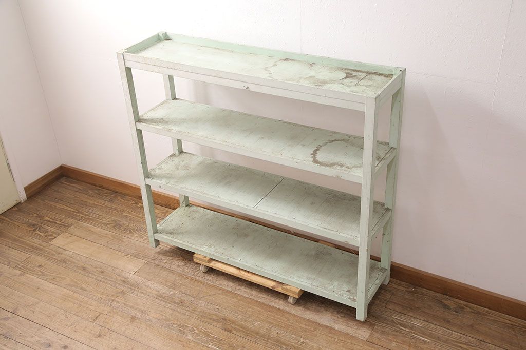 ラフジュ工房> オープンラック・シェルフ> ディスプレイラック > アンティーク家具 昭和初期 爽やかなミントカラーが魅力のオープンラック(飾り棚、陳列棚、飾り台、店舗什器、本棚)(R-051010)