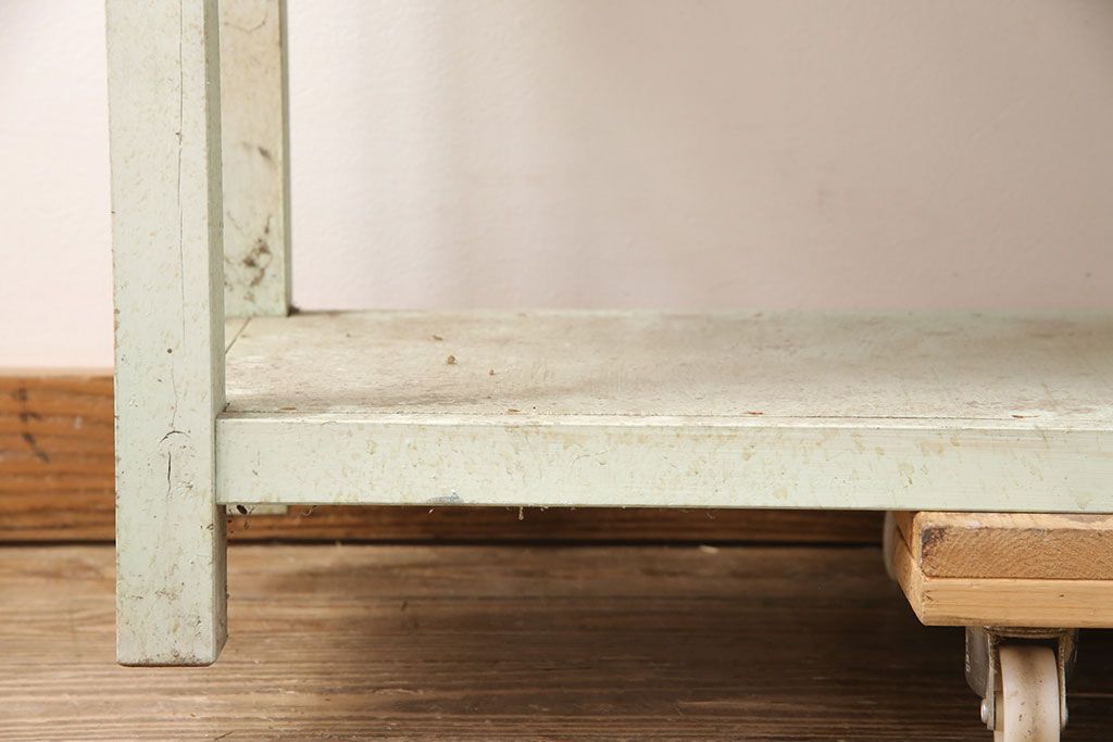 ラフジュ工房> オープンラック・シェルフ > アンティーク家具 昭和初期 爽やかなミントカラーが魅力のオープンラック(飾り棚、陳列棚、飾り台、店舗什器、本棚)(R-051010)