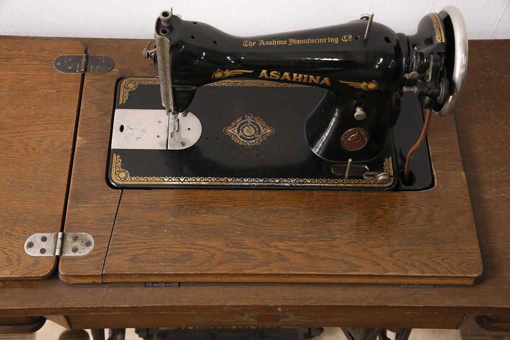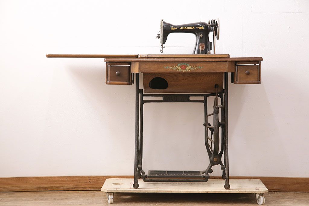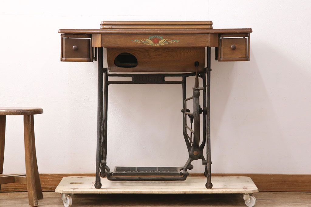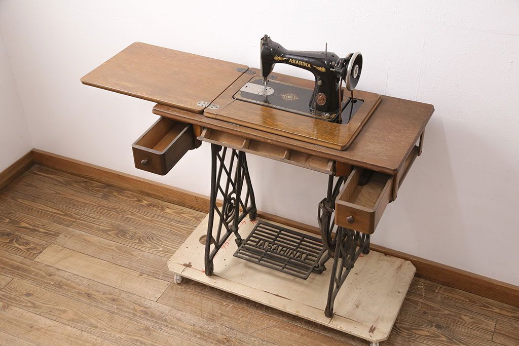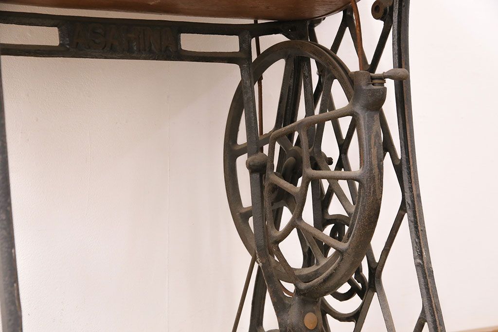 ジャンク品 ASAHINA社 お洒落なアンティーク空間を演出するミシンテーブル(ミシン台、ディスプレイ、工業用ミシン)(R-050724)です。
