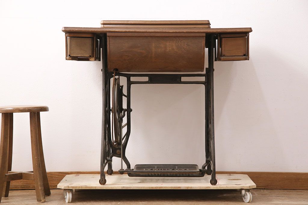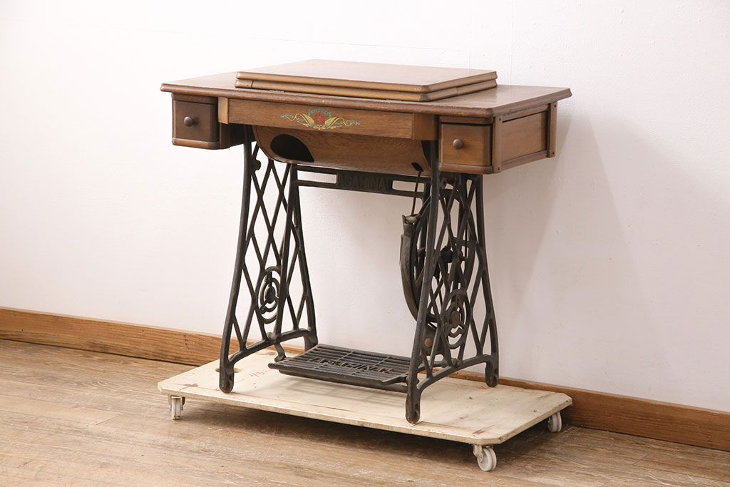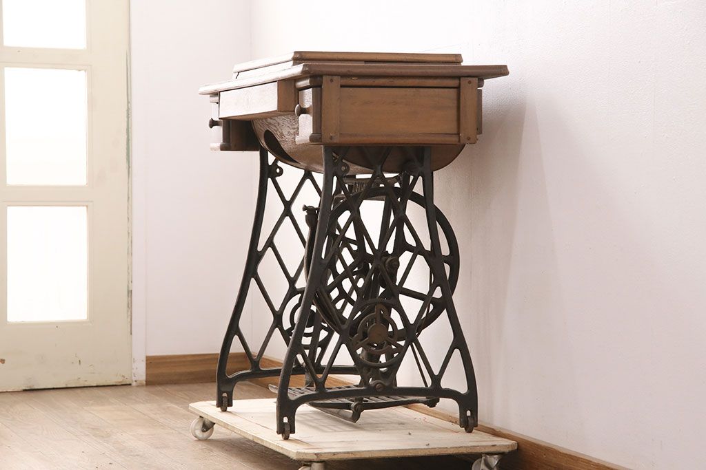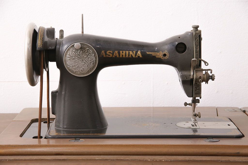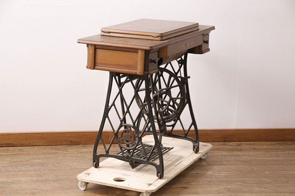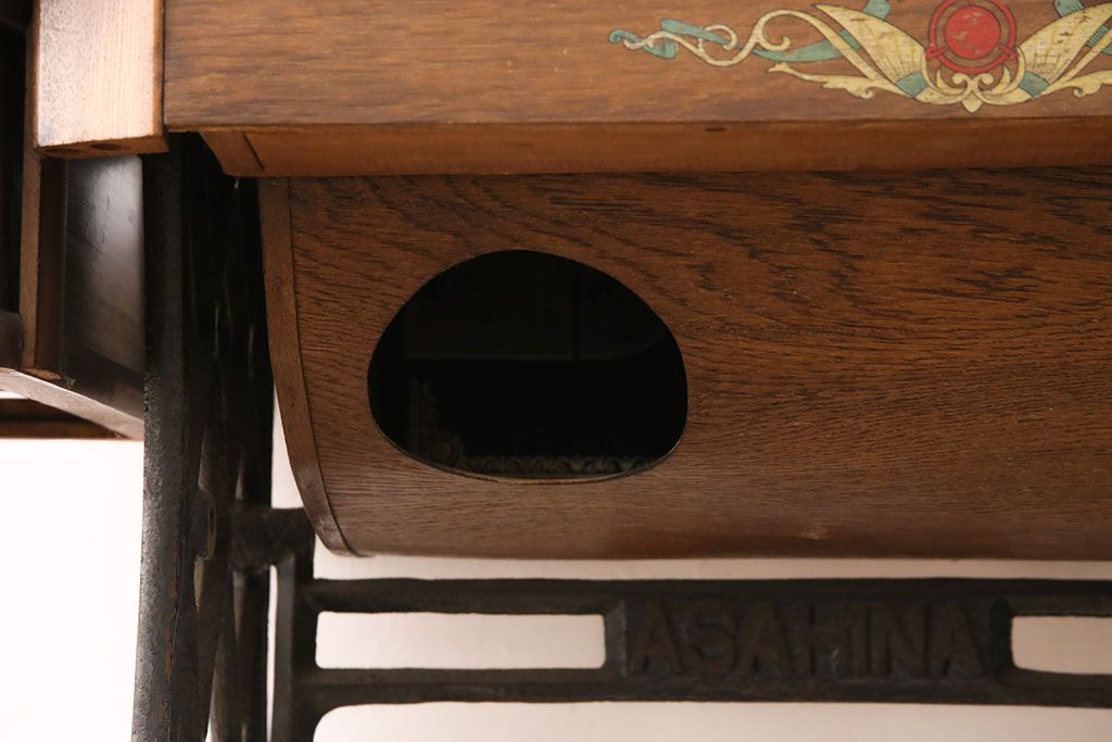 ジャンク品 ASAHINA社 お洒落なアンティーク空間を演出するミシンテーブル(ミシン台、ディスプレイ、工業用ミシン)(R-050724)です。