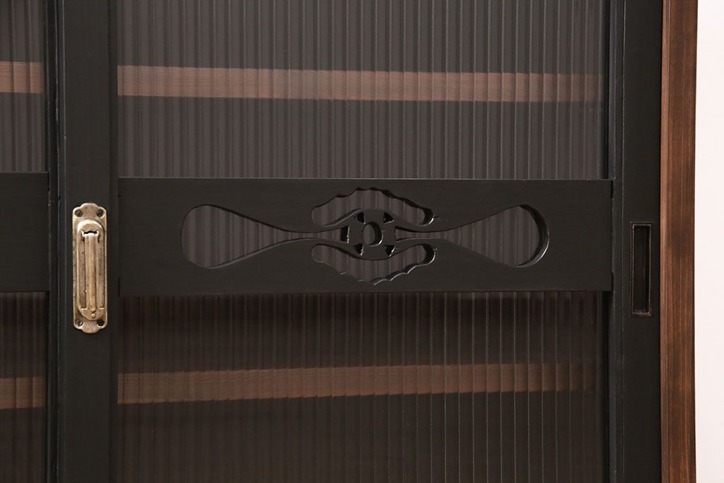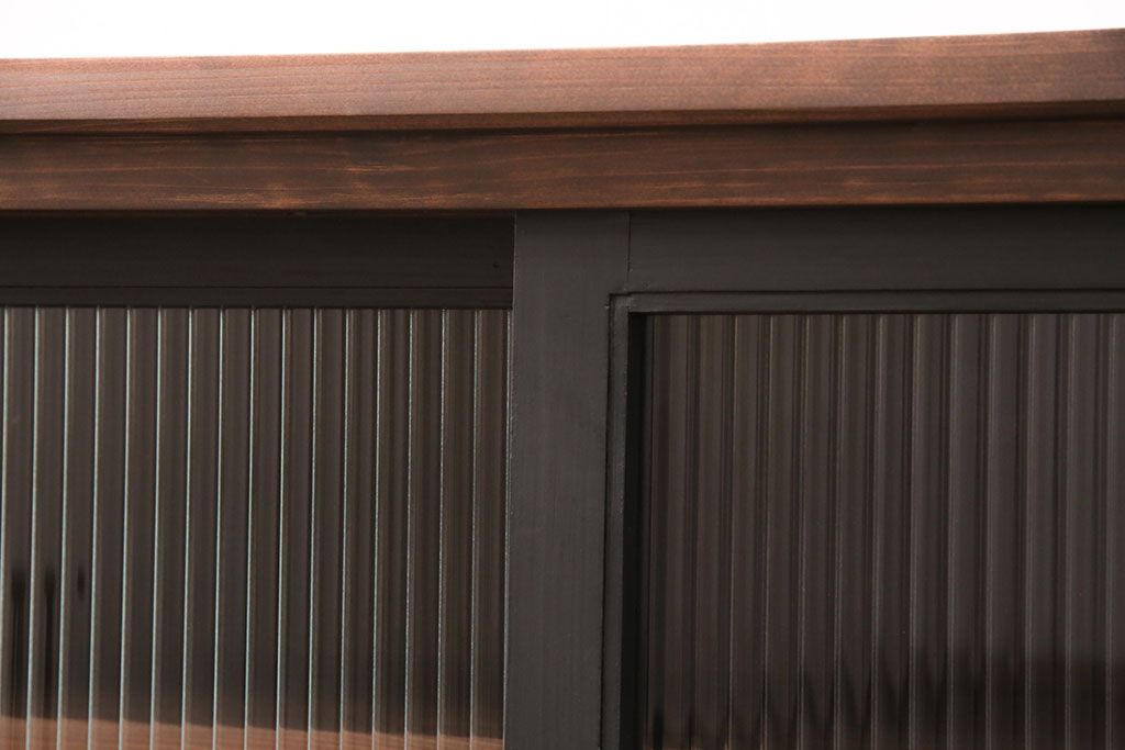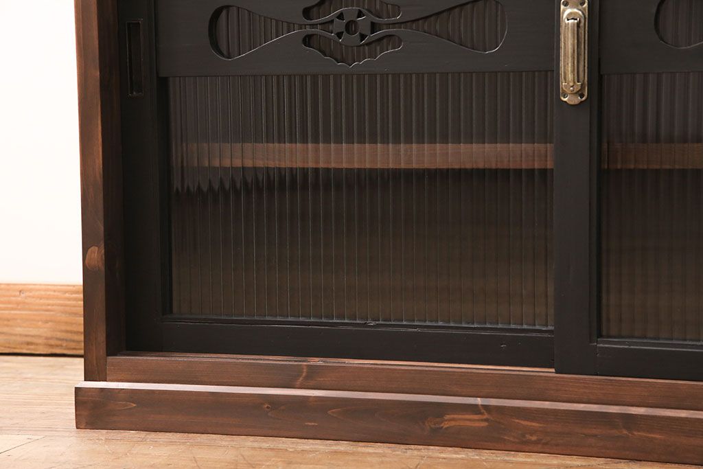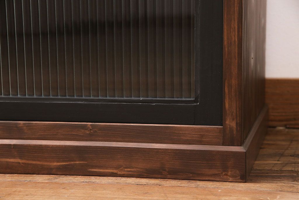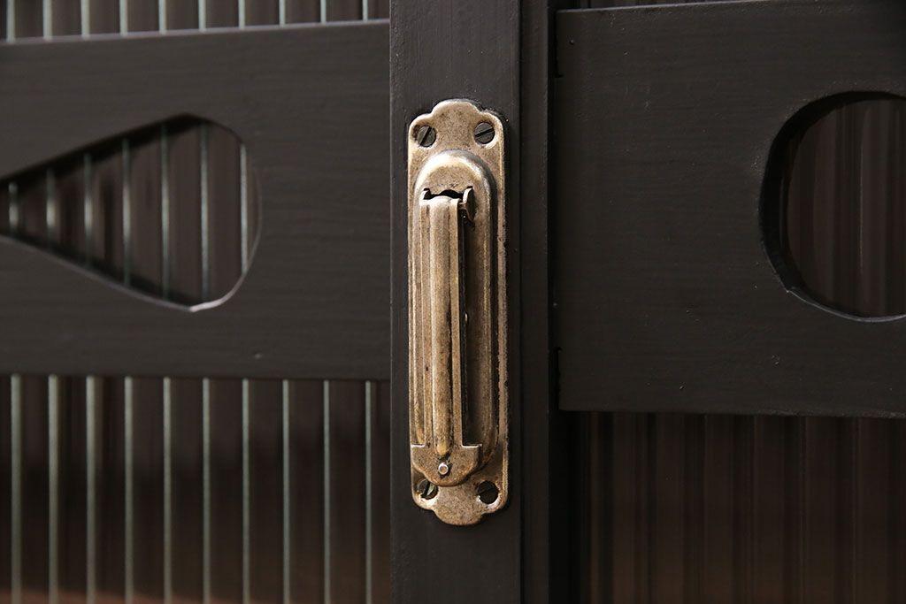 ラフジュ工房オリジナル 和製アンティーク 古建具リメイク 黒のペイントカラーがきりっとしたかっこ良さを演出する収納棚(戸棚、キャビネット)(R-051077)