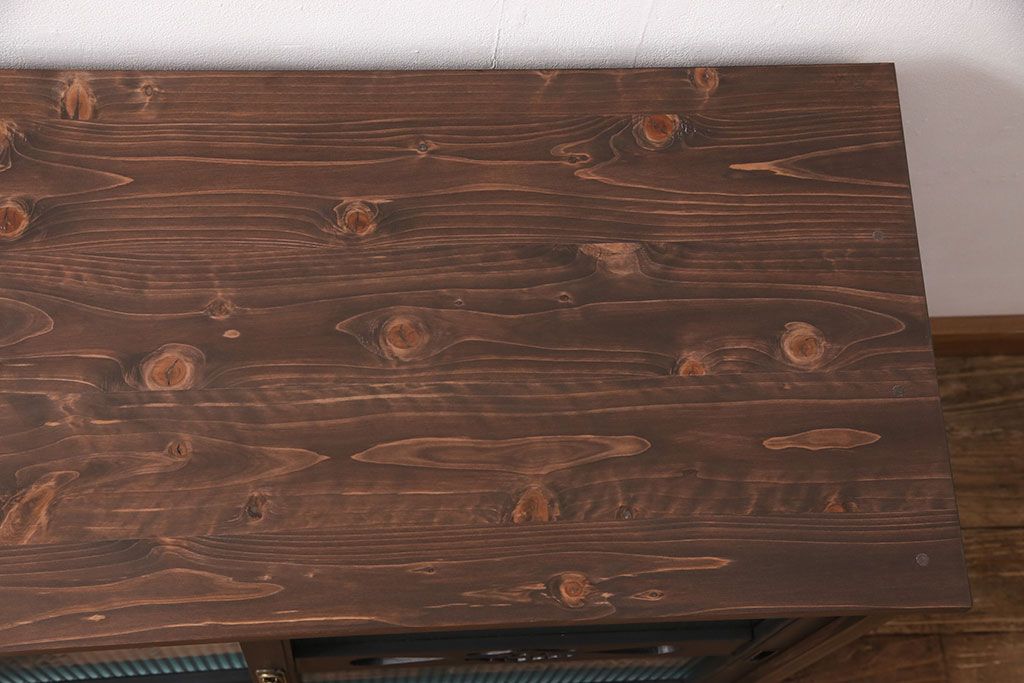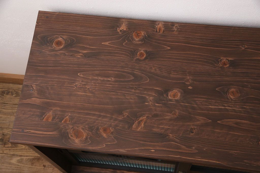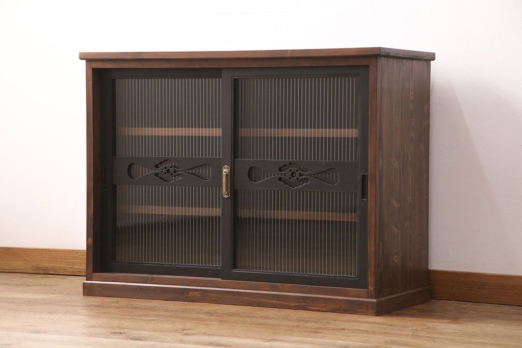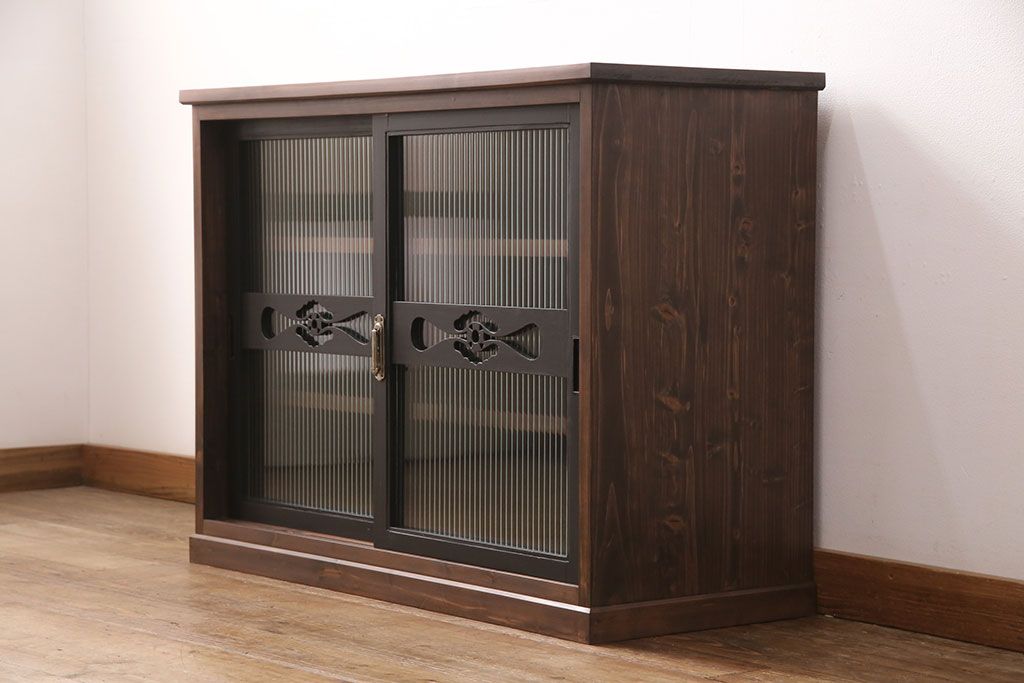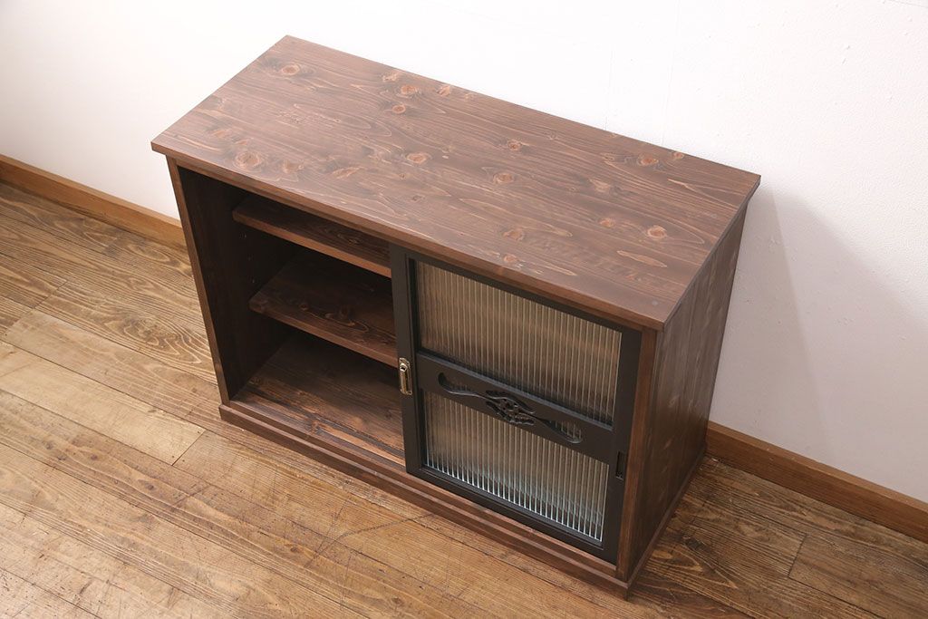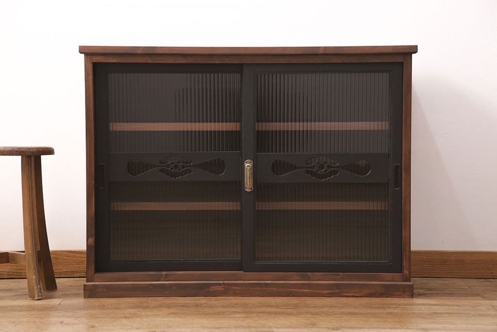 ラフジュ工房オリジナル 和製アンティーク 古建具リメイク 黒のペイントカラーがきりっとしたかっこ良さを演出する収納棚(戸棚、キャビネット)(R-051077)