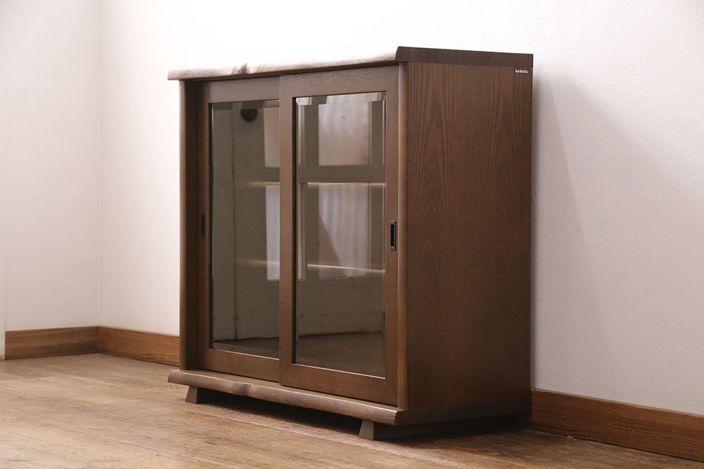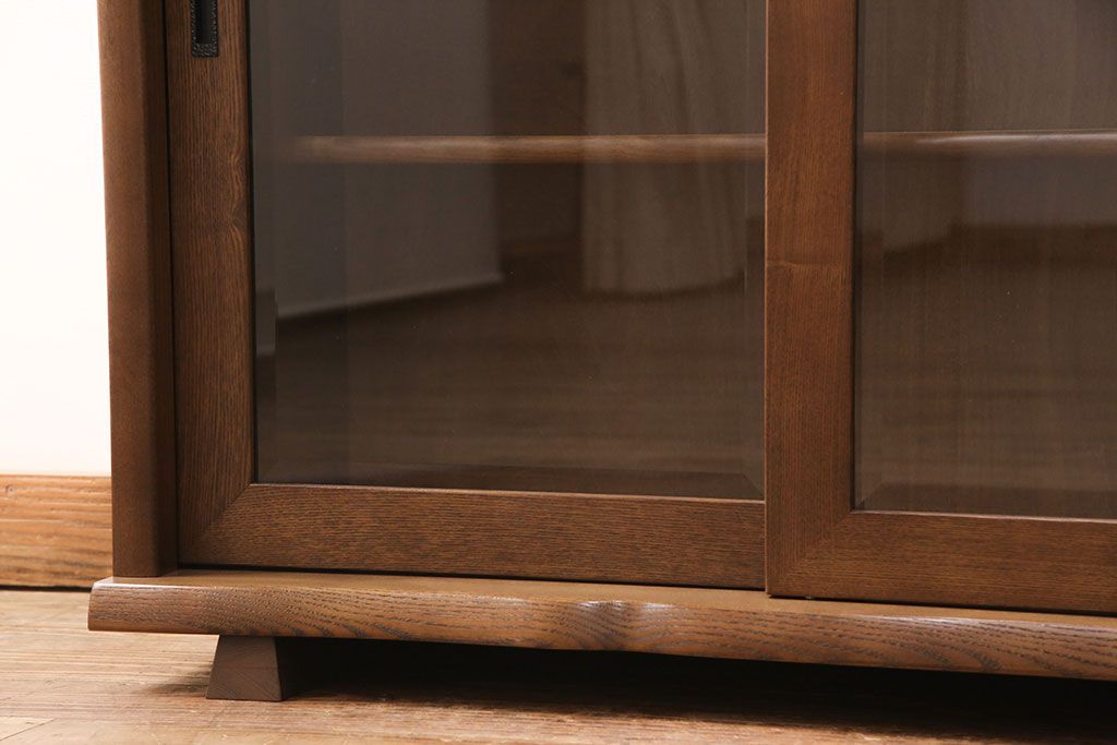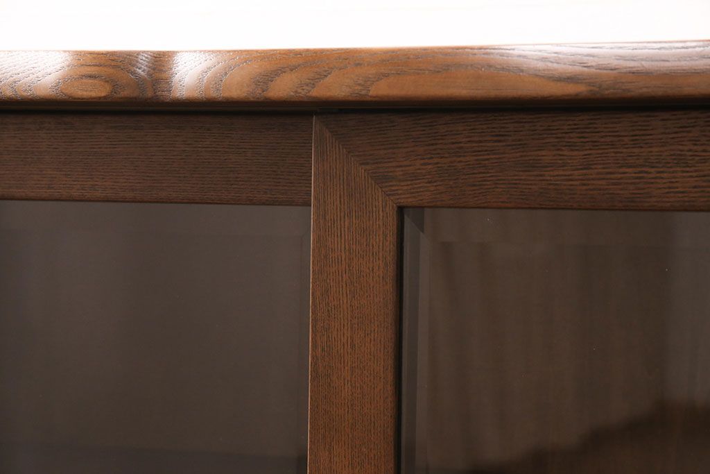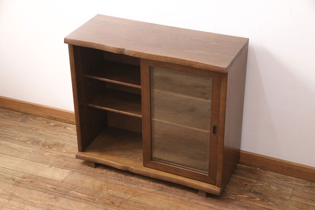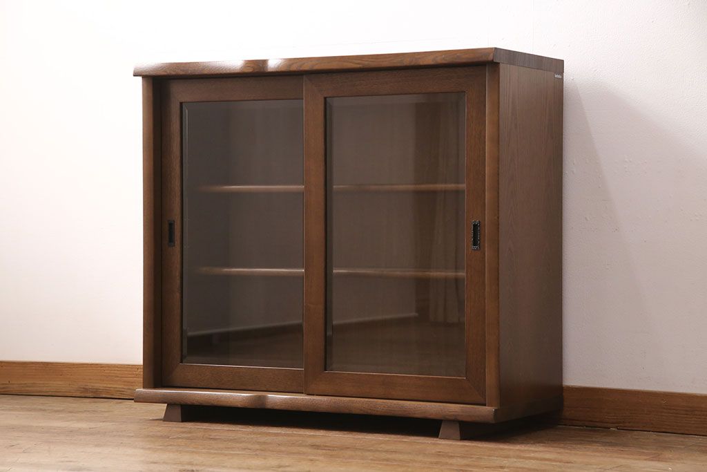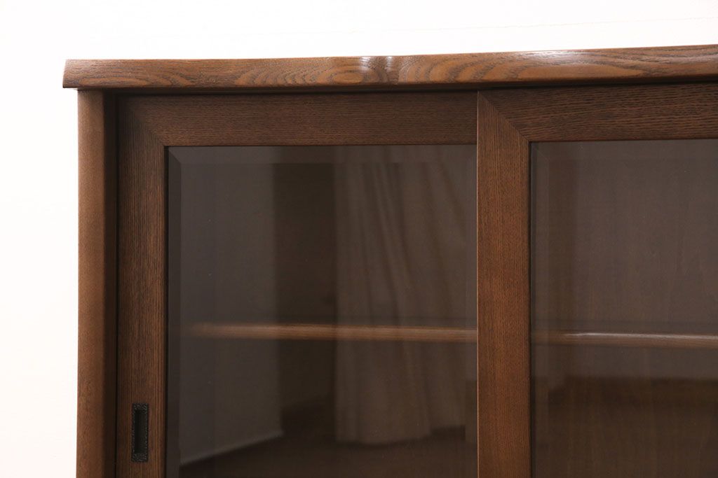 中古 美品 カリモク家具(karimoku) 分厚い天板が存在感を放つ和風の戸棚(収納棚、キャビネット、サイドボード)(R-051078)