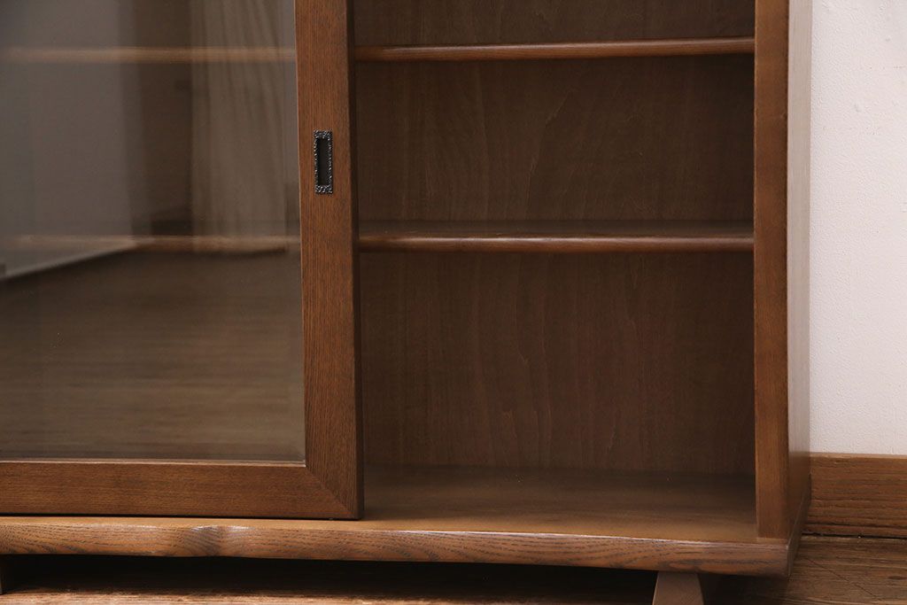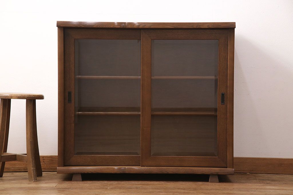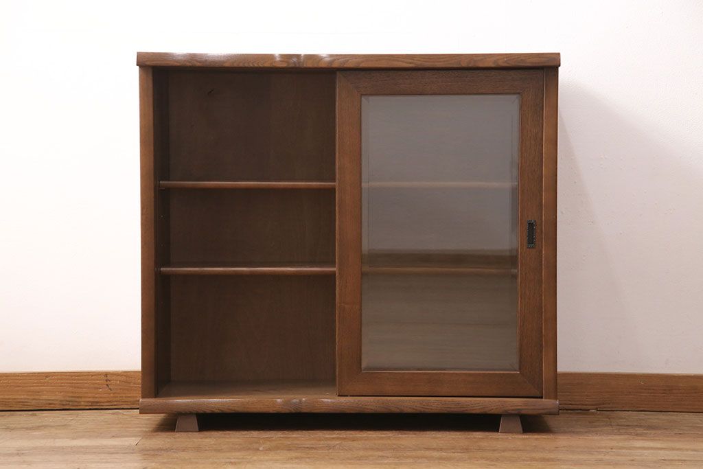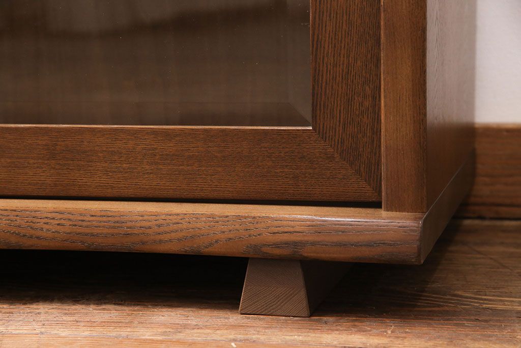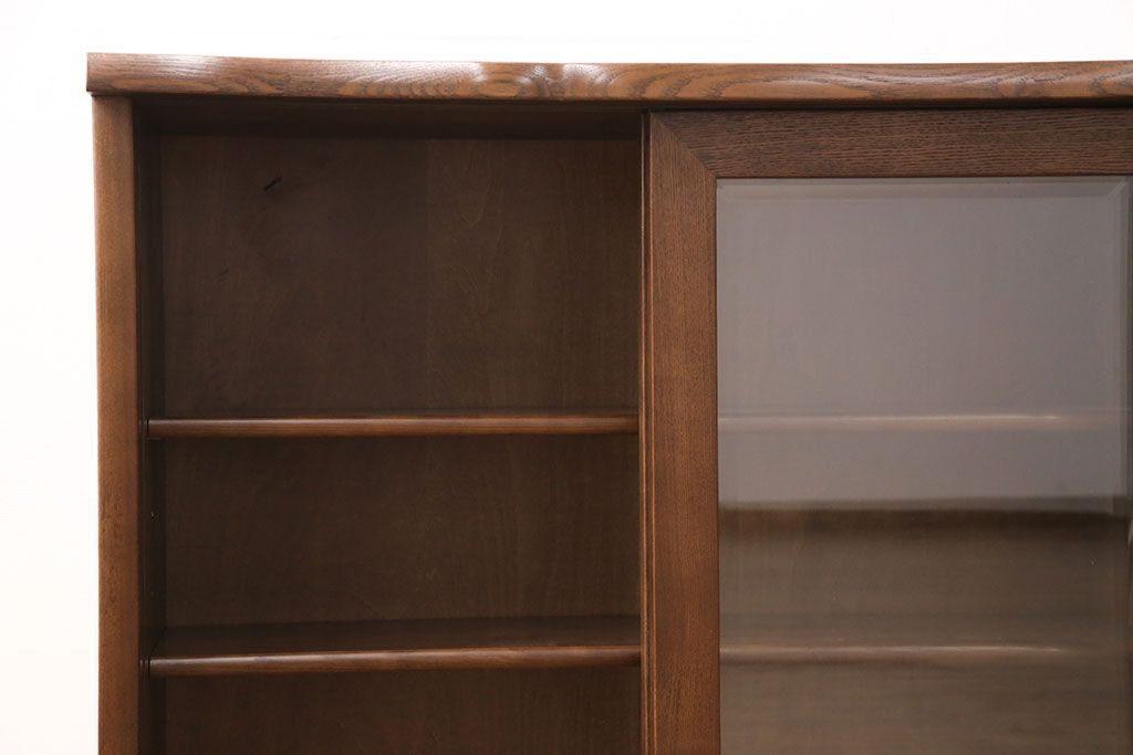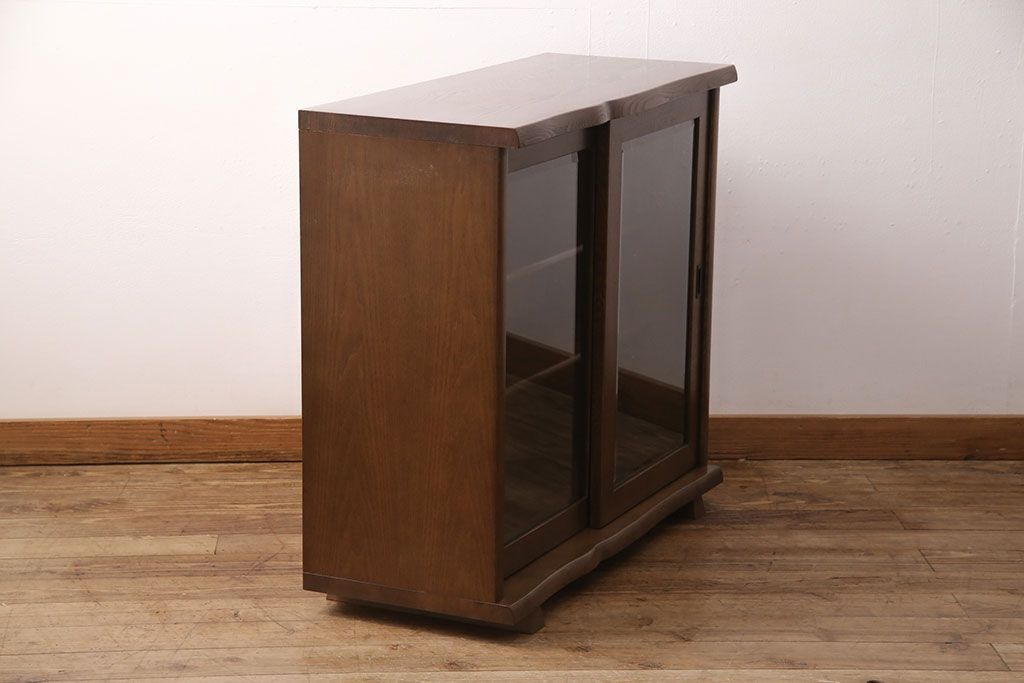 中古 美品 カリモク家具(karimoku) 分厚い天板が存在感を放つ和風の戸棚(収納棚、キャビネット、サイドボード)(R-051078)