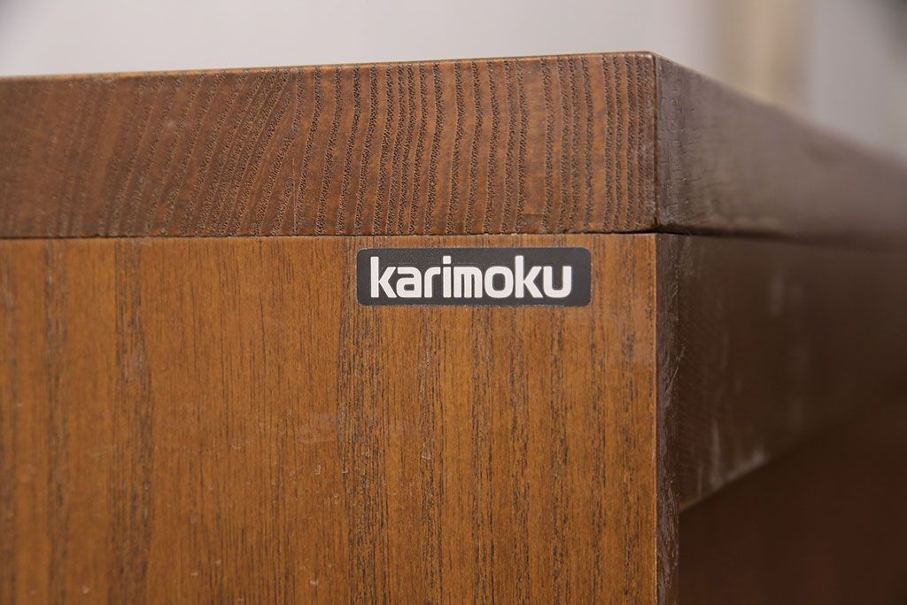 中古 美品 カリモク家具(karimoku) 分厚い天板が存在感を放つ和風の戸棚(収納棚、キャビネット、サイドボード)(R-051078)です。