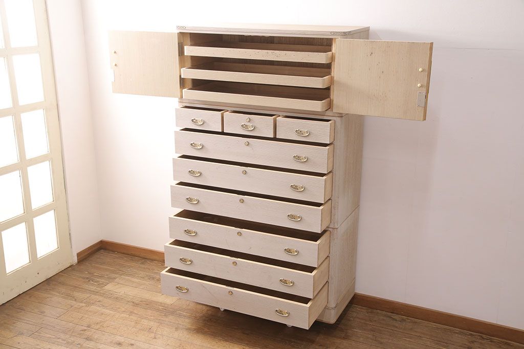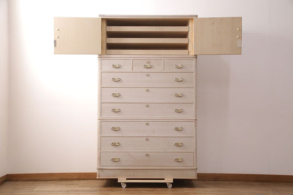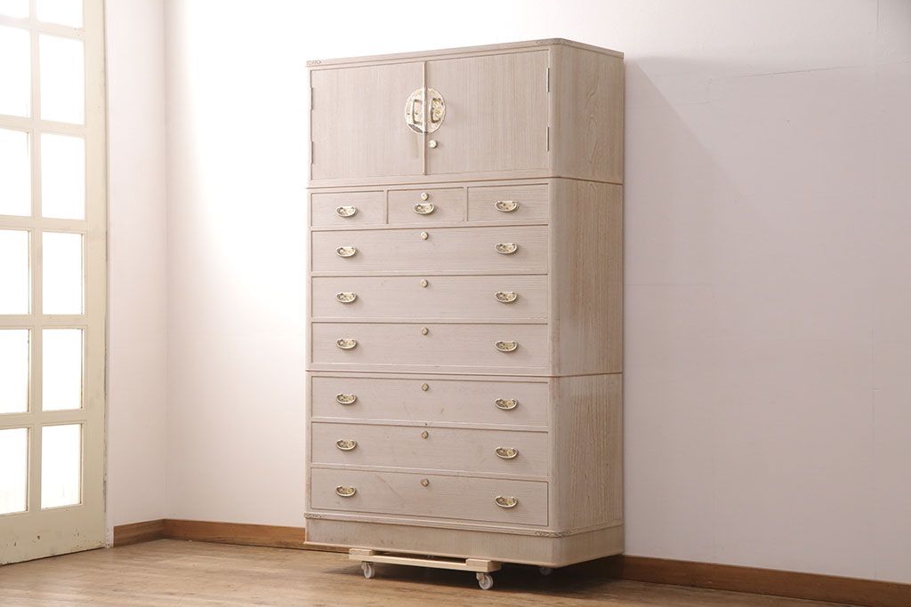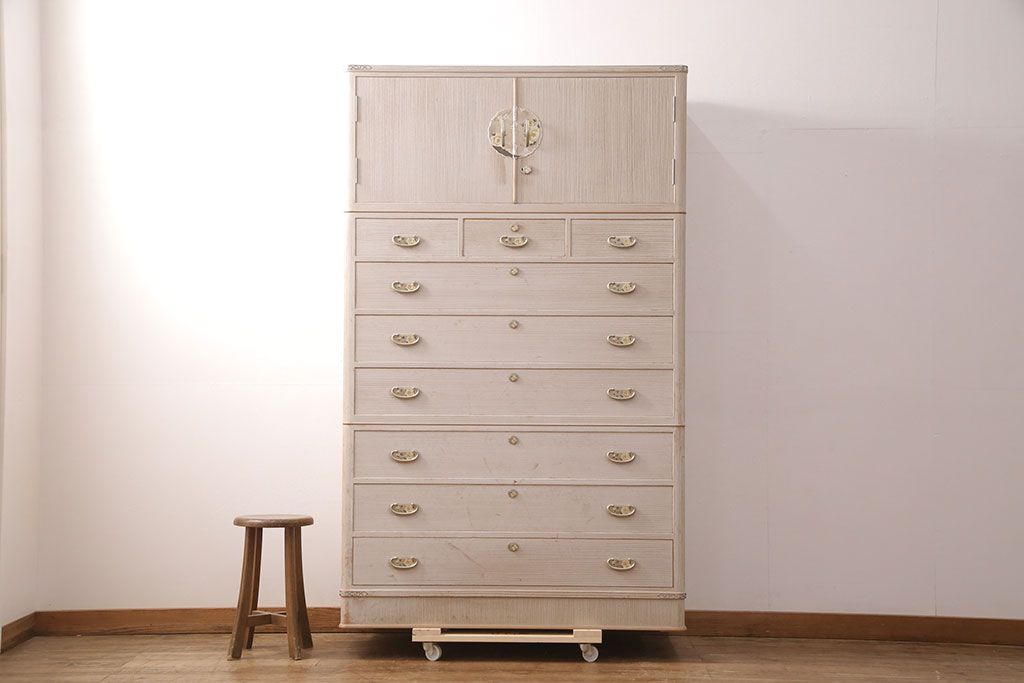 中古 在銘 総桐 かくし付き 上品な佇まいの加茂総桐箪笥(胴丸)(総桐たんす、和タンス、衣装箪笥、着物箪笥)(定価約140万円)(R-051088)
