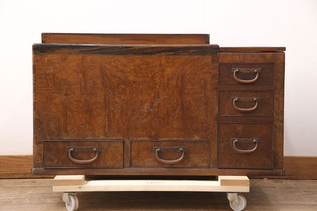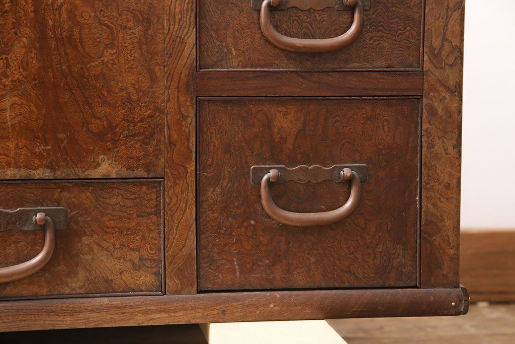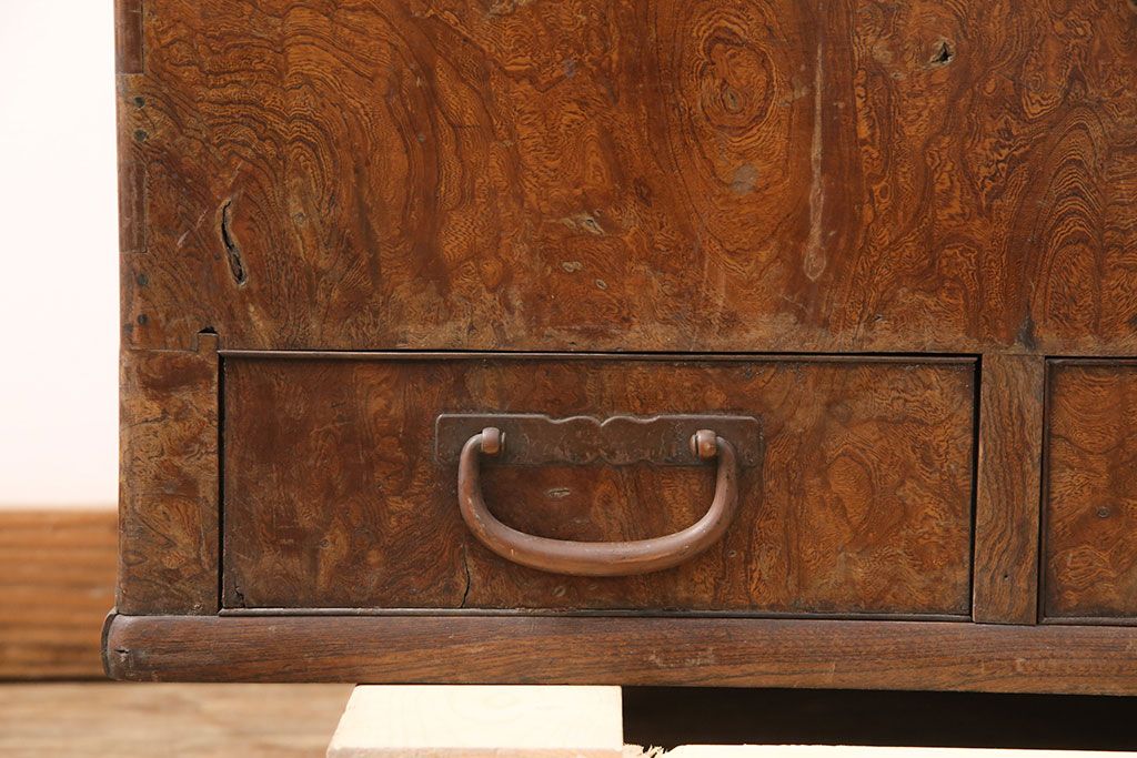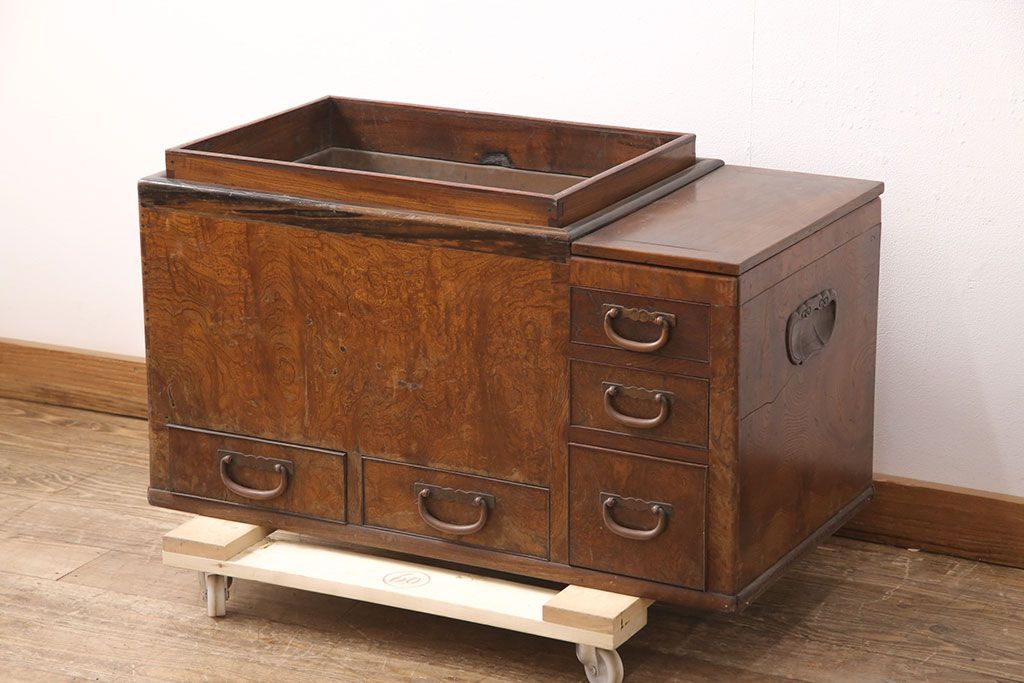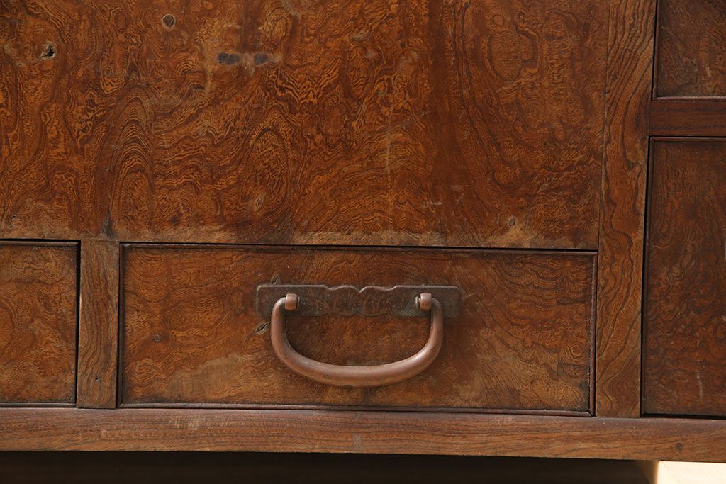 和製アンティーク 希少な玉杢模様が美しい味わいのある長火鉢(木製火鉢、囲炉裏)(R-051042)
