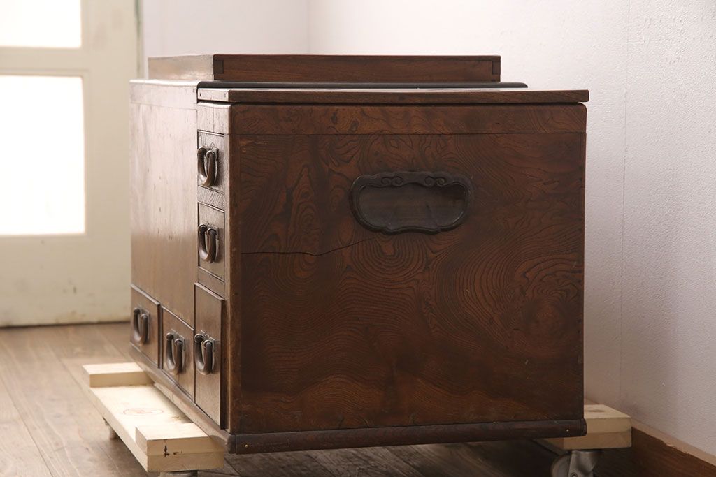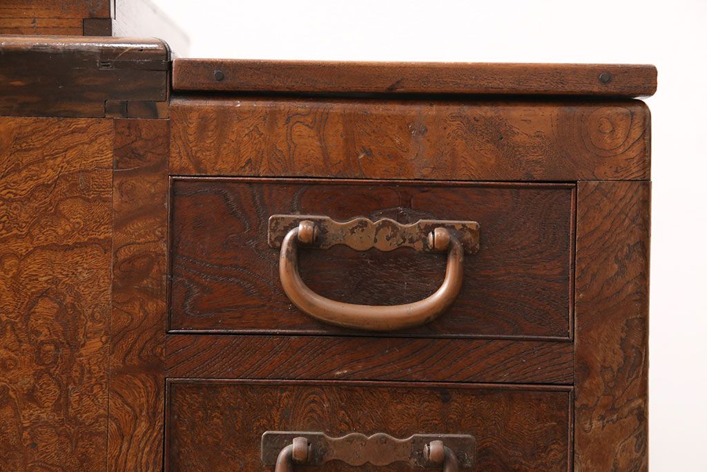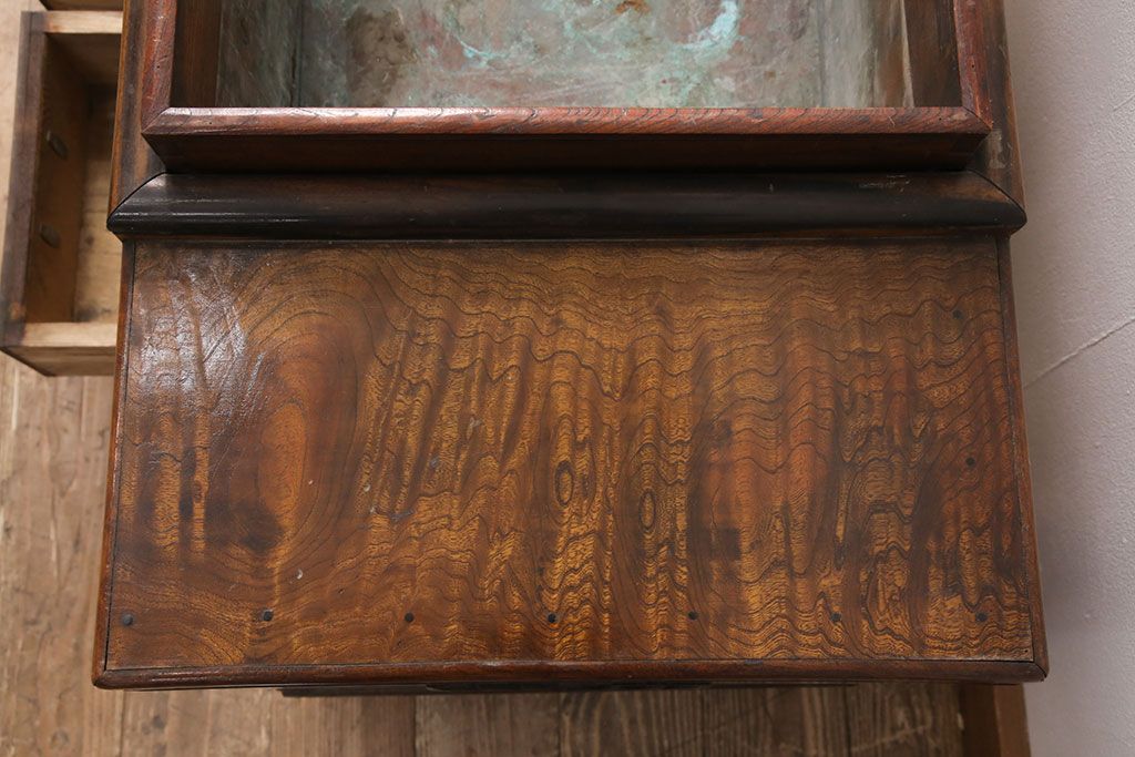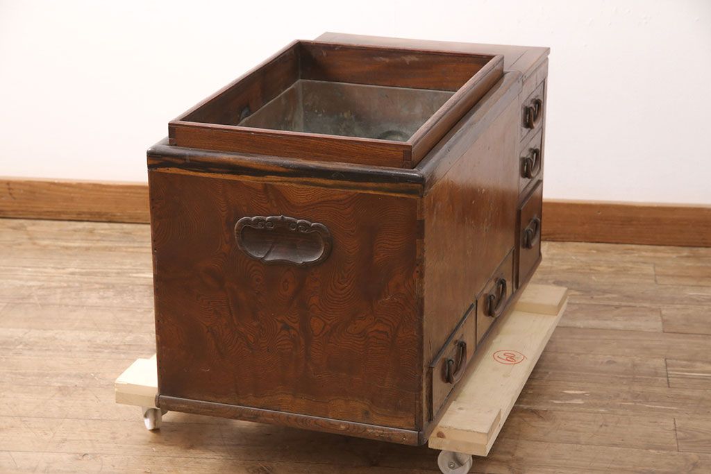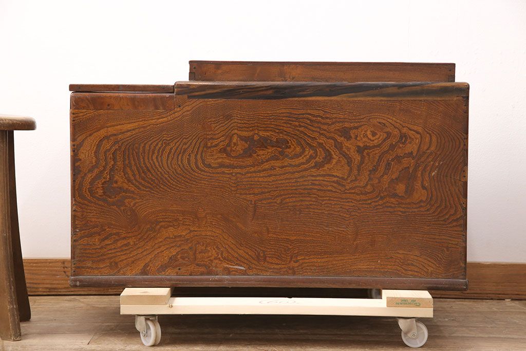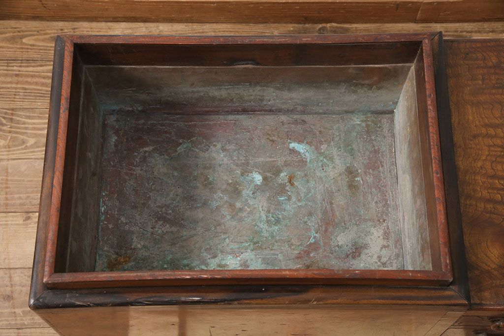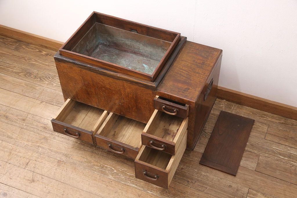 ラフジュ工房> 火鉢> 木製火鉢 > 和製アンティーク 希少な玉杢模様が美しい味わいのある長火鉢(木製火鉢、囲炉裏)(R-051042)