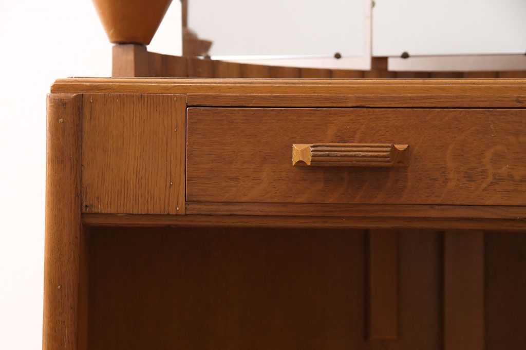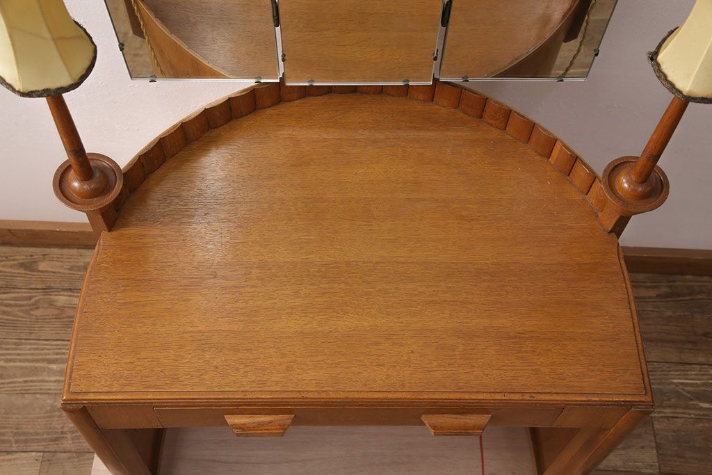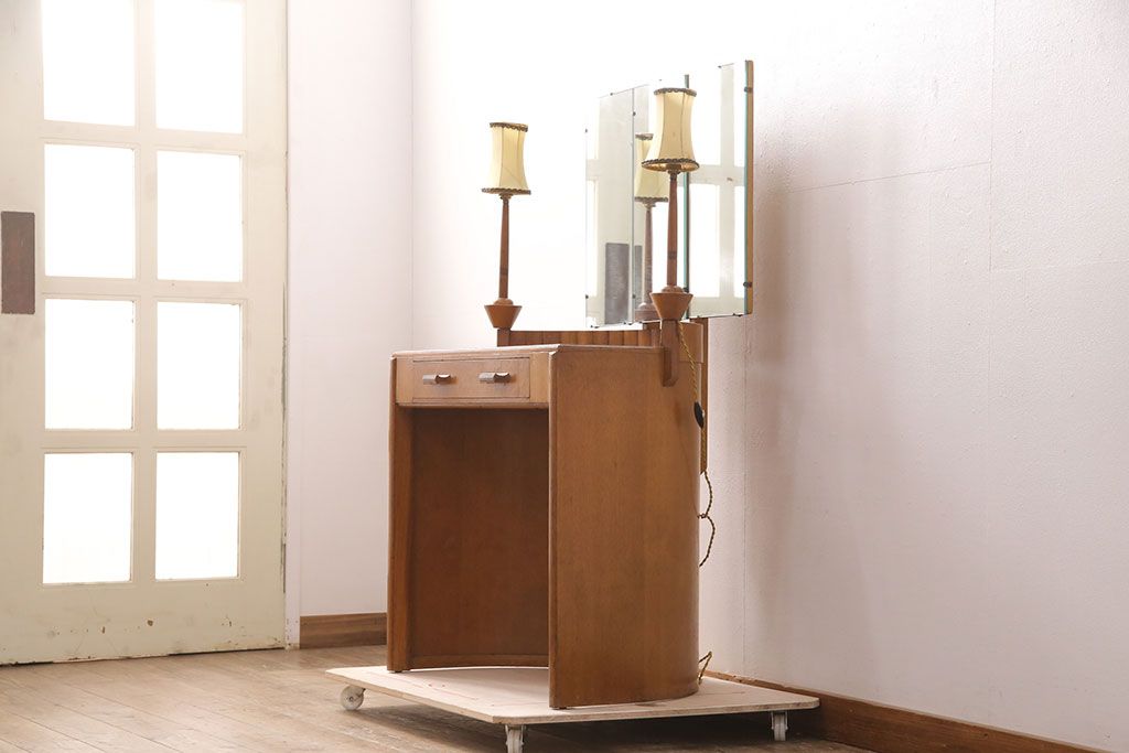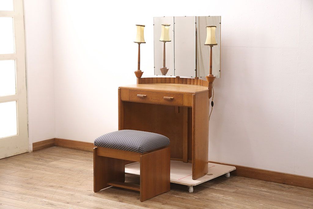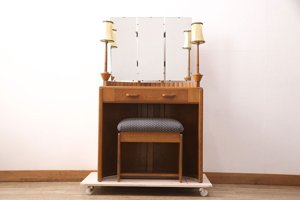 椅子・ベンチ> スツール > イギリスヴィンテージ E.GOMME社 オーク材 希少品!レトロな照明付きのビンテージドレッサー&スツールセット(化粧台、三面鏡、鏡台、イス、椅子)(R-051033)